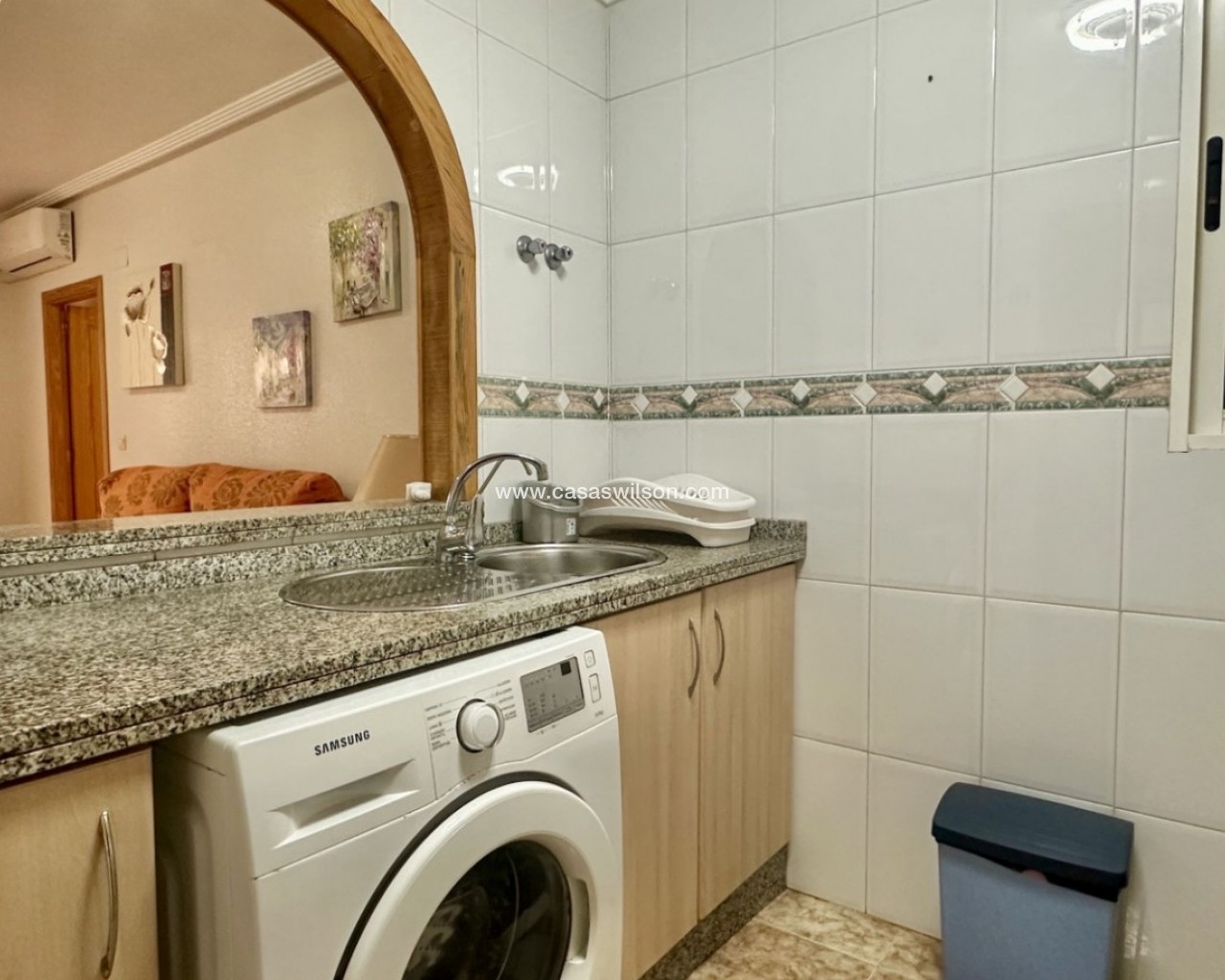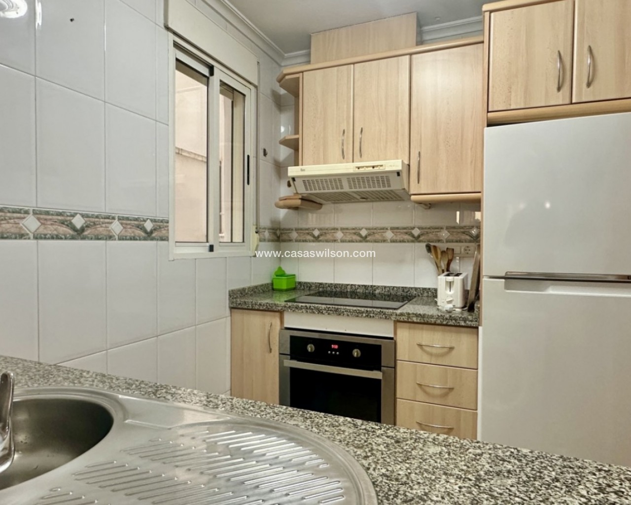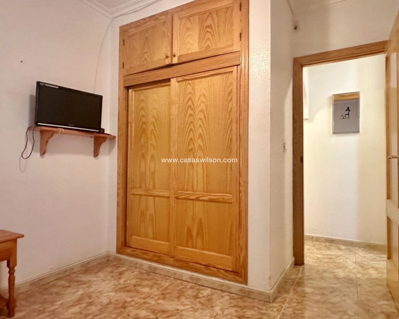 Welcome to this charming and well-maintained apartment located in the heart of Torrevieja, just a short 2-minute walk from the beautiful Mediterranean coast. A perfect opportunity for those looking to enjoy beachside living, use as a holiday home, or invest in a rental property. Inside, the apartment features a bright and comfortable living room, complete with direct access to a spacious covered terrace — ideal for relaxing, dining, or enjoying the sea breeze. The semi-open kitchen connects through a Mediterranean-style arch, adding character and functionality. The property includes 2 bedrooms and 1 bathroom, all on one level. Both bedrooms are spacious and offer built-in storage options, with one of them leading directly to the terrace. The home is offered fully furnished and ready to move in. Key Features: 2 bedrooms1 bathroomComfortable living room with natural lightSemi-open kitchenSpacious terrace with storageFully furnished2 minutes’ walk to the beachClose to supermarkets, cafés, restaurants, and promenadeGreat rental investment potential