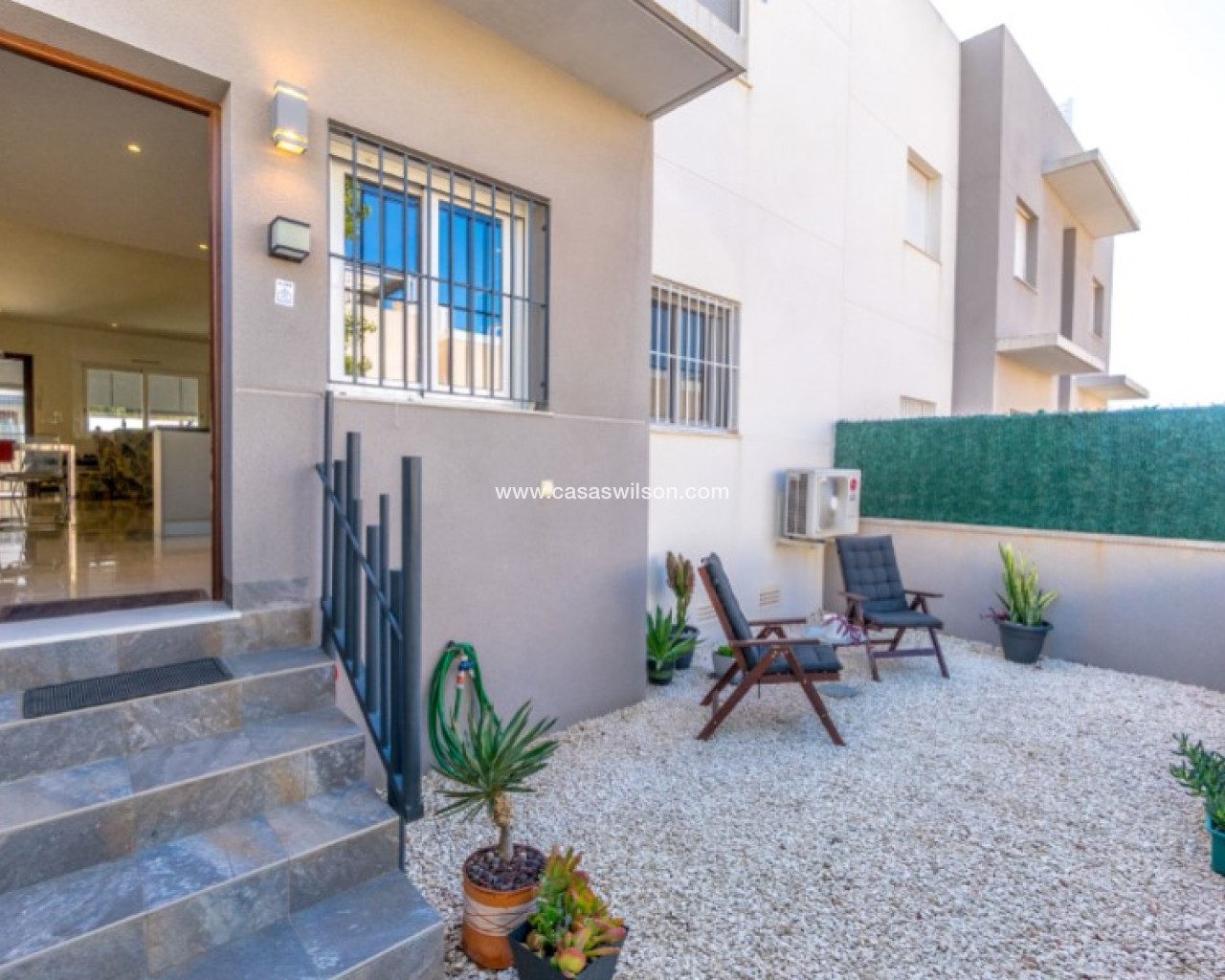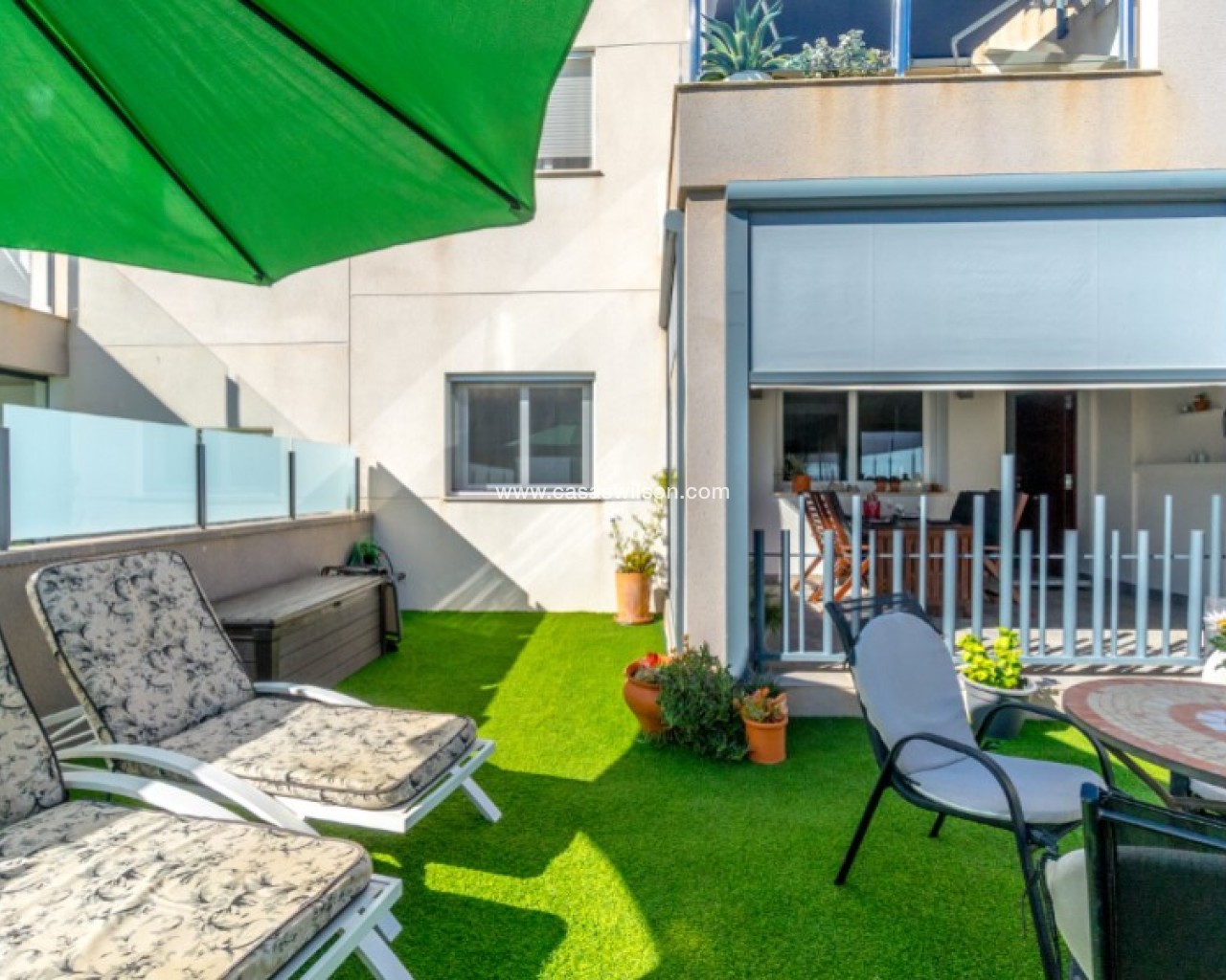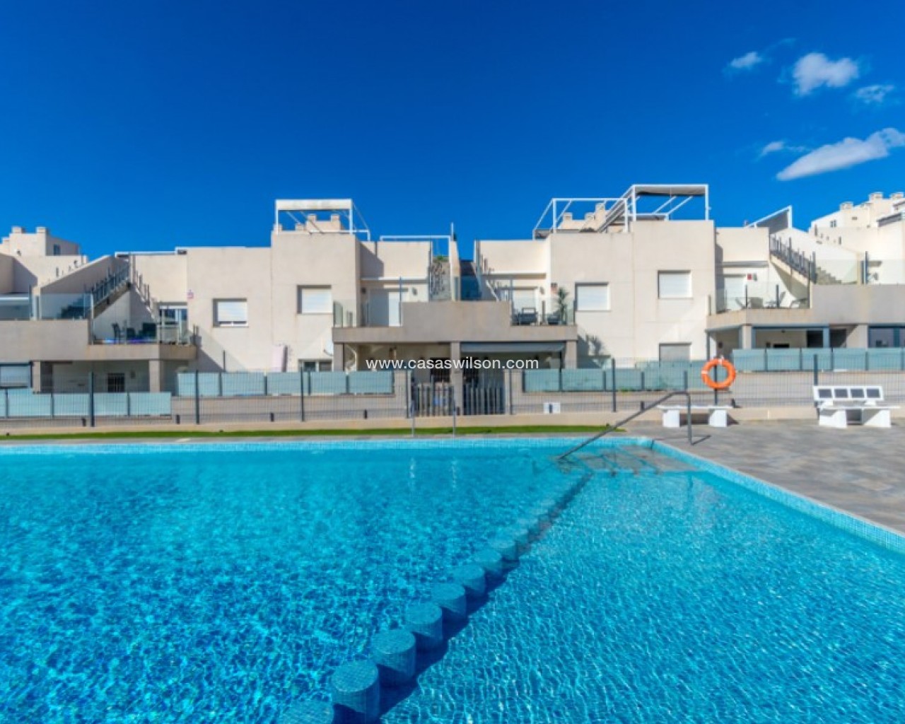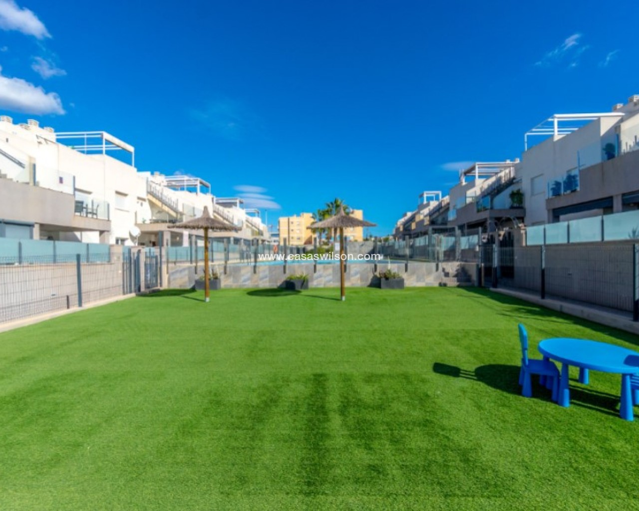 Welcome to this beautiful and very well-maintained flat in a perfect location in the popular area of Solpark 2 in Aguas Nuevas (Sector 25). The home offers two bedrooms, two bathrooms and a well-thought-out floor plan with beautiful patios on both sides, so you can enjoy the sun all day.The west-facing terrace at the entrance area offers afternoon and evening sun - ideal for relaxing moments after a day in the sun. The east/south facing garden offers morning sun until late in the afternoon and has a partially covered terrace with pull-down awnings for extra comfort. From here you have direct access to the beautiful common area with large pool and jacuzzi, the shower with hot water is a perfect place for relaxing.Inside you will find a home that appears almost new, with a high standard and several modern comforts:Heating cables in the kitchen, living room and both bathroomsAir conditioning in ducts (duct system)Limescale remover installed on the water inletMaintained air conditioning and water heater by professional technician if needed.The flat is sold fully furnished and equipped, ready to move straight into.In the basement you will find both a private parking space and a spacious storage room - ideal for storing bicycles, golf equipment and more.This is a property that combines comfort, quality and a sunny location - perfect as both a holiday home and a year-round residence.SOLPARKSolpark II is a popular urbanisation was ready for occupancy in 2019, here there are only 40 units,State-of-the-art apartments with a high standard and beautiful, child-friendly communal areas, lovely swimming pool, jacuzzi and green areas.Walking distance to grocery store, cafes and restaurants and not to forget the sports hall and the well-known Friday market.Just a short bike ride away from several idyllic sandy beaches as well as the centre of Torrevieja.Just a few minutes walk you will find the protected Natural Park of Laguna La Mata, here there are marked trails and cycling (for example, hiking trails that go around the lake) very nice for a quiet excursion or photo trip, it is a nature reserve of very high ecological value: wetlands that are important for many species of birds, especially in migration, nesting and wintering, For bird enthusiasts, there are several good places in the park where you can get nice vantage points for bird watching.Alicante airport is only 35 minutes away by car.There are many golf courses within 15 minutes drive.TorreviejaTorrevieja is a city in the Alicante province in the Comunidad Valenciana region of Spain. The city is a popular tourist destination located about 40 minutes drive from the big city of Alicante and the airport. Torrevieja was originally a small fishing village, and is today one of Europe's largest salt producers, Torrevieja has previously been called the 'salt city', but in recent years the city has also been named 'the sports city', this because of the large sports arenas that have been built in recent years. As a result of this fantastic investment, Torrevieja became one of four organising cities during the Women's Handball World Championship in 2021.When you live in Torrevieja, you are within a short walking distance to white, elongated sandy beaches with the 'blue flag' stamp, as an indication of, among other things, high water quality. In the immediate area and preferably 'right outside' the door you will find a large selection of local shops, restaurants, cafes, shopping centres, green parks, the harbour and the promenade. If you are looking for an area with life all year round and a healthy microclimate with 320 days of sunshine a year, this may be for you.Economy:Asking price 269.000€ + feesCommon expenses: 470€ x 2 per yearRefuse collection fee: 55,10€ x 2 per yearTax flat: 166,23€ per yearTax Garage: 45,46€ per year