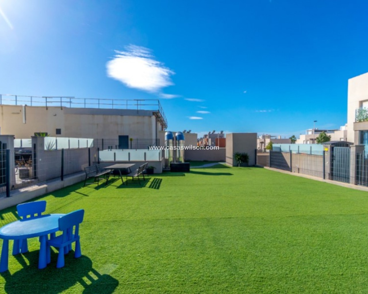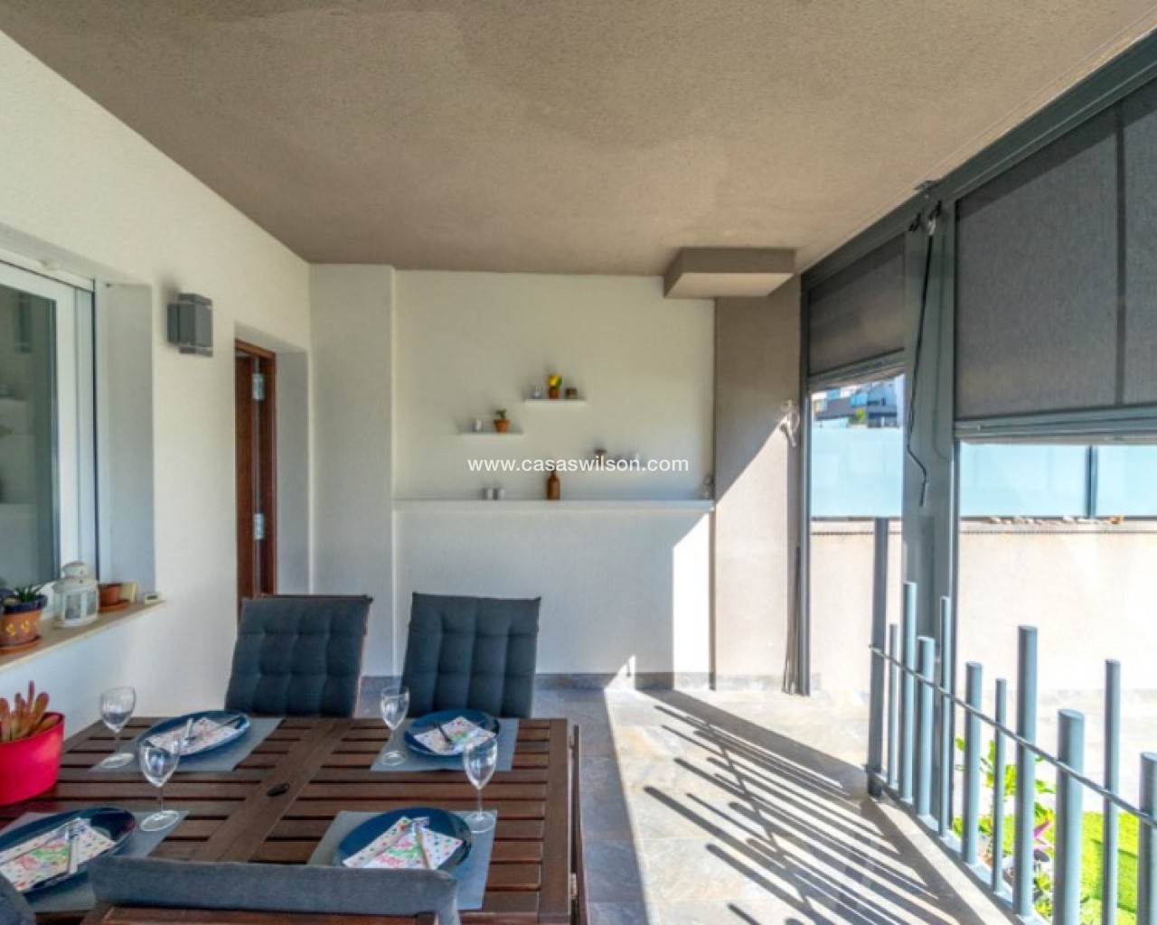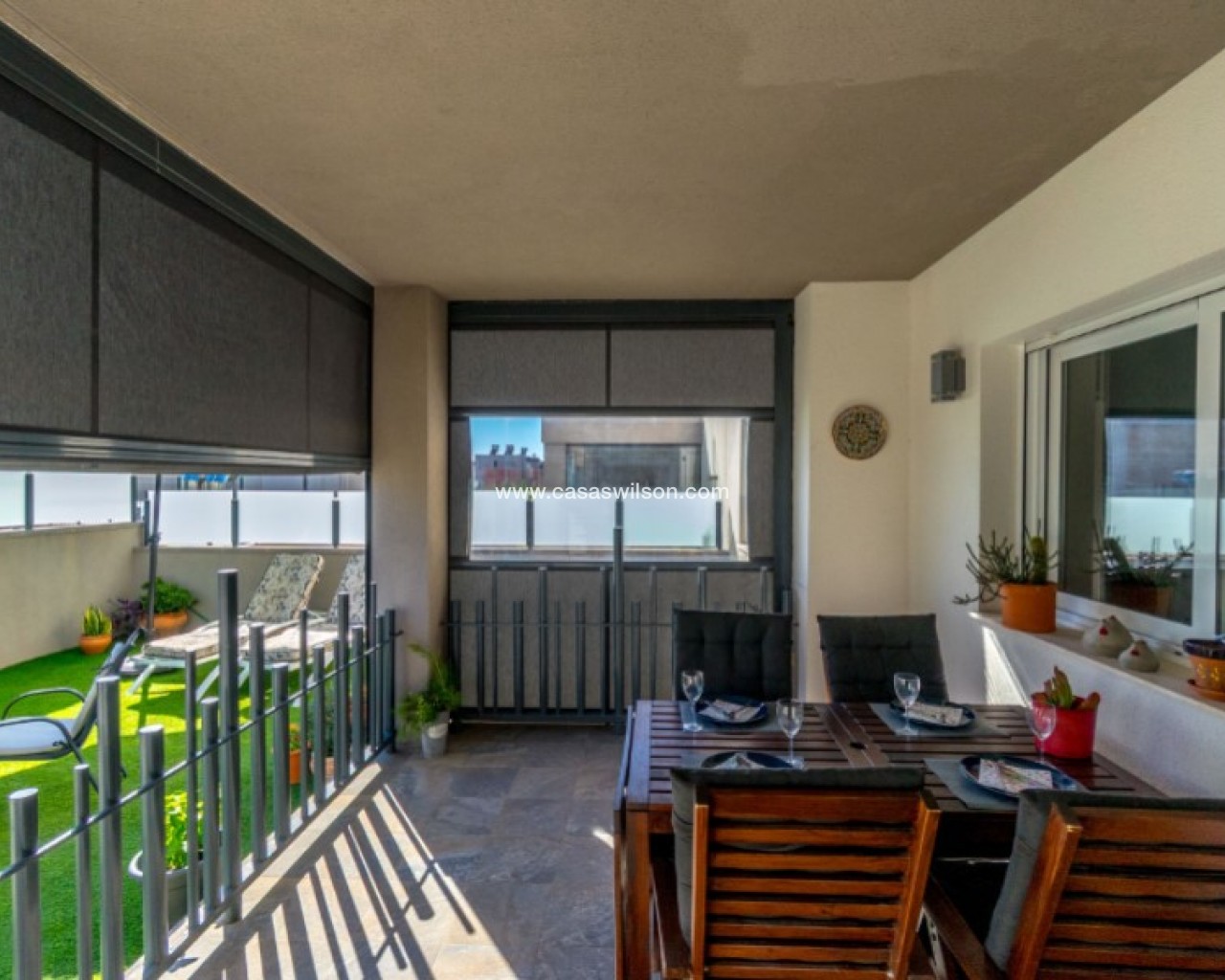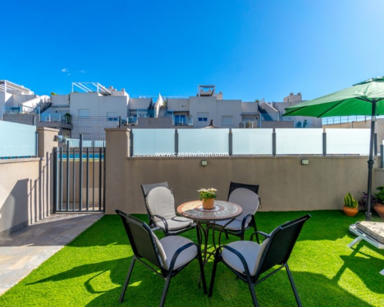 Welcome to this beautiful and very well-maintained flat in a perfect location in the popular area of Solpark 2 in Aguas Nuevas (Sector 25). The home offers two bedrooms, two bathrooms and a well-thought-out floor plan with beautiful patios on both sides, so you can enjoy the sun all day.The west-facing terrace at the entrance area offers afternoon and evening sun - ideal for relaxing moments after a day in the sun. The east/south facing garden offers morning sun until late in the afternoon and has a partially covered terrace with pull-down awnings for extra comfort. From here you have direct access to the beautiful common area with large pool and jacuzzi, the shower with hot water is a perfect place for relaxing.Inside you will find a home that appears almost new, with a high standard and several modern comforts:Heating cables in the kitchen, living room and both bathroomsAir conditioning in ducts (duct system)Limescale remover installed on the water inletMaintained air conditioning and water heater by professional technician if needed.The flat is sold fully furnished and equipped, ready to move straight into.In the basement you will find both a private parking space and a spacious storage room - ideal for storing bicycles, golf equipment and more.This is a property that combines comfort, quality and a sunny location - perfect as both a holiday home and a year-round residence.SOLPARKSolpark II is a popular urbanisation was ready for occupancy in 2019, here there are only 40 units,State-of-the-art apartments with a high standard and beautiful, child-friendly communal areas, lovely swimming pool, jacuzzi and green areas.Walking distance to grocery store, cafes and restaurants and not to forget the sports hall and the well-known Friday market.Just a short bike ride away from several idyllic sandy beaches as well as the centre of Torrevieja.Just a few minutes walk you will find the protected Natural Park of Laguna La Mata, here there are marked trails and cycling (for example, hiking trails that go around the lake) very nice for a quiet excursion or photo trip, it is a nature reserve of very high ecological value: wetlands that are important for many species of birds, especially in migration, nesting and wintering, For bird enthusiasts, there are several good places in the park where you can get nice vantage points for bird watching.Alicante airport is only 35 minutes away by car.There are many golf courses within 15 minutes drive.TorreviejaTorrevieja is a city in the Alicante province in the Comunidad Valenciana region of Spain. The city is a popular tourist destination located about 40 minutes drive from the big city of Alicante and the airport. Torrevieja was originally a small fishing village, and is today one of Europe's largest salt producers, Torrevieja has previously been called the 'salt city', but in recent years the city has also been named 'the sports city', this because of the large sports arenas that have been built in recent years. As a result of this fantastic investment, Torrevieja became one of four organising cities during the Women's Handball World Championship in 2021.When you live in Torrevieja, you are within a short walking distance to white, elongated sandy beaches with the 'blue flag' stamp, as an indication of, among other things, high water quality. In the immediate area and preferably 'right outside' the door you will find a large selection of local shops, restaurants, cafes, shopping centres, green parks, the harbour and the promenade. If you are looking for an area with life all year round and a healthy microclimate with 320 days of sunshine a year, this may be for you.Economy:Asking price 269.000€ + feesCommon expenses: 470€ x 2 per yearRefuse collection fee: 55,10€ x 2 per yearTax flat: 166,23€ per yearTax Garage: 45,46€ per year