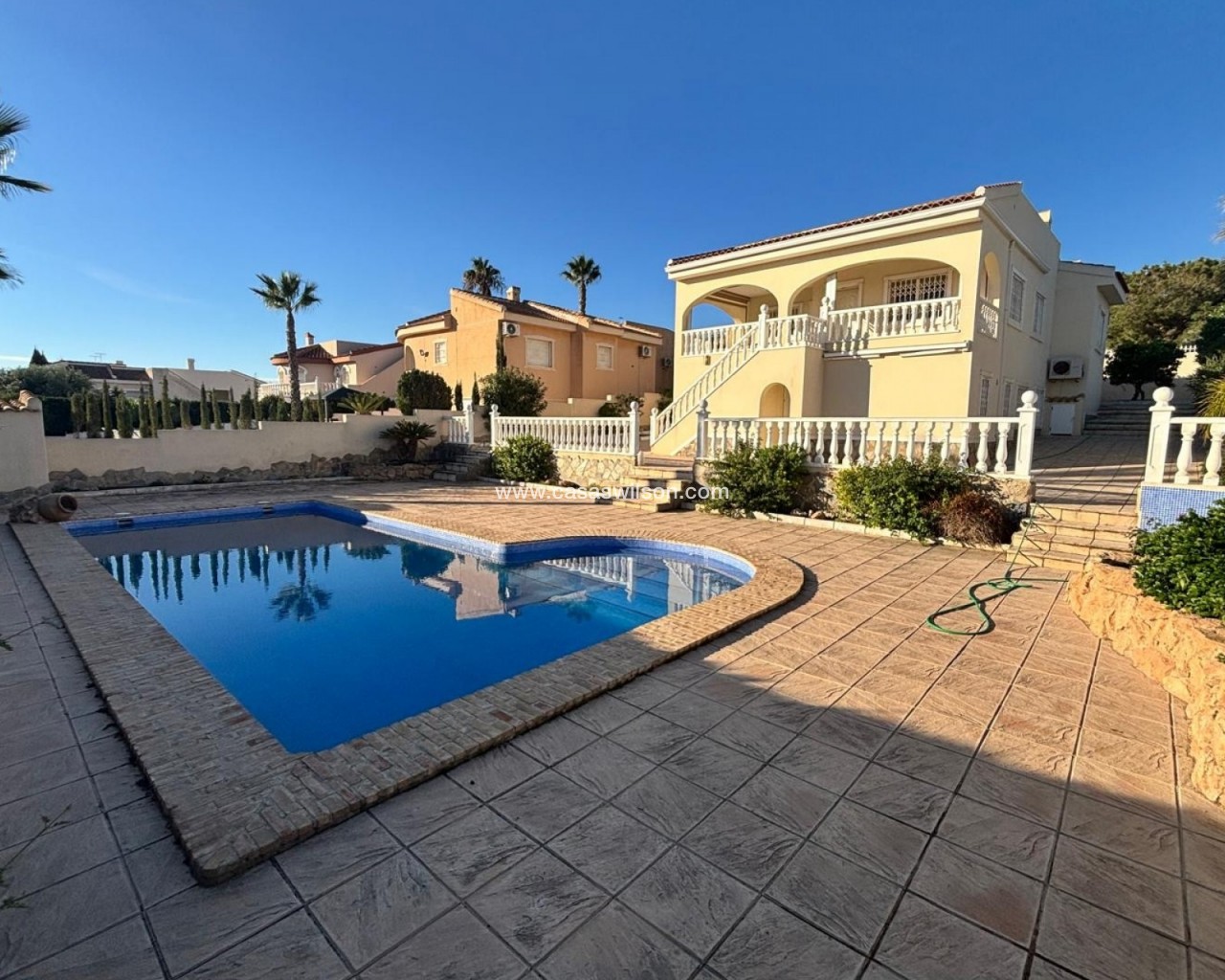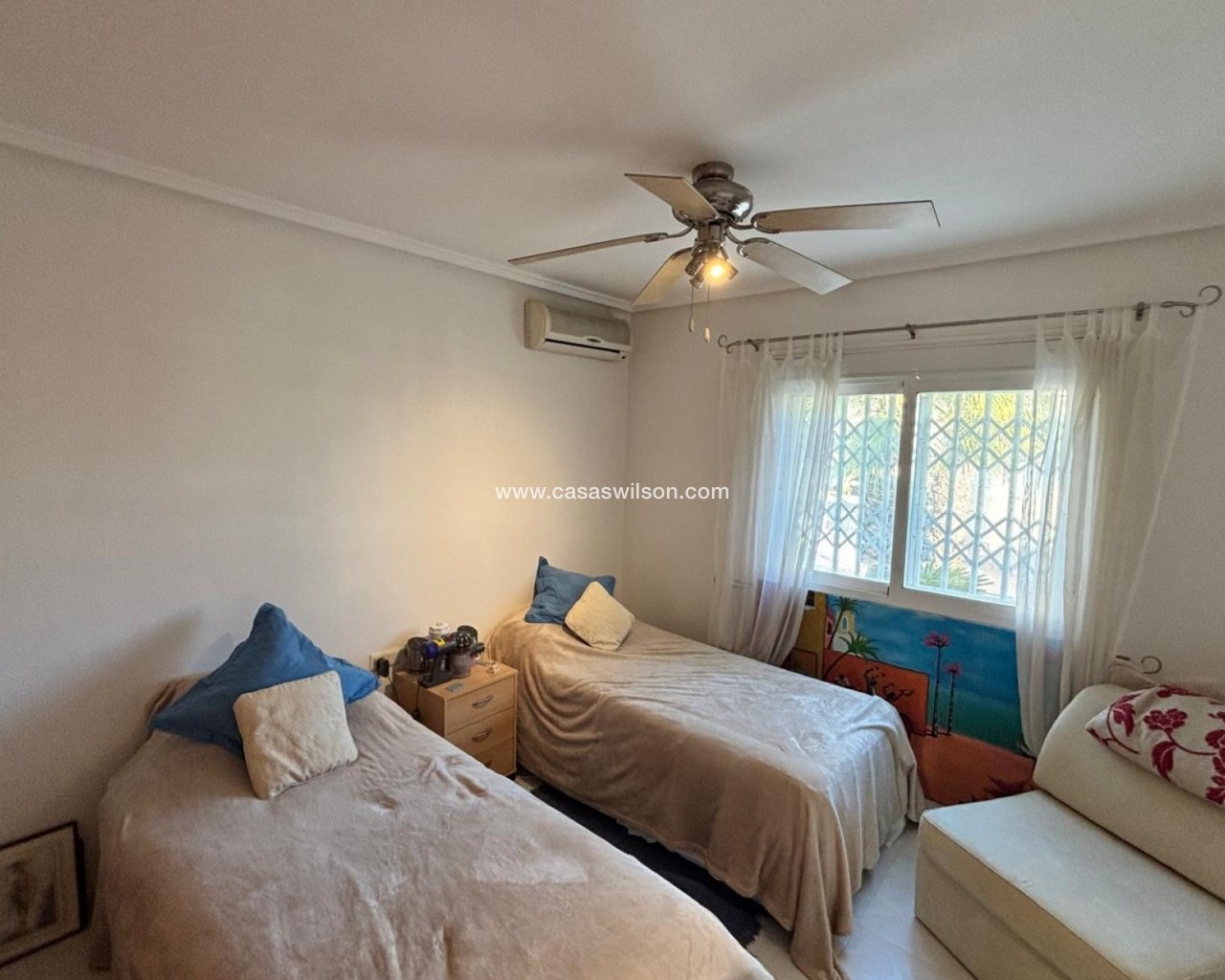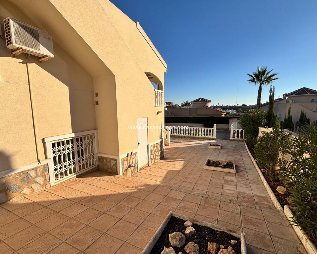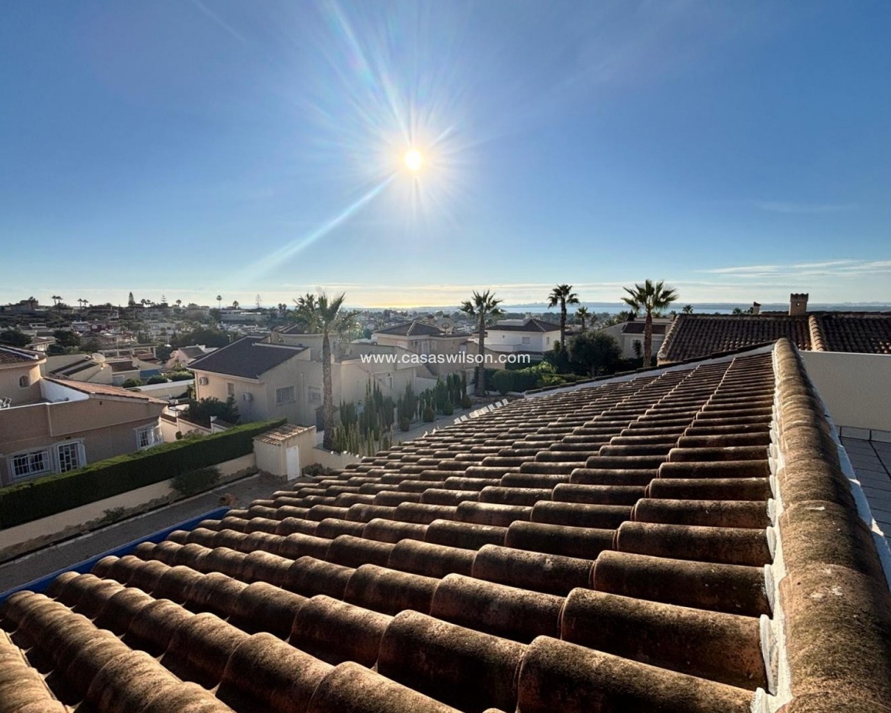 Here we have this amazing villa on the sought after area of La Fiesta. The property is set over 2 levels. Top level has 3 double bedrooms 2 bathrooms one being an en-suite, lounge and kitchen. There is a large covered terrace with views to the stunning swimming pool. Down stairs via a separate entrance is a self contained apartment with 2 double bedrooms bathroom separate lounge and kitchen. The property is set on a large plot with plenty of terraces and a large private pool. Complete with garage solarium with views to the lakes. Being offered mainly furnished.