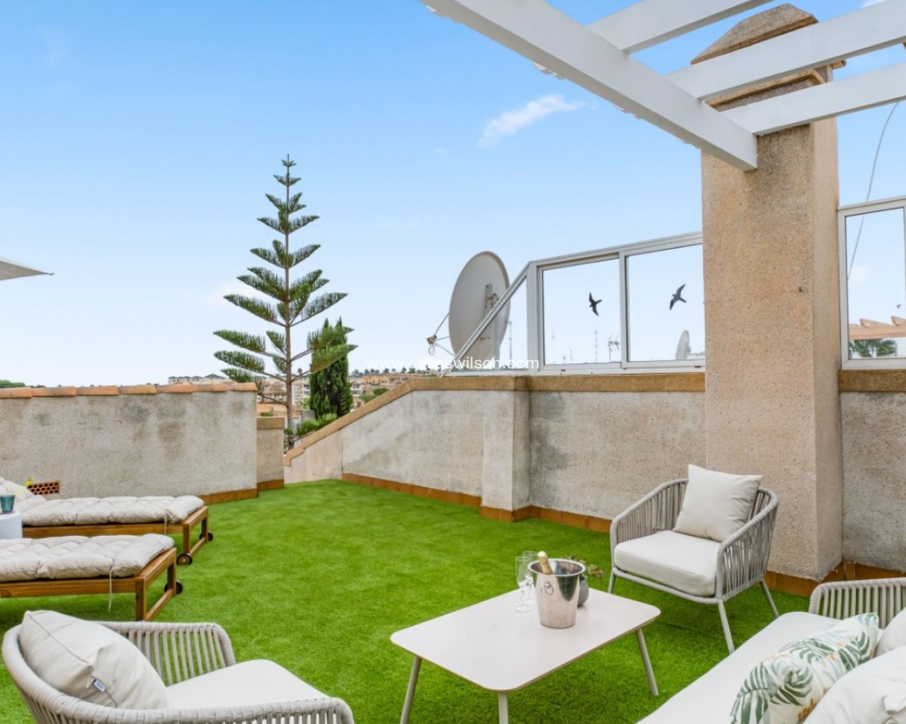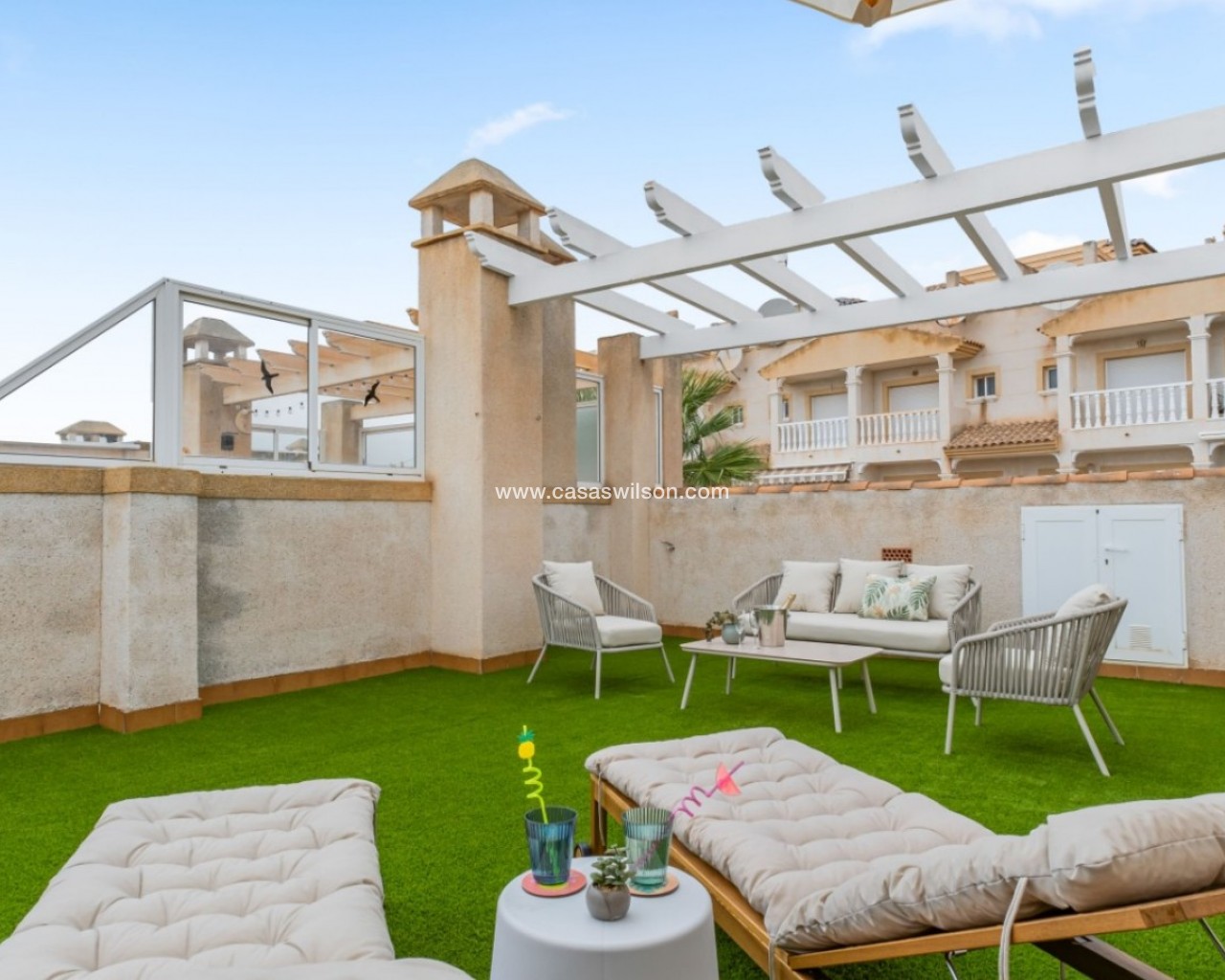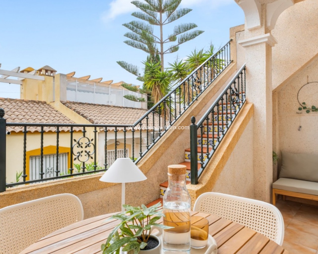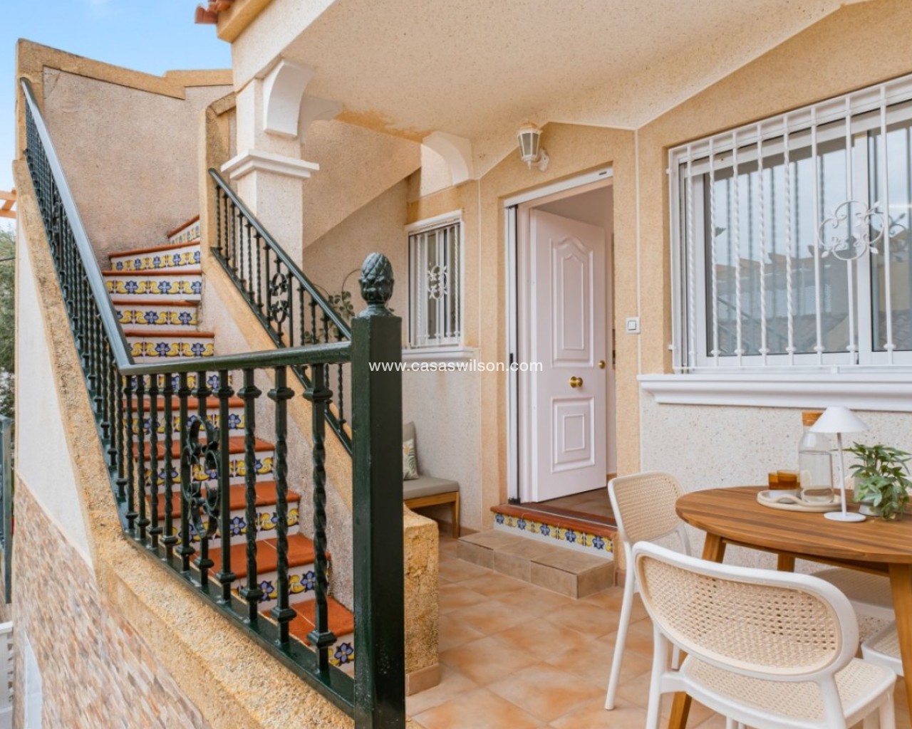 Step into this delightful one-level townhouse that perfectly blends rustic Spanish charm with elegant Mediterranean living. Fully renovated with premium materials and impeccable taste, this home is a rare find—ideal for year-round living, a holiday retreat, or a high-potential rental investment. Key Features: Warm & Inviting Interiors: Featuring traditional terracotta floors, a cozy fireplace, and an open-plan kitchen with breakfast bar—perfect for enjoying relaxed meals and entertaining guests. 2 Bedrooms & 1 Bathroom: Bright and thoughtfully designed spaces that make the most of the 65 m² layout. Private 38 m² Solarium: Enjoy all-day sunshine thanks to the southeast orientation. Perfect for sunbathing, dining al fresco, or stargazing on warm Mediterranean evenings. Fully Furnished: Move-in ready with tasteful, quality furnishings. Storage Room & Chimney: Added convenience and year-round comfort. Community Pool: Access to a well-maintained communal pool in a peaceful, established urbanisation. Built in 2000: Lovingly cared for and modernised since, preserving its authentic character. Prime Location – Monte Golf, Villamartin (Orihuela Costa): Live just minutes from world-renowned golf courses, the vibrant Villamartin Plaza, and the golden beaches of La Zenia, Cabo Roig, and Playa Flamenca. All essential amenities, including supermarkets, restaurants, and the famous Zenia Boulevard shopping centre, are within easy reach. This home offers the perfect balance of tranquillity and convenience in one of Costa Blanca’s most sought-after areas. Whether you're seeking a permanent residence, a weekend getaway, or a rental investment, this Mediterranean gem ticks all the boxes. Don't miss out—book your private viewing today!