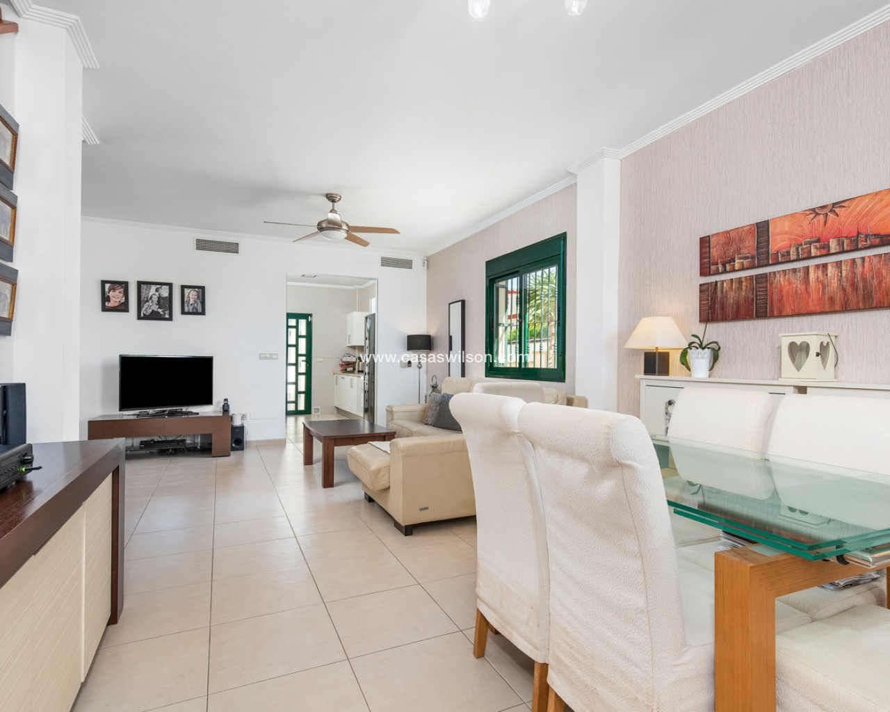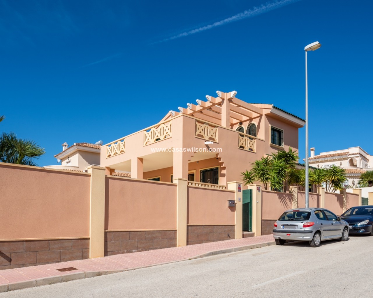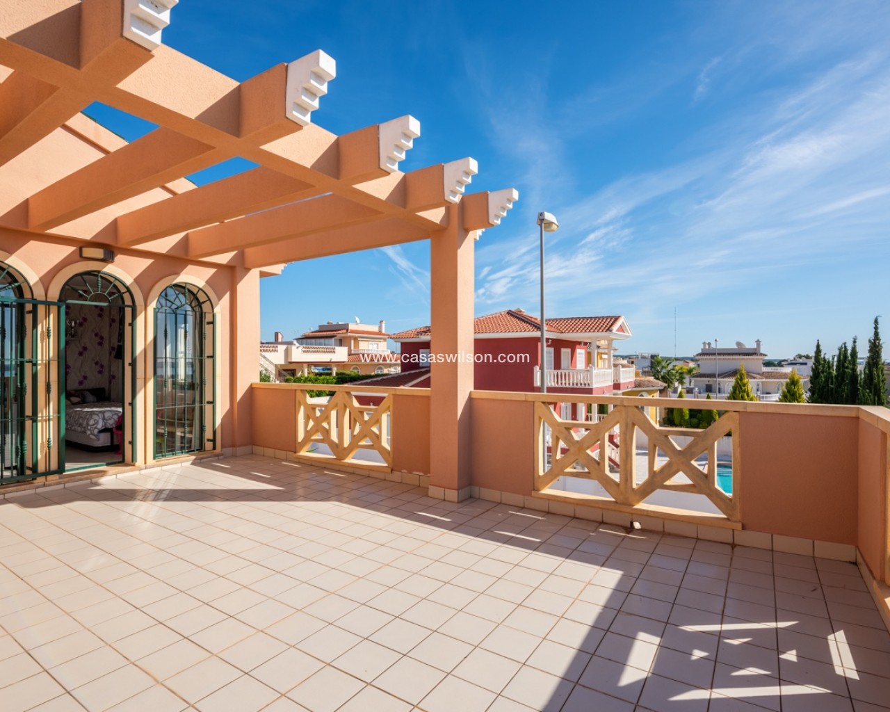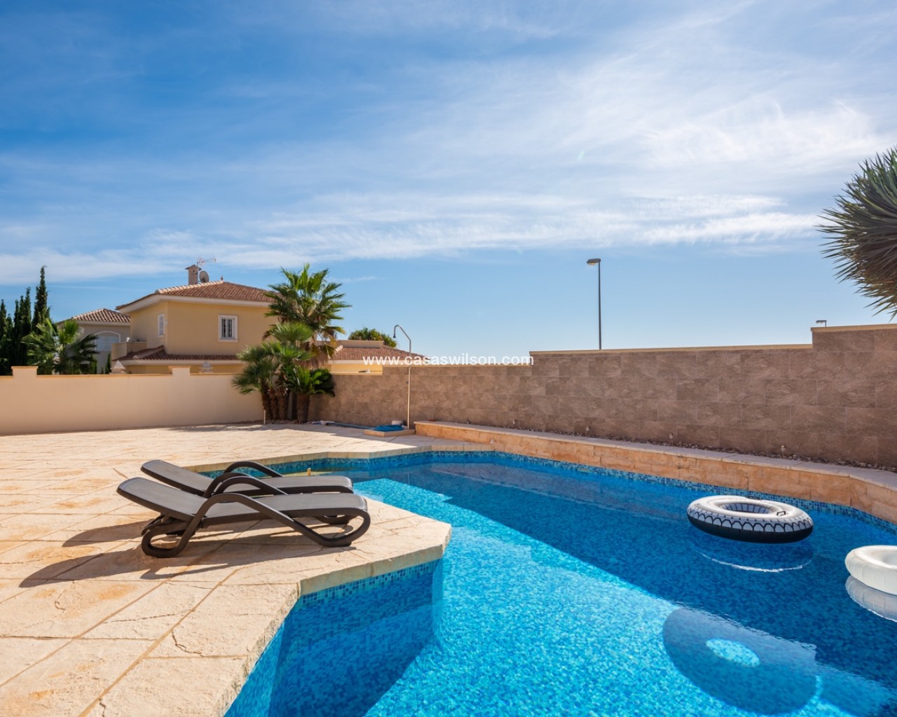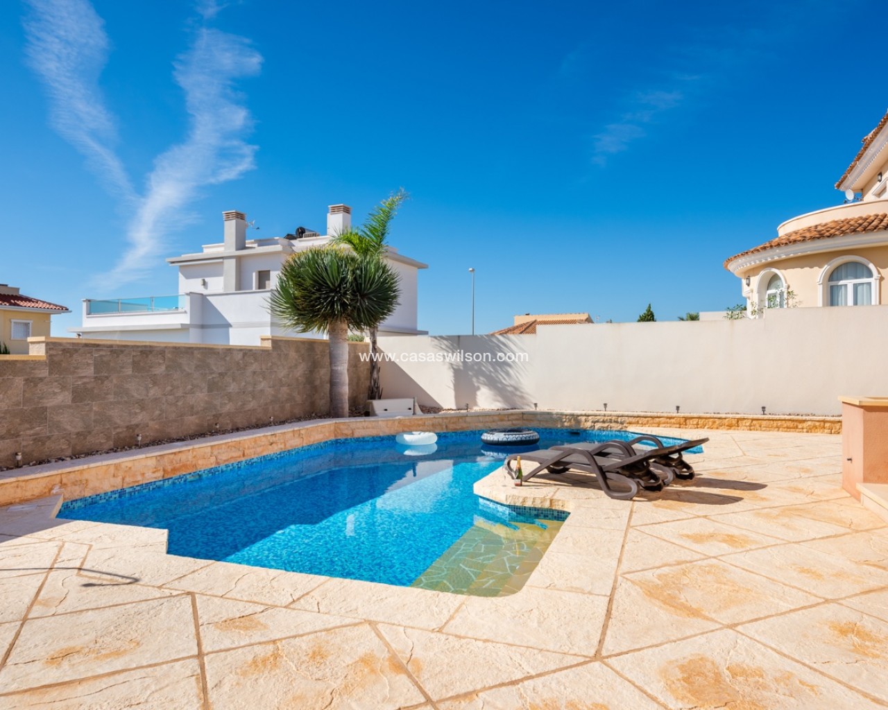 This lovely 4 bedroom villa is located in Ciudad Quesada with amazing views over the salt lake. The villa has a living size of 192 sqm and is set over two floors. It consists of 4 double bedrooms, 2 bathrooms, a modern kitchen and a large living room with a dining area and lounge area. The villa also as a storage / utility room. The villa is equipped with air condition. Outdoor areaThe villa is set on a south facing plot of 546 sqm. It has a lovely tiled garden where you can find a swimming pool and a lot of space for outdoor seating areas and sun beds. By the entrance there is also a large covered terrace. At the back of the house there is a large parking area with space for several cars. The villa also has a large terrace in the first floor with amazing views over the salt lakes and Torrevieja. AreaCiudad Quesada is a cozy and popular place on the Costa Blanca coast. Here you will find shops, restaurants, cafes, bars, pharmacies, banks, hairdressers, medical and dental services and much more. In the main street it has recently been built a cozy shopping mall with several shops. Ciudad Quesada also offers several activities for the whole family, such as the famous La Marquesa golf course, bowling, mini golf, tennis courts, soccer fields, gyms, spas, seasonal water park and much more.