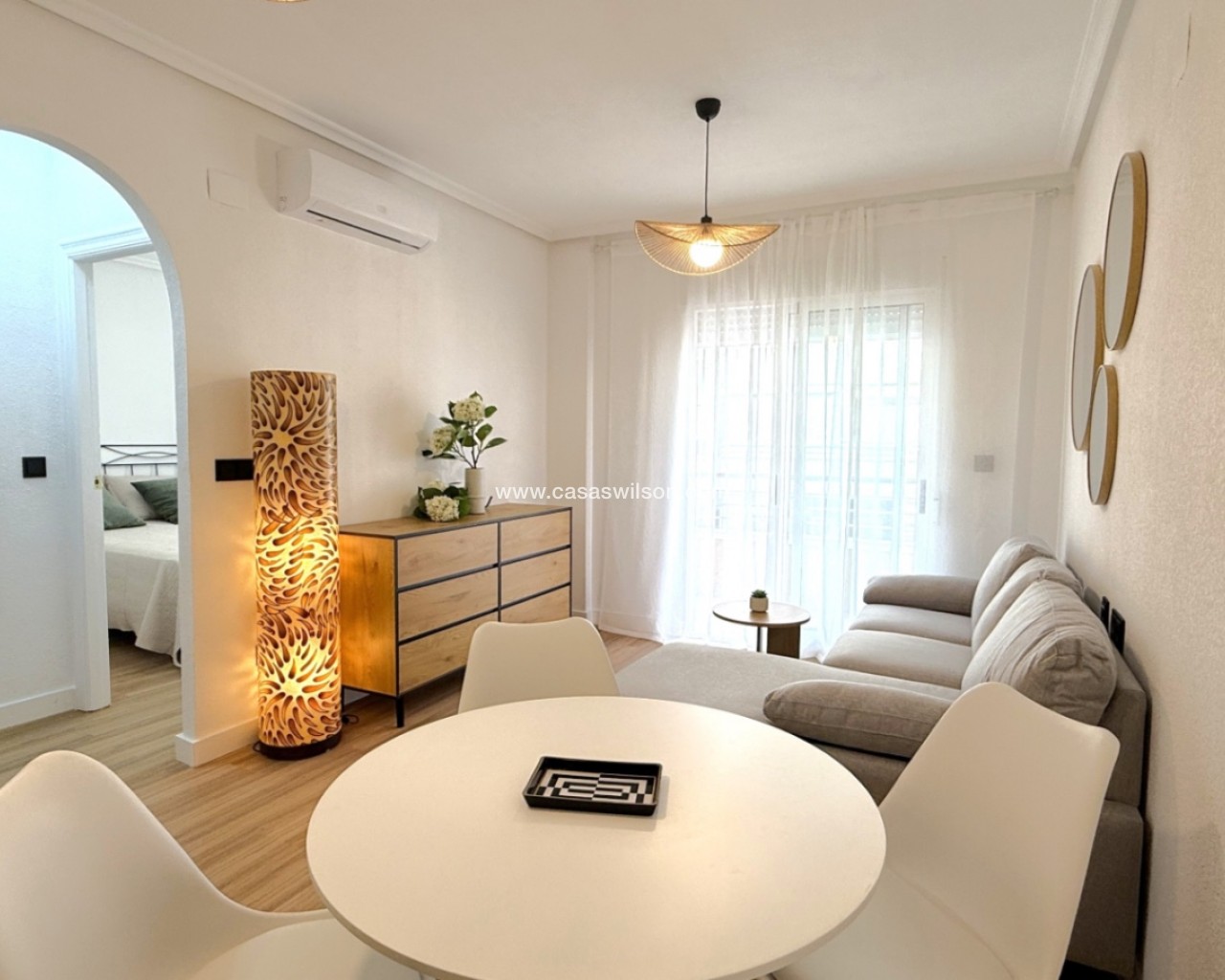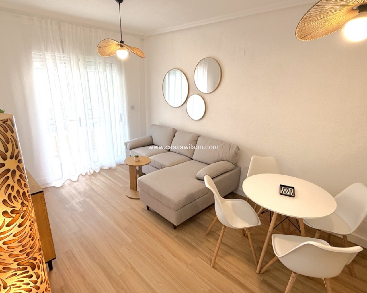 Discover this beautifully fully refurbished 2-bedroom, 1-bathroom apartment located on Calle Villa Madrid, Torrevieja, just a short walk from the city center and the vibrant marina. Recently renovated from top to bottom, this modern home combines comfort, style, and convenience.The apartment features a bright and spacious open-plan living area with updated flooring, fresh paint, and contemporary finishes throughout. The newly fitted kitchen includes sleek cabinetry and modern appliances, perfect for everyday living or hosting guests. Both bedrooms offer good natural light and comfortable layouts, while the stylish, fully renovated bathroom boasts quality fixtures and a clean, elegant design.Situated in a well-maintained building with easy access to local amenities, supermarkets, cafés, and public transport, this property is ideal as a permanent residence, holiday home, or rental investment. Move-in ready and designed with attention to detail, it’s a fantastic opportunity in one of Torrevieja’s most convenient locations.