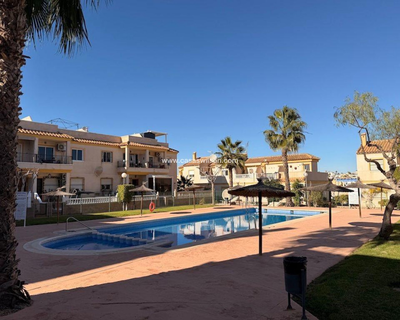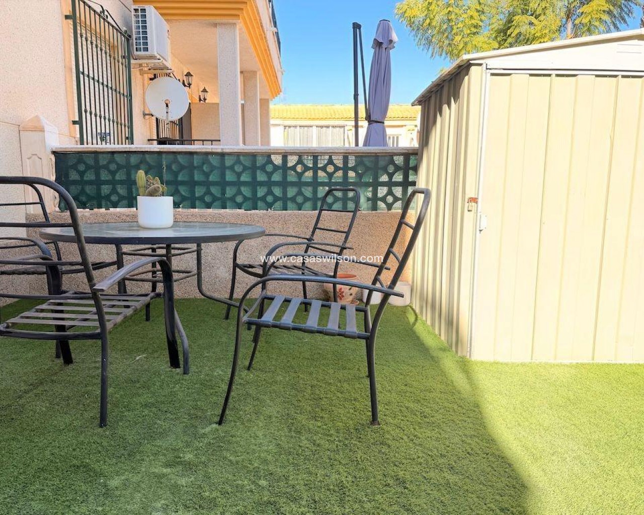 Villamartin, St. James Hills Residential – Ground-floor bungalow overlooking a 50 m² communal garden.. It features a private plot of approximately 20 m² and a home distributed in 2 bedrooms, 1 bathroom, a kitchen, and a living-dining room. The property is sold furnished and equipped with air conditioning, includes its own parking space, and offers access to a large communal swimming pool.