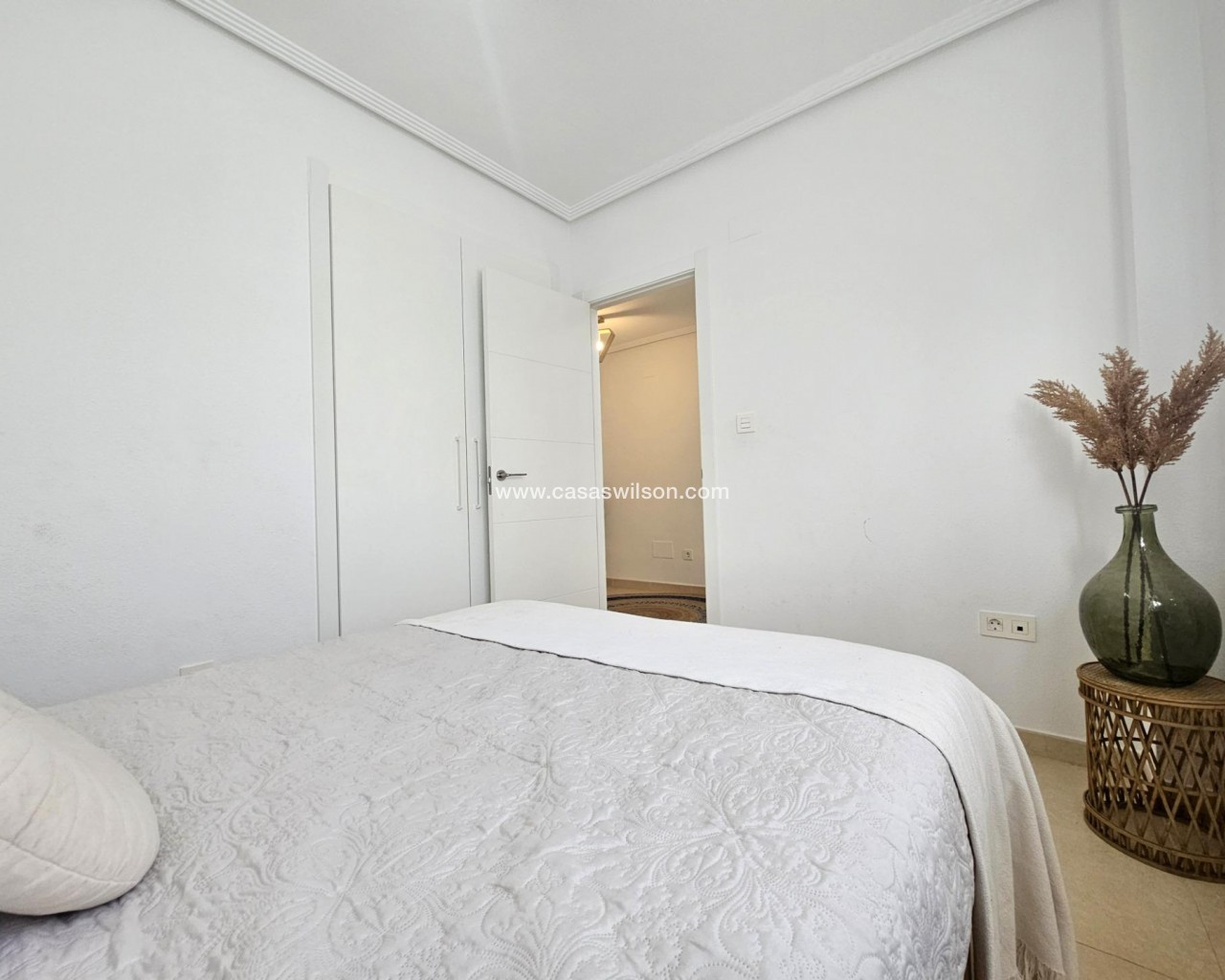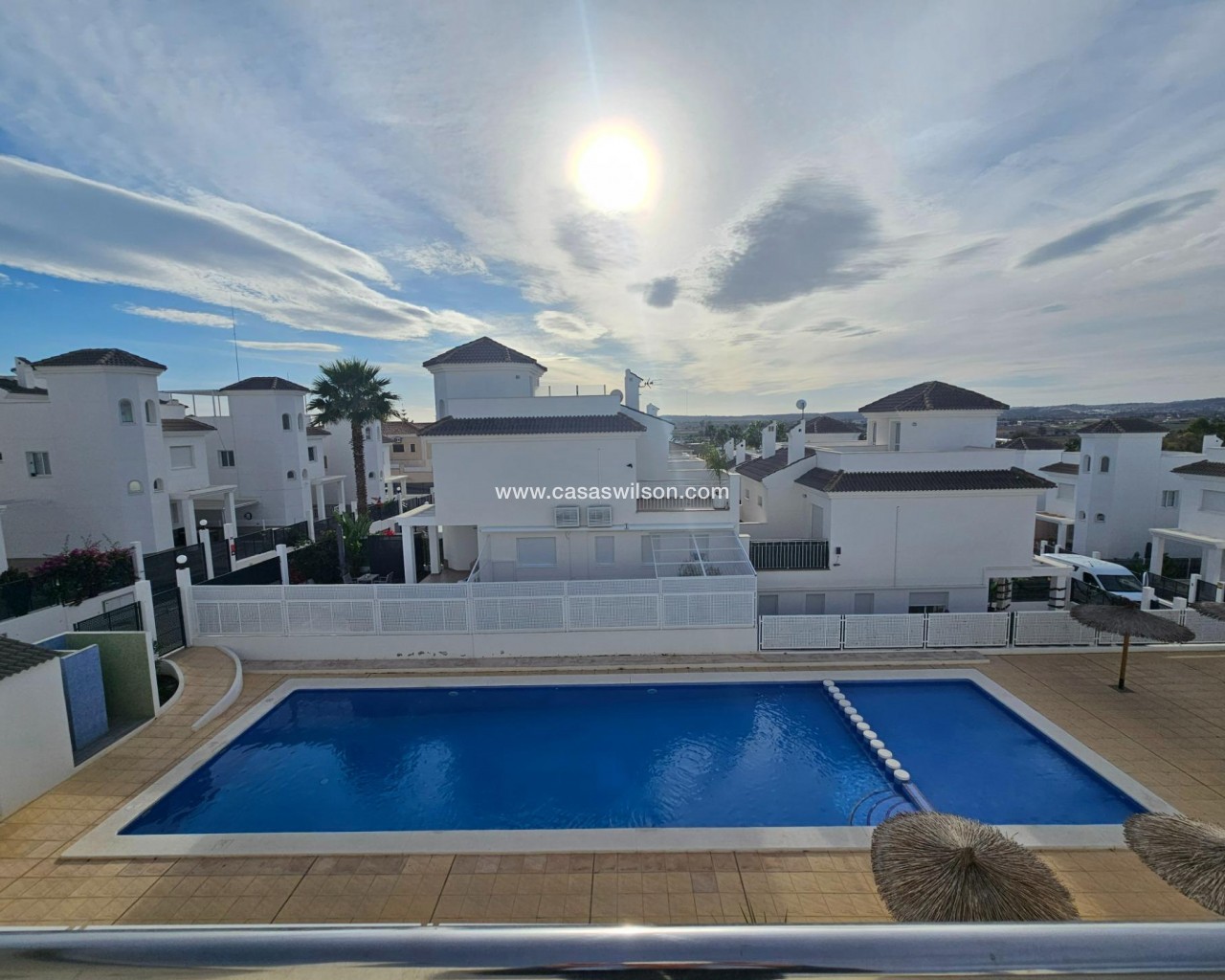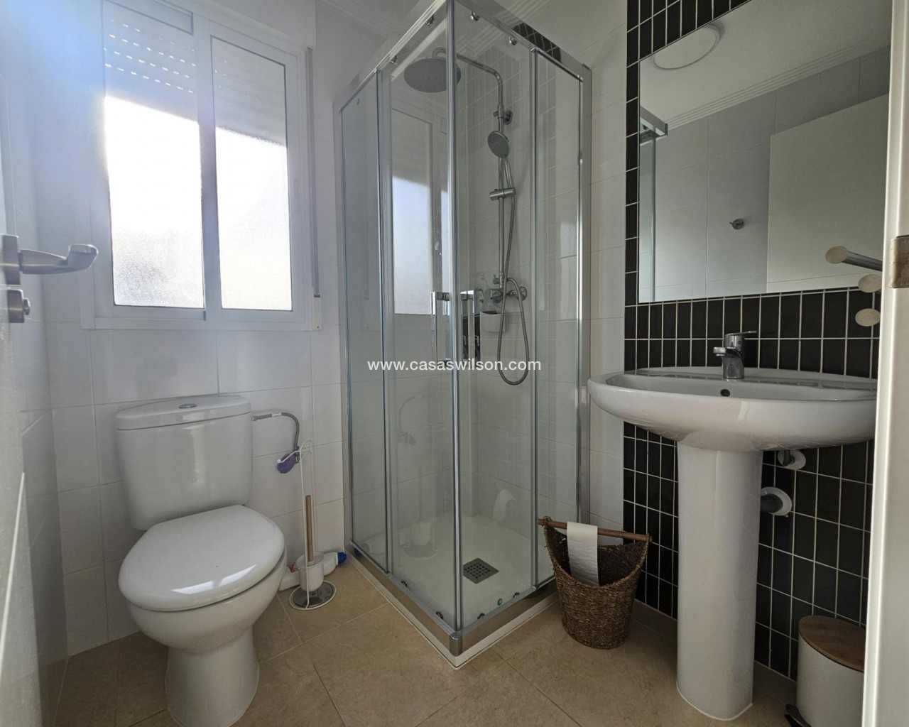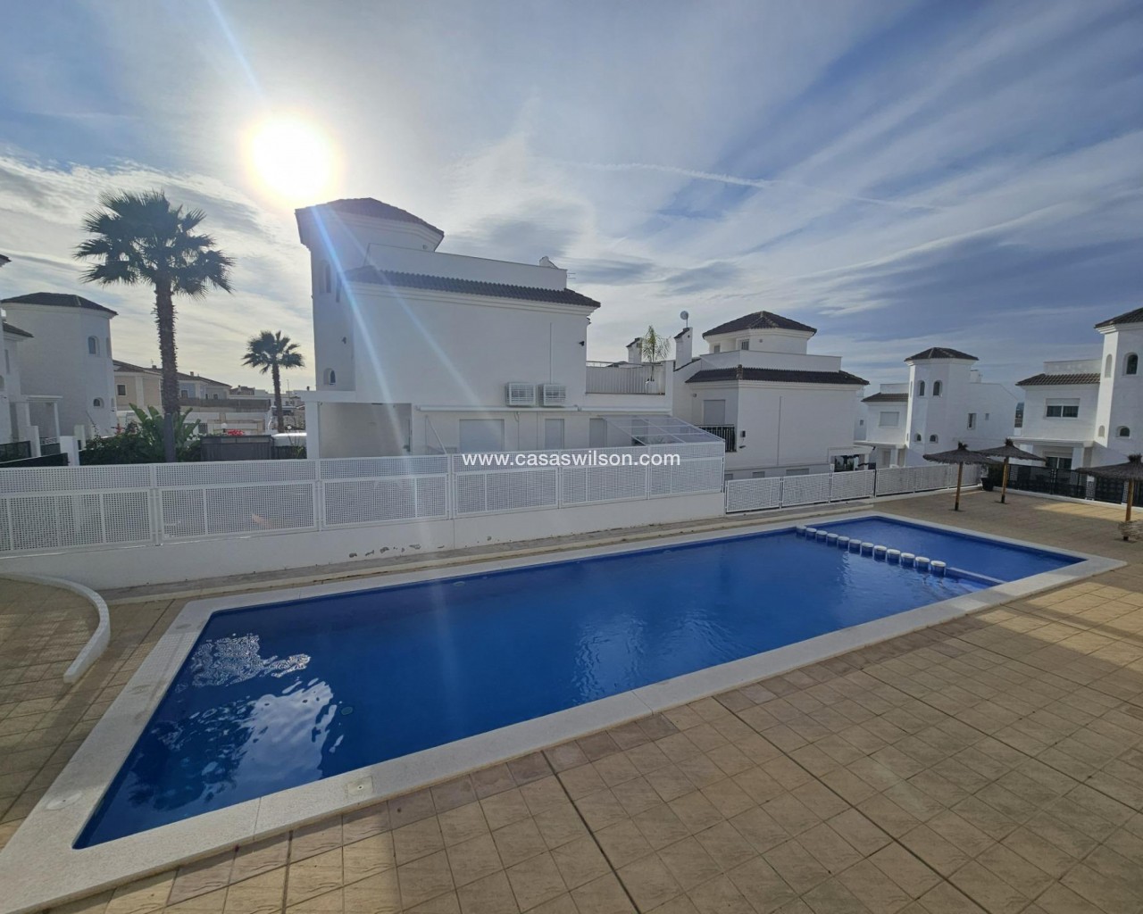 Welcome to your dream home in San Fulgencio, Alicante! This enchanting semi detached villa offers the perfect blend of comfort and luxury. With 3 bedrooms and 3 bathrooms, this bright and inviting residence is ideal for families or those who cherish spacious living. The independent kitchen is fully equipped, offers plenty of storage and has access to a little back patio. Each room comprises of hot and cold air conditioning, ensuring a pleasant atmosphere all year round. The highlight of this property is its stunning outdoor areas that invite relaxation and entertainment amidst magnificent panoramic views. A low maintenance garden area with artifical grass, terrace and lovely palmtrees and fruitplants are perfect so sip your morning coffee. The master bedroom on the first floor gives access to a large south east facing terrace with views at the communal pool and the mountains in the distance. The solarium offers 25M² for hosting an evening gathering under the stars or all day sunbathing. Further we have 2 en suite bathrooms and 1 family bathroom. Under the stairs we can find a confortable storage room. Located just 5km from pristine beaches, you can enjoy sun-soaked days by the sea whenever you desire. Plus, being close to local amenities means everything you need is within easy reach. Meticulously maintained and in good condition, this home promises a worry-free move-in experience. Don’t miss this opportunity to own a piece of paradise—schedule your viewing today and step into a brighter lifestyle!