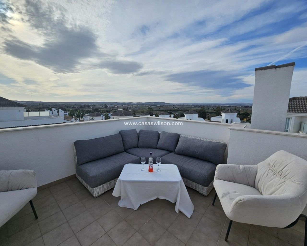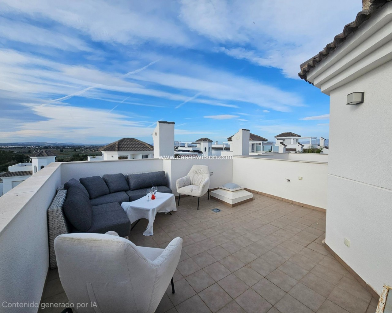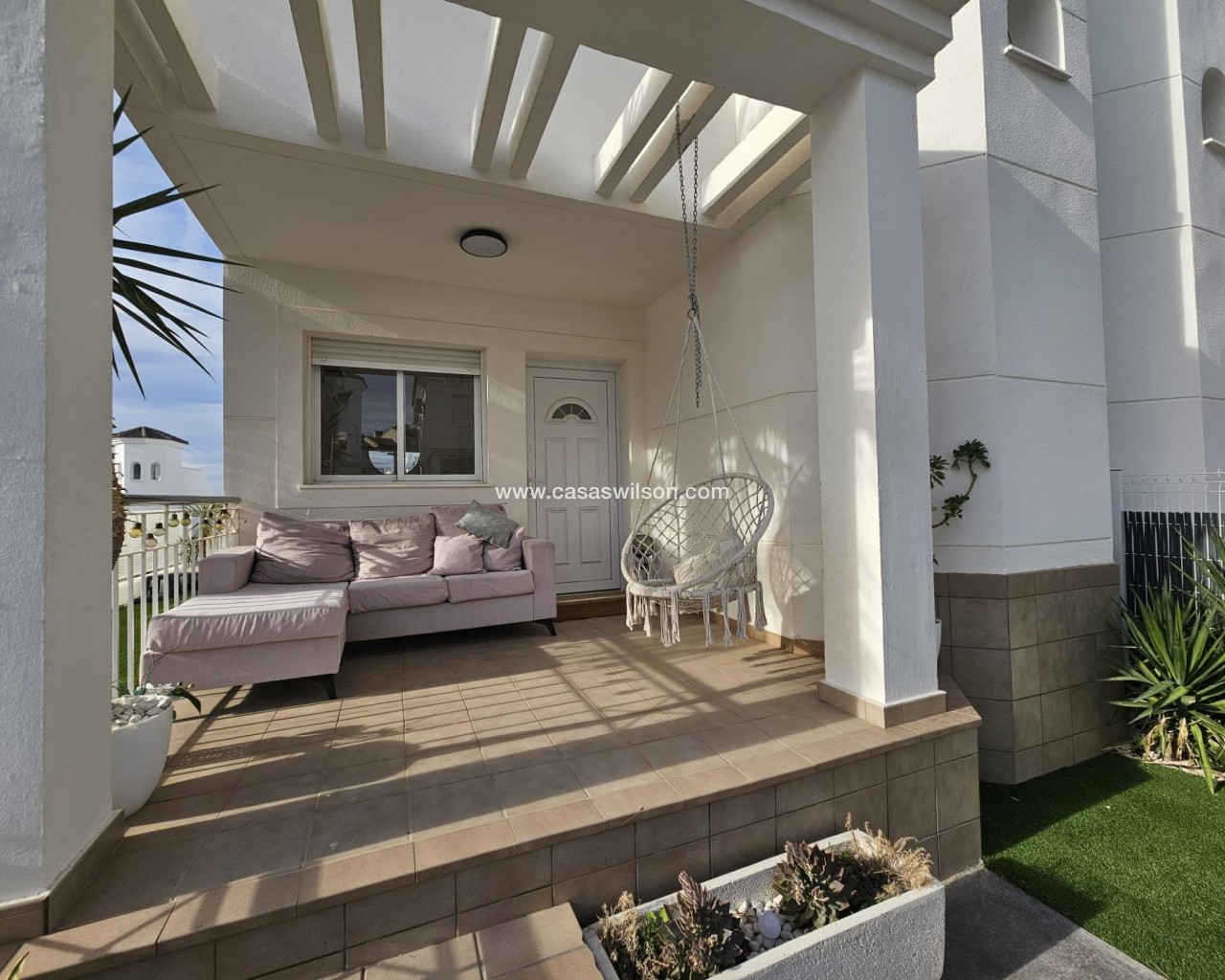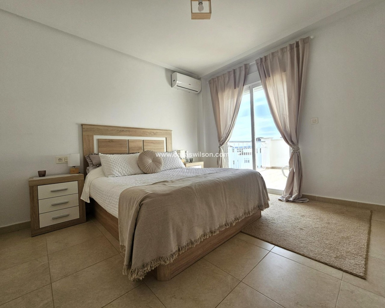 Welcome to your dream home in San Fulgencio, Alicante! This enchanting semi detached villa offers the perfect blend of comfort and luxury. With 3 bedrooms and 3 bathrooms, this bright and inviting residence is ideal for families or those who cherish spacious living. The independent kitchen is fully equipped, offers plenty of storage and has access to a little back patio. Each room comprises of hot and cold air conditioning, ensuring a pleasant atmosphere all year round. The highlight of this property is its stunning outdoor areas that invite relaxation and entertainment amidst magnificent panoramic views. A low maintenance garden area with artifical grass, terrace and lovely palmtrees and fruitplants are perfect so sip your morning coffee. The master bedroom on the first floor gives access to a large south east facing terrace with views at the communal pool and the mountains in the distance. The solarium offers 25M² for hosting an evening gathering under the stars or all day sunbathing. Further we have 2 en suite bathrooms and 1 family bathroom. Under the stairs we can find a confortable storage room. Located just 5km from pristine beaches, you can enjoy sun-soaked days by the sea whenever you desire. Plus, being close to local amenities means everything you need is within easy reach. Meticulously maintained and in good condition, this home promises a worry-free move-in experience. Don’t miss this opportunity to own a piece of paradise—schedule your viewing today and step into a brighter lifestyle!