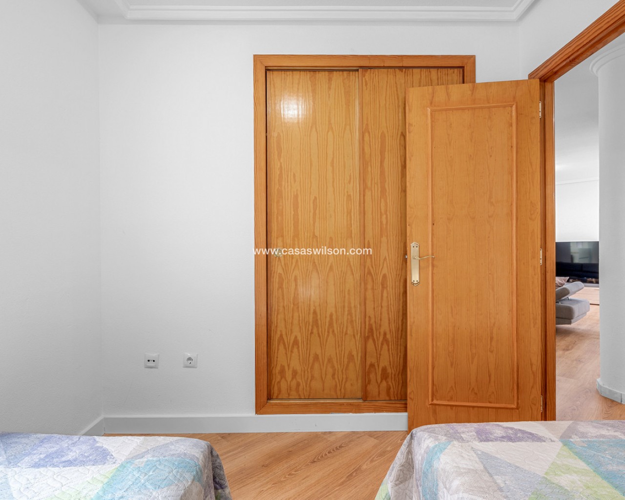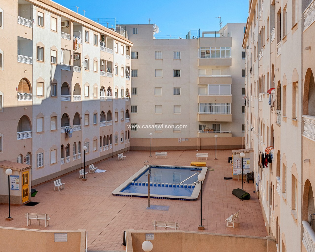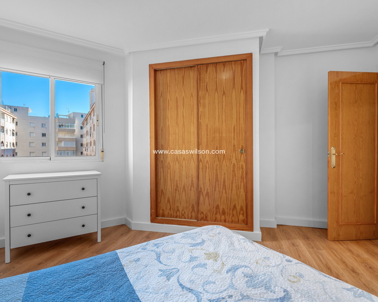 This move-in ready apartment on the 3rd floor combines generous space, a central location and practical features, making it ideal as both a holiday home and a permanent residence.The property offers three bedrooms, two of which include fitted wardrobes with excellent storage, as well as two bathrooms – one with direct access from the master bedroom.The spacious living room serves as the natural heart of the home, with plenty of room for both a sofa area and dining table. From here, there is access to a small terrace overlooking the communal pool area, which is open from mid-June to mid-September. The living room is equipped with air conditioning that provides both cooling and heating, ensuring a comfortable indoor climate all year round.The kitchen is separate and offers functional storage solutions, with the possibility of adding extra cabinet space if desired.The layout of the apartment creates a pleasant sense of openness, and the higher floor combined with large windows ensures a bright atmosphere throughout the day. The building is equipped with 2 lifts, making access easy and convenient for all ages.The property is sold fully furnished and includes all white goods, allowing new owners to move in immediately without additional expense.The apartment is located within walking distance of everything that makes Torrevieja so appealing. The large and popular Mercadona supermarket is just a few minutes away, and the well-known beaches of Los Locos and Playa del Cura can be reached with a relaxed stroll. Torrevieja’s town centre, marina, restaurants, cafés and vibrant promenade are also close by, offering a perfect mix of city life and coastal relaxation. Alicante Airport is approximately a 40-minute drive away, making the home easily accessible for both international buyers and visiting guests.This apartment represents an excellent opportunity for families, couples or investors looking for a well-designed home in an area with great facilities, a friendly atmosphere and close proximity to both beaches and the city centre. It offers spacious living, a desirable location and a communal pool area that adds extra value during the summer months.