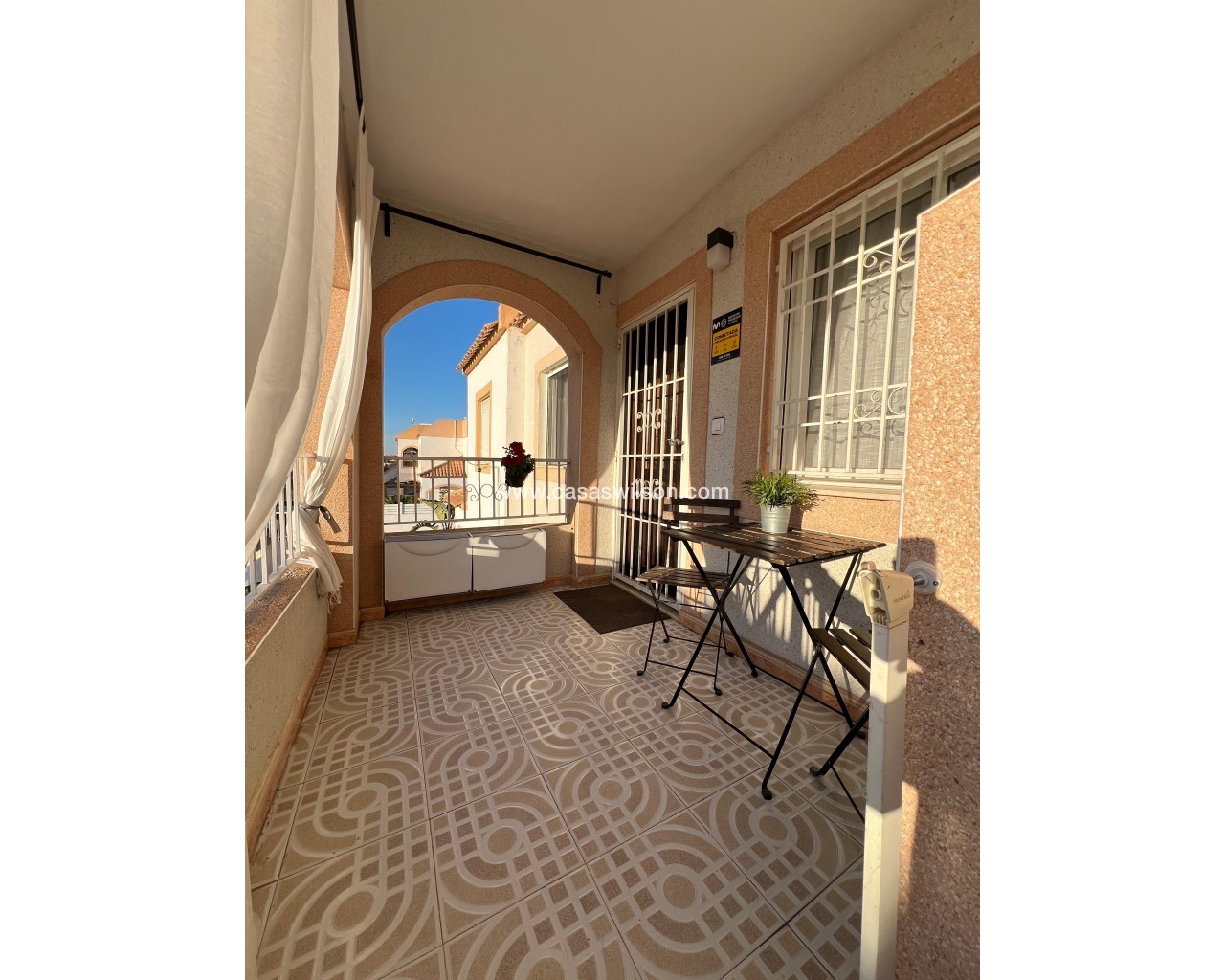 Comfortable bungalow for sale in a gated urbanization in the city of Torrevieja.The house has two bedrooms, one bathroom, a living room with an open kitchen, and a private terrace garden of 40 sq. m.The urbanization features a pool, green area with trees.The house includes a fully equipped bathroom, a furnished kitchen with extractor hood and stove.The city of Torrevieja is located on the shores of the Costa Blanca. Here you can enjoy excellent sunny weather and stunning beach areas. The city not only borders the Mediterranean Sea but also two salt lakes: the pink Salinas de Torrevieja and the emerald Salada de la Mata, the water and mineral mud of which are comparable in composition and popularity to the Dead Sea. Hundreds of people come here just to bathe in these lakes. Thanks to these lakes, a unique climate has formed in the south of the Costa Blanca, which the World Health Organization has recognized as one of the healthiest in the world.Close by, there are all necessary services for everyday life: shopping center, restaurants, bars, shops, recreational areas, school, pharmacies, banks, bus stops.This beautiful bungalow is perfect for those looking for a beautiful, stylish home in a quiet area. Distance to the sea - 4 km.Online purchase is possible, as well as purchase on credit from a bank at 3-6% annual interest.