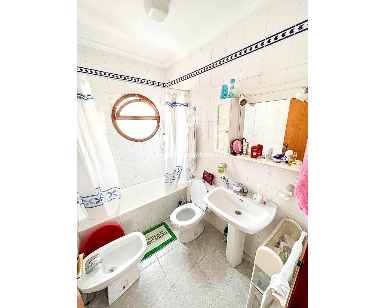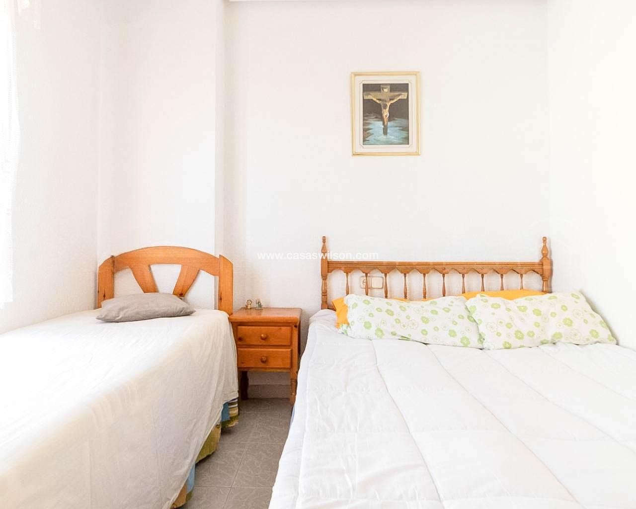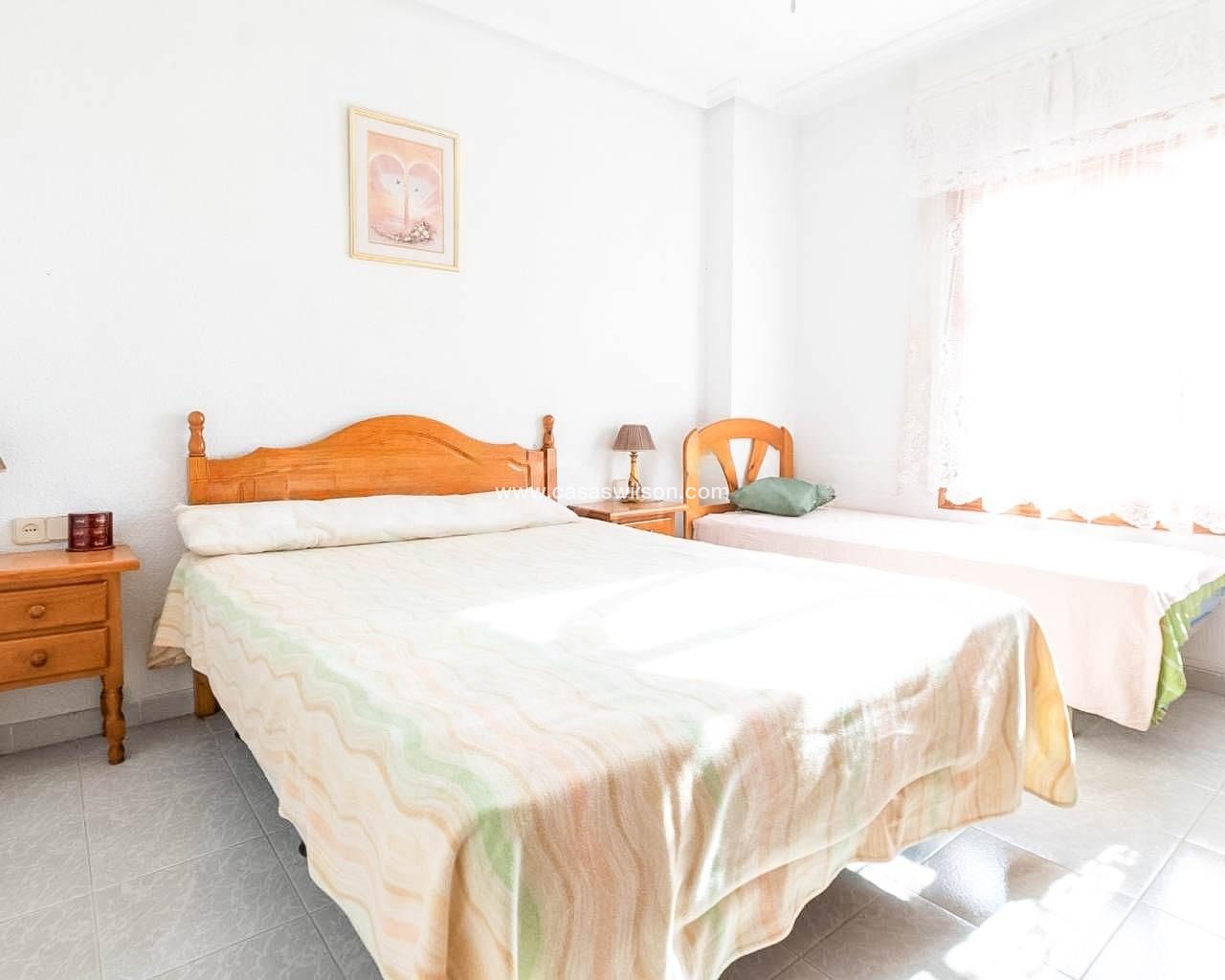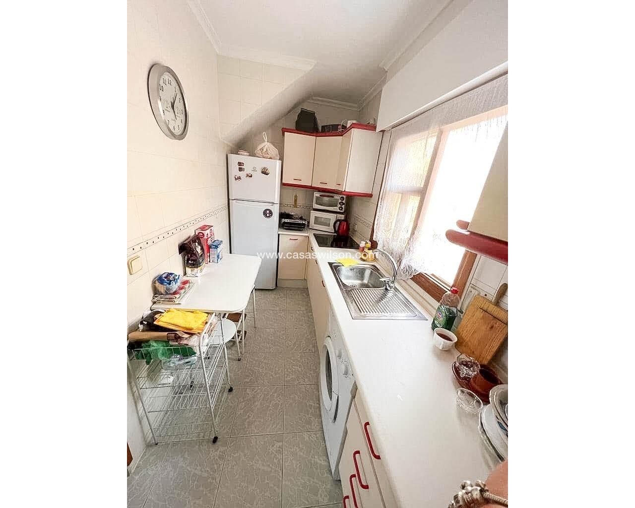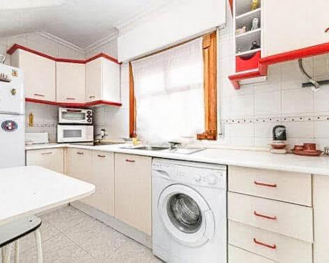 For sale a cozy and well-maintained duplex bungalow located in Nueva Torrevieja, just 1 km from the beach. An excellent choice both for holidays and for year-round living in one of the most peaceful and desirable areas of the city. Main features: - 76 m² built (75 m² usable) - 2 spacious bedrooms with double beds - 2 bathrooms - East and west orientation - Air conditioning - Beautiful communal pool in a closed, well-kept urbanization Layout: Ground floor: - Separate fully equipped kitchen - Spacious living room - Bathroom Second floor: - Two large, bright bedrooms - Second bathroom