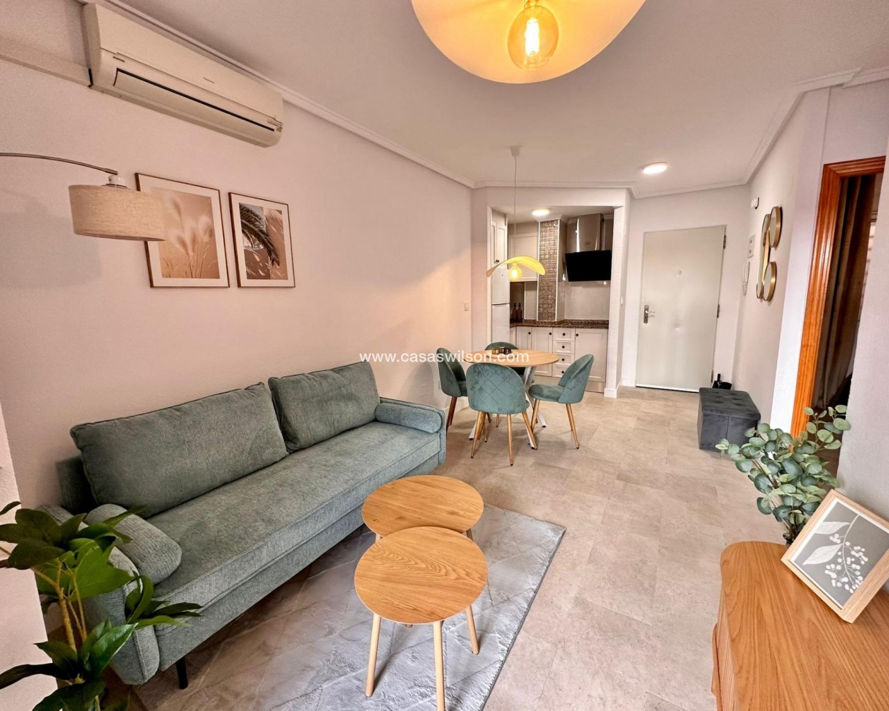 Bright and welcoming 2-bedroom, 1-bathroom apartment located at number 7 Mar Báltico Street in Torrevieja, in a residential area very close to the sea and with a swimming pool within the complex, ideal for enjoying the Mediterranean climate year-round. This property perfectly combines everyday comfort with a holiday feel, thanks to its proximity to Los Locos Beach and the communal areas where you can relax without leaving the complex. Surroundings and Location Mar Báltico Street is located in the Playa de los Locos–Los Frutales area, a highly sought-after area of Torrevieja for its proximity to the sea, its coves, and its established residential environment, with apartment buildings, local shops, and services open all year. The beach is just a short walk from the apartment, allowing you to enjoy strolls along the seafront, daily swims in season, and sunsets over the Mediterranean without needing a car. Furthermore, its location next to one of the city's most iconic coastal areas makes the apartment particularly appealing for both permanent residence and extended holiday stays. Gated Community and Swimming Pool The property is part of a private gated community with a swimming pool, a significant added value in this coastal area, where the mild climate encourages enjoying the outdoors for much of the year. The communal pool becomes a perfect meeting point to cool off on the hottest days, comfortably sunbathe, or create a small daily ritual of swimming and relaxation without having to travel to the beach. This type of communal space reinforces the feeling of being in a well-maintained environment designed for enjoyment, which adds a touch of quality of life to families, couples, or individuals seeking a second home. Residential Environment and Nearby Amenities The Baltic Sea area combines apartment buildings with small shops, cafes, restaurants, and essential services within easy walking distance, creating a comfortable environment where everything is close at hand. In the immediate vicinity are supermarkets, pharmacies, bus stops, and other urban amenities that facilitate daily life, making it possible to live conveniently without constantly relying on a car. The proximity to the seafront promenade and other major thoroughfares of Torrevieja completes an ideal setting for those who value both relaxation and quick access to more vibrant areas when desired. Interior Layout The apartment is functionally distributed, organizing daily life around a comfortable daytime area and a well-defined nighttime area. Upon entering the apartment, one notices a space designed to make the most of the available square footage, with a living room that acts as the main hub, providing access to the bedrooms and the rest of the rooms, thus promoting a fluid interior flow. The layout is very versatile, adapting to both those who wish to use it as a permanent residence and those looking for a practical apartment to enjoy temporary stays near the sea. Living-dining room The living-dining room stands out for its brightness and its role as the central space of the home, where moments of rest, leisure, and gatherings with family or friends take place. Its configuration allows for a separation between a seating area to create a relaxed atmosphere, with sofas and a television area, and another area dedicated to meals, maintaining a balance between comfort and functionality. The connection with the outdoors and with the rest of the rooms, along with the proximity to the kitchen, offers a fluid space, ideal both for everyday life and for relaxing after a day at the beach or pool.