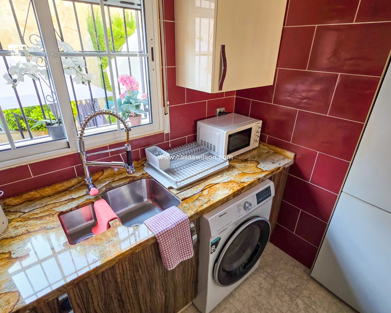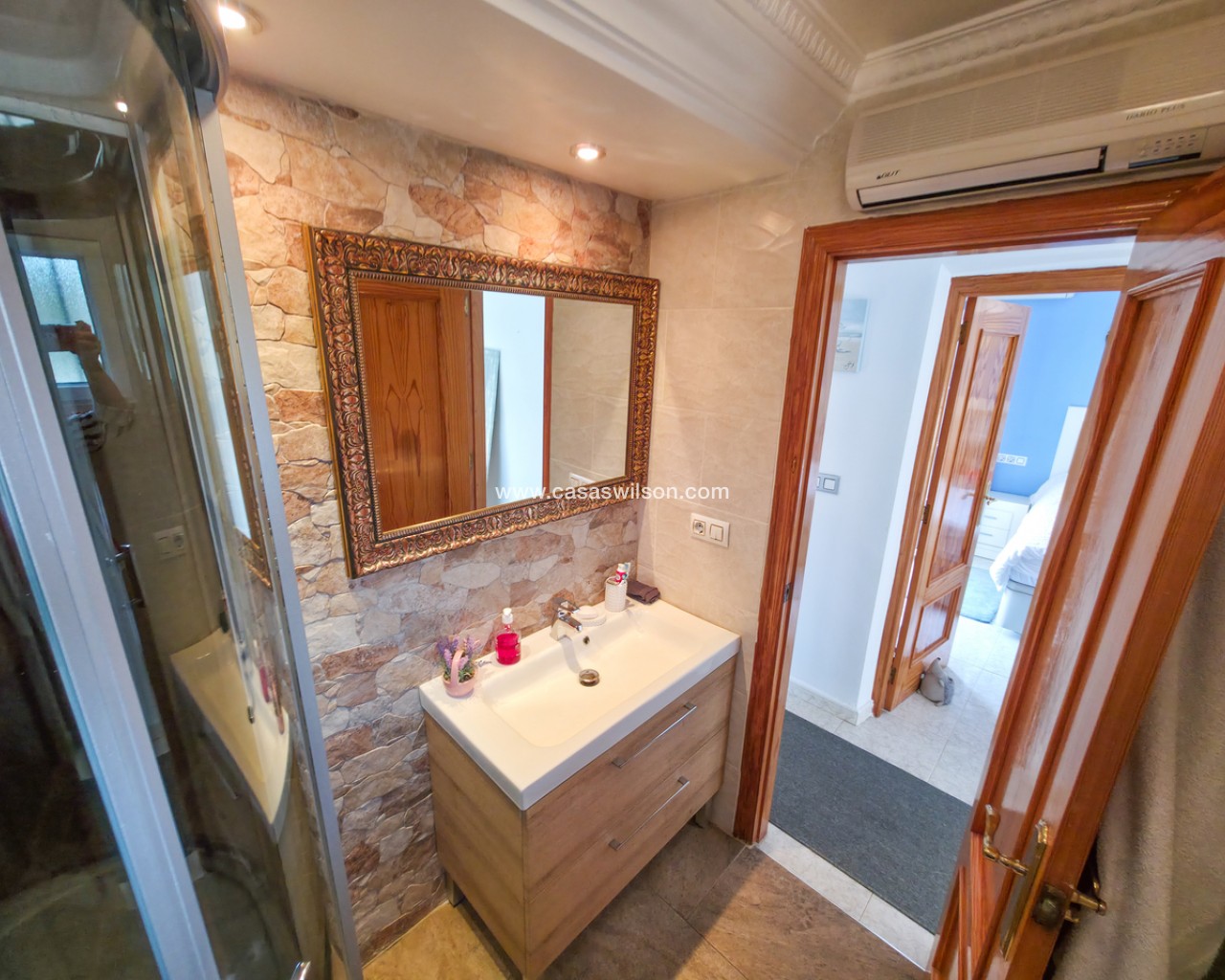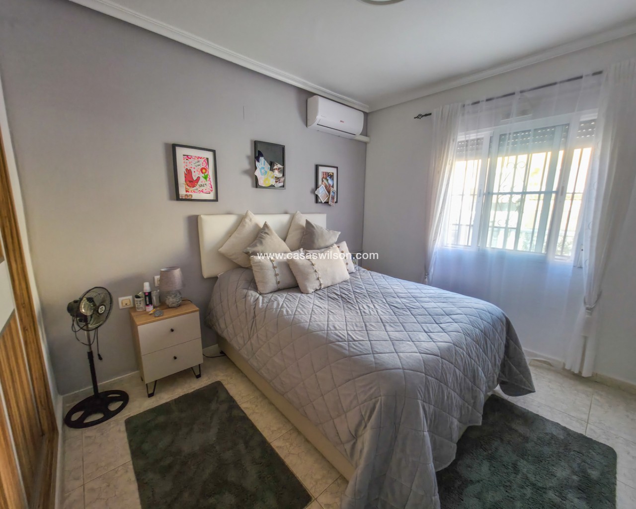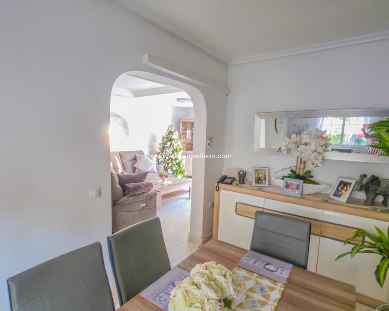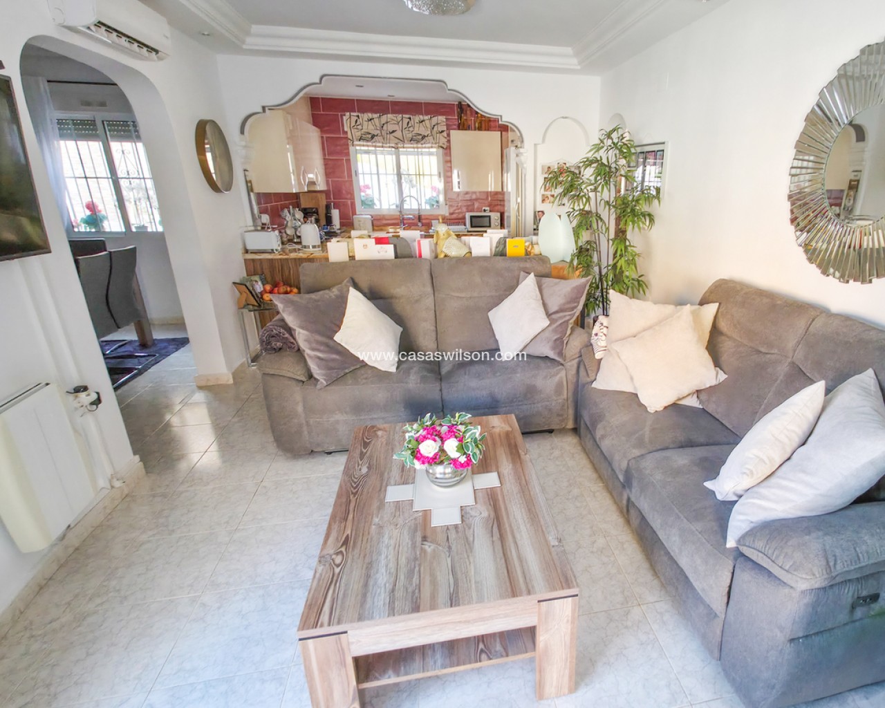 We are delighted to introduce you to this stunning detached villa located in El Galan, on the outskirts of Villamartin. This 3-bedroom, 2-bathroom villa is offered in exceptional condition and has air conditioning fitted throughout the home. There is a large selection of bars and restaurants including a 24-hour supermarket within walking distance from the property and within a 5-minute drive you can find the ever-popular Villamartin Plaza, La Fuente Commercial Centre and a choice of 3 superb Golf Courses.On entering the property into the bright hallway, you are greeted by the luxurious and spacious lounge with access out onto the front terrace, an open plan modern kitchen complete with marble worktops and a large bright dining room. Also on this level is a double bedroom with fitted wardrobes, a modern family bathroom with walk in shower and a storage cupboard. Moving upstairs there is a modern family bathroom and a further 2 double bedrooms with fitted wardrobes, both with separate access to the balcony area and rooftop solarium, where you can sunbathe all day long. The villa is offered part furnished (subject to offer).Outside, there is a huge private patio area with plenty of space for outside dining and entertaining friends and family in the glorious Spanish sun!!! Moving through the archway you arrive in the villa´s very own ‘Secret Garden’ complete with Jacuzzi hot tub, pergola and seating area, laid with artificial grass, providing the perfect ‘chill out’ zone to relax and sunbathe with a glass of wine or two. You have plenty of scope should you want to install your own private pool. There is also a storage room of 6m2 that could make an ideal workshop area, a covered driveway and wrap-around garden to the front of the villa.The current owners have spared no expense in maintaining this stunning home and we anticipate interest to be high so to avoid any disappointment, please contact us for more information, request a video or book your viewing.