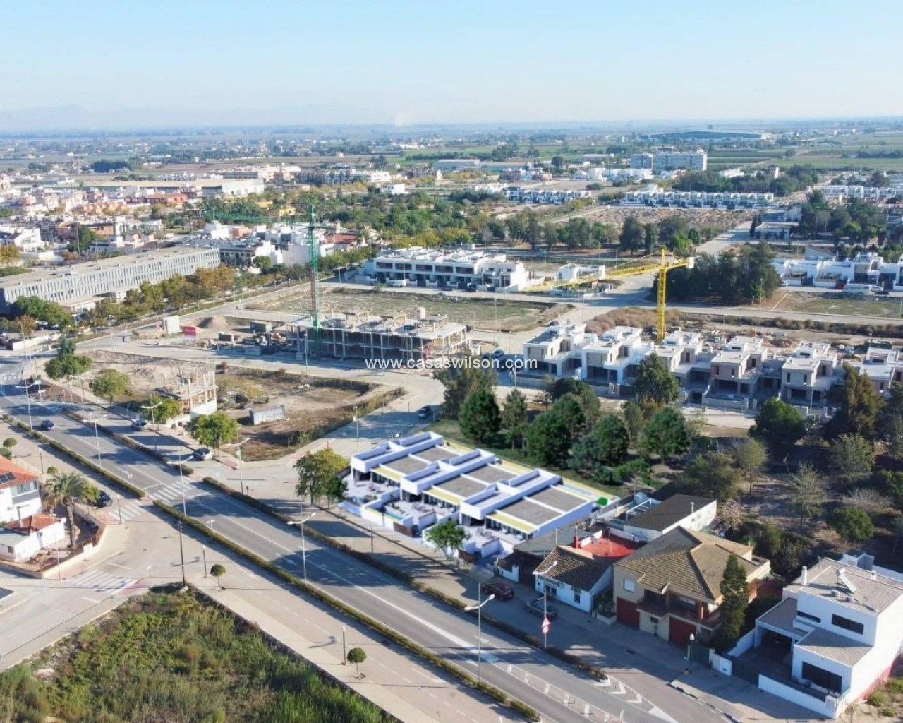New Build Ibiza Style Townhouses in Dolores Costa Blanca Exclusive Residential Villas in a Peaceful Setting This boutique residential development consists of just 6 new build townhouses with elegant Ibiza style architecture, located in the charming town of Dolores in the south of Alicante province. Set in a new expansion area close to the town center, these homes offer a quiet residential environment while remaining within walking distance of local services such as shops, restaurants, supermarkets and medical facilities. Dolores is surrounded by the fertile countryside of Vega Baja, known for its relaxed atmosphere and excellent quality of life. Single Level Design with Spacious Outdoor Areas Each villa is designed on one single level to provide maximum comfort and accessibility. The interior layout includes an open plan kitchen connected to a bright living and dining area, three spacious bedrooms and two modern bathrooms. Outside, each property features a private plot with terrace, landscaped garden, private swimming pool and an on plot parking space (except 2 units). A highlight of these homes is the generous private solarium, offering open views of the surrounding countryside and the perfect space to enjoy the Mediterranean climate all year round. Modern Finishes and Energy Efficient Features These new build villas are constructed with modern materials and quality finishes. Features include electric shutters, a complete interior and exterior lighting package, and bathrooms fitted with furniture, mirrors and shower screens. Hot water is provided through an efficient aerothermal system, enhancing energy efficiency and sustainability. The homes also include pre installation for ducted air conditioning, allowing future owners to customize the climate system to their needs. Well Connected Location Near Beaches and Golf Dolores enjoys an excellent location with easy access to the main coastal and leisure areas of the Costa Blanca. The sandy beaches of Guardamar del Segura and Torrevieja are approximately 12 km away, offering long promenades, natural dunes and a wide range of beach activities. Several well known golf courses such as La Finca, La Marquesa and Vistabella Golf are located within 10 to 15 km. Water parks and leisure attractions can be found nearby in Rojales and Torrevieja. Key Distances and Points of Interest Guardamar and Torrevieja beaches are around 12 km away. Alicante Airport is approximately 30 km or 25 minutes by car, providing regular connections to major European cities. The city of Elche is about 20 km away, while Alicante city center is around 35 km. Nearby marinas and ports in Guardamar and Torrevieja add to the lifestyle appeal. Your Mediterranean Home Awaits These exclusive Ibiza style townhouses in Dolores offer modern living, privacy and an excellent location close to beaches, golf and amenities. Contact us today for more information or to arrange a viewing and secure your new home on the Costa Blanca.