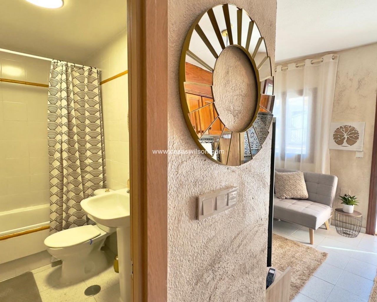 COMPLETELY RENOVATED TWO-STOREY BUNGALOW IN THE CENTRE OF CABO ROIG – LOCATION, LIGHT AND MEDITERRANEAN LIFESTYLE We present a magnificent opportunity to acquire a high bungalow completely renovated this year, located in the heart of Cabo Roig, one of the most exclusive and sought-after areas of the Costa Blanca. A property that stands out for its excellent location, its recent comprehensive renovation and its south-facing orientation, making it an ideal choice as a primary residence, second holiday home or high-yield investment. The property is situated in a privileged area, surrounded by all the necessary amenities for everyday life: supermarkets, restaurants, cafés, shops, public transport and leisure areas, all within walking distance, allowing you to enjoy a comfortable and practical lifestyle without the need for a vehicle. At the same time, it is only 800 metres from the beach, a perfect distance to enjoy the sea with a pleasant walk, while maintaining the tranquillity of an established residential area. This raised bungalow has been recently refurbished, incorporating a modern, contemporary and functional style, ready to move into without the need for any additional investment. The materials and finishes chosen provide a feeling of comfort, brightness and quality, designed to meet current needs for both personal use and rental. The property has a spacious and well-lit bedroom, designed to offer a comfortable and cosy space for rest. Its layout makes the most of every square metre, creating a balanced and functional environment. The space is ideal for both a couple and a single person looking for quality of life near the sea. One of the great attractions of this property is its private terrace, a perfect outdoor space to enjoy the Mediterranean climate all year round. Thanks to its south-facing orientation, the property receives abundant natural light throughout the day, creating warm, bright and pleasant environments. The terrace is an ideal place to have breakfast in the sun, relax, read or enjoy evenings outdoors, adding significant value to the property as a whole. As it is a raised bungalow, the property offers a greater sense of privacy and tranquillity, as well as better ventilation and light. This type of property is particularly sought after for its comfort, ease of maintenance and appeal for both personal use and the rental market. The south-facing orientation not only guarantees brightness, but also better energy efficiency, allowing you to enjoy a pleasant temperature for much of the year. This aspect is particularly valued by both permanent residents and those looking for a second home for getaways or long stays. The location in the centre of Cabo Roig adds exceptional value to the property. Cabo Roig is known for its well-kept environment, its proximity to some of the best beaches in the area and its wide range of services and leisure activities. All this makes this property an excellent investment option, with high demand for both holiday rentals and long-term rentals. In short, this is a high-ceilinged bungalow renovated this year, with a terrace, south-facing, one bedroom and an unbeatable location in the centre of Cabo Roig, just 800 metres from the beach. A property that combines comfort, style, natural light and proximity to the sea, designed to enjoy the authentic Mediterranean lifestyle. Do not miss this unique opportunity. Contact us for more information or to arrange a viewing and discover the full potential of this exclusive bungalow in Cabo Roig.
