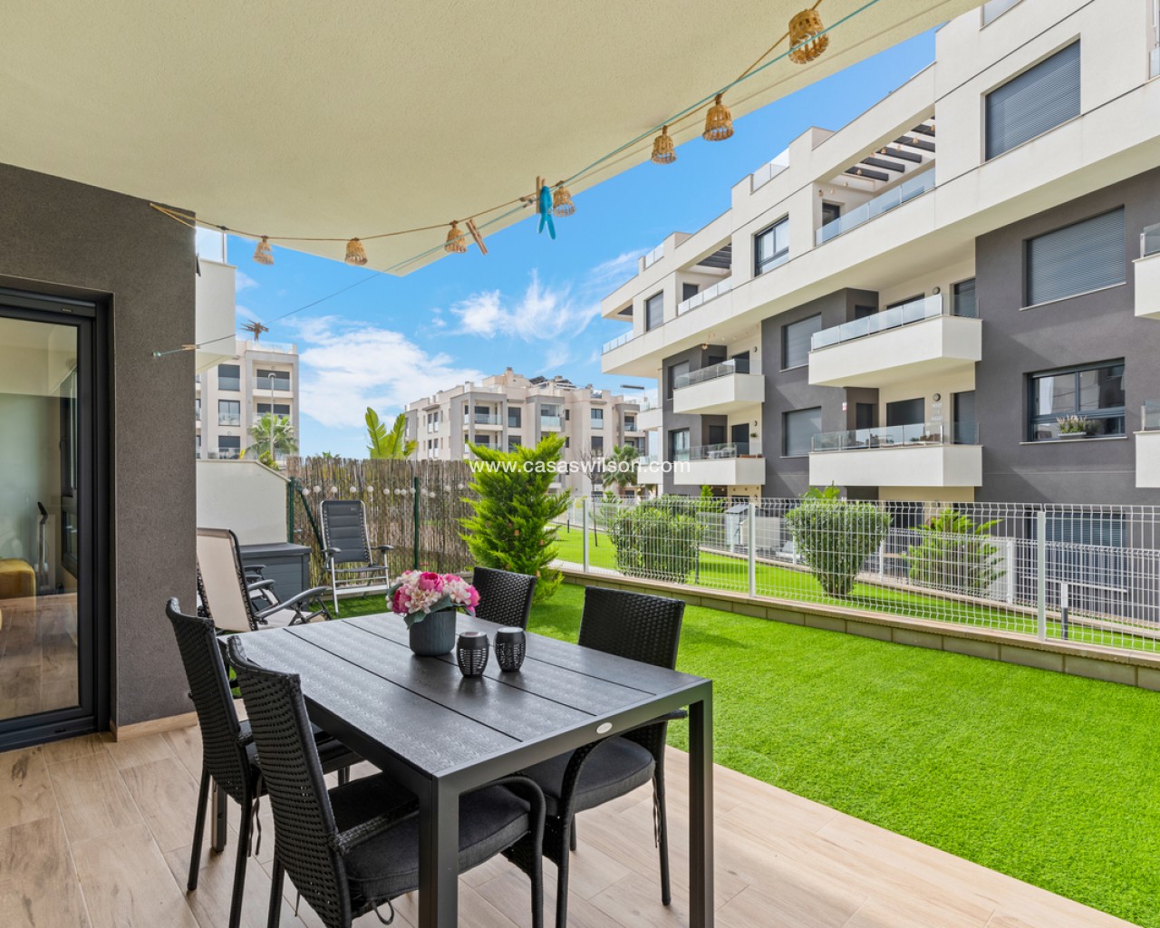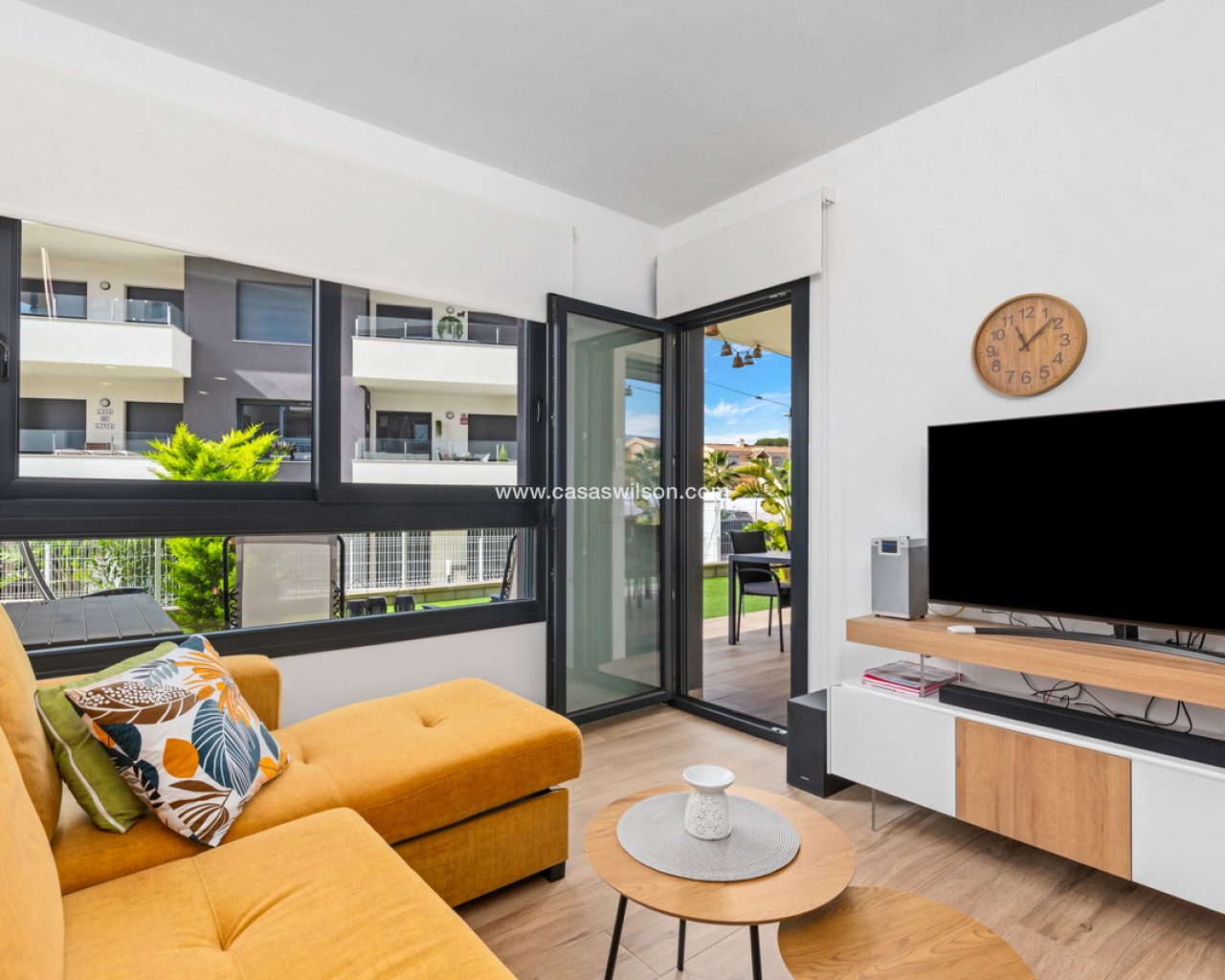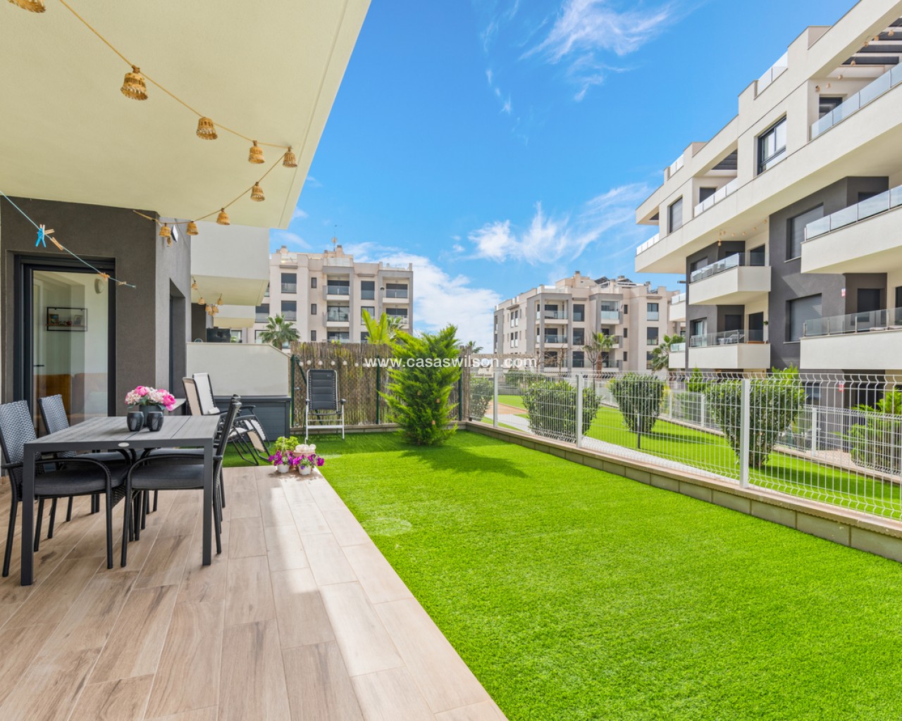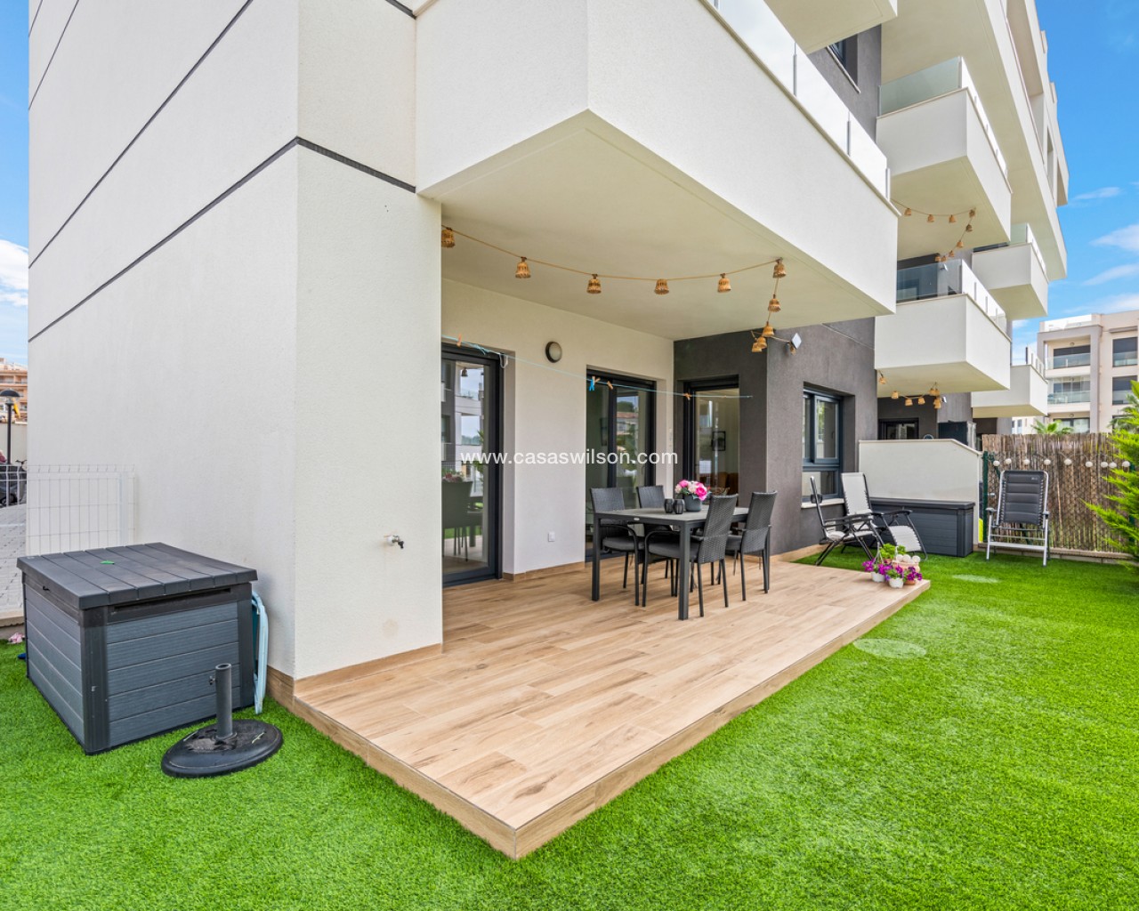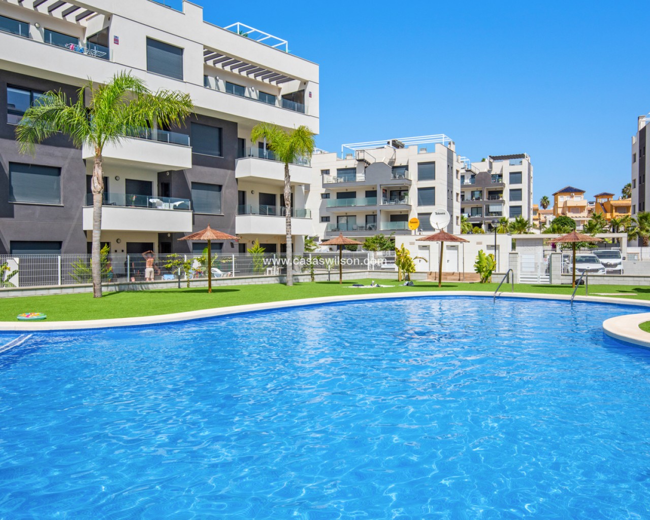 This modern ground floor corner apartment with 2 bedrooms, 2 bathrooms is situated in Villamartin, Alicante set in a great location only a few minutes walk to all local amenities (restaurants, bars and shops). The fantastic La Zenia beach and La Zenia Boulevard shopping centre is also a 10 minute drive. Villamartin Plaza and Villamartin Golf are less than 4 minutes away.The property is comprised of a spacious lounge area, an open plan kitchen/dining area, electric shutters, air conditioning (hot/cold) throughout the property, a main bedroom with fitted wardrobes and en-suite bathroom, a further guest bedroom with fitted wardrobes and a second bathroom with walk-in shower. Patio doors lead out onto a private terrace (with small utility room) to enjoy the sun all day.Private allocated parking space is also included. There is a lovely communal green area with communal swimming pool, petanque zone, children's playground and a beautiful communal park.These apartments are fantastic value for money and the location is great with the bars, restaurants and amenities only a short walk away.The Villamartin area is very popular with tourists and most of the population consists of Western European expatriate communities who have settled there in the last 10 years, virtually transforming the village into a modern-looking town. There are also other golf courses nearby and numerous white sandy beaches.