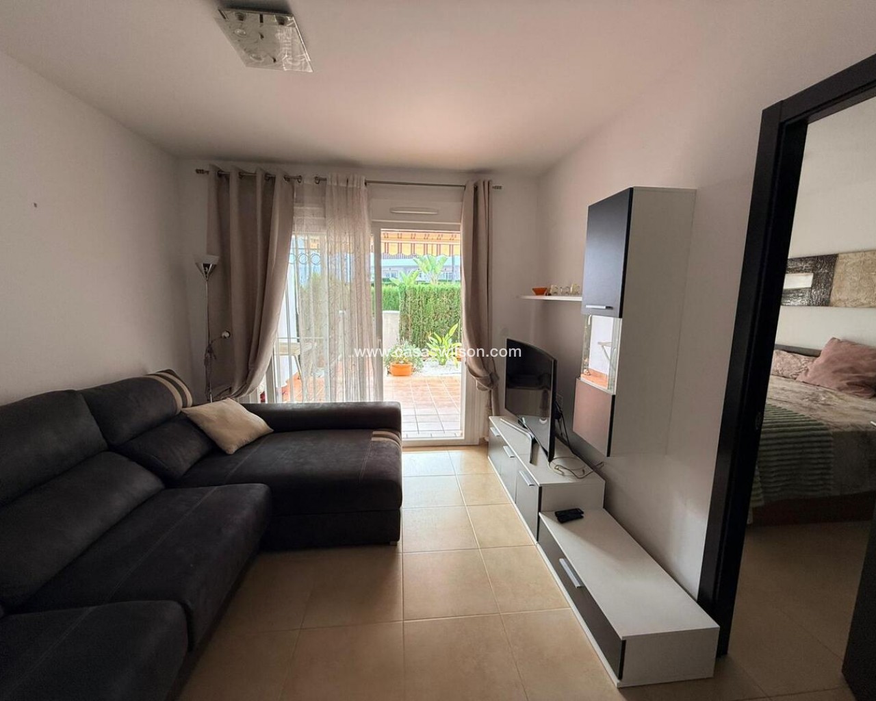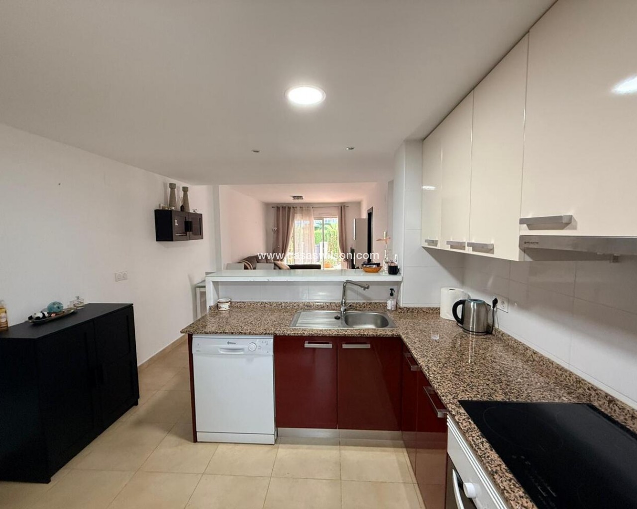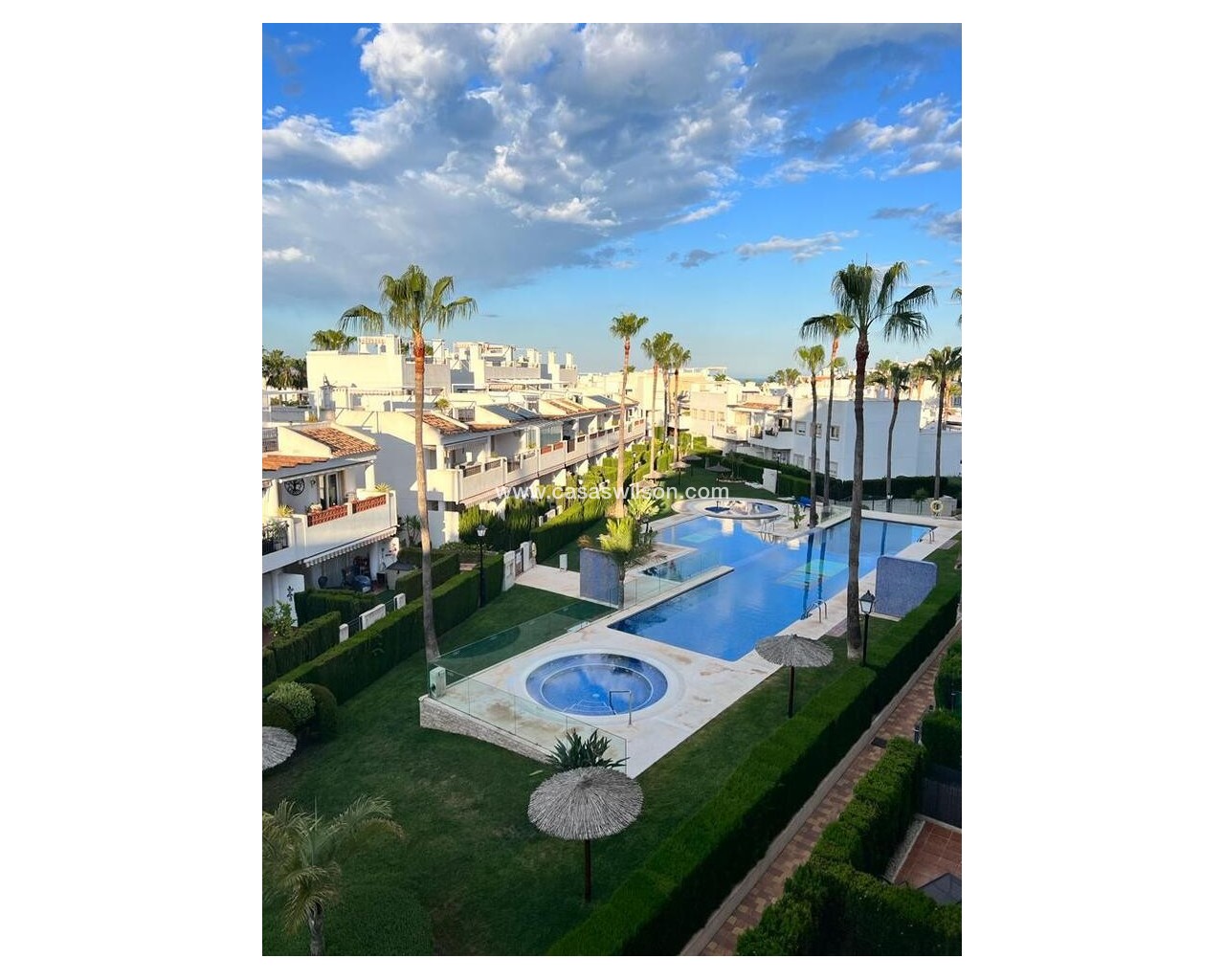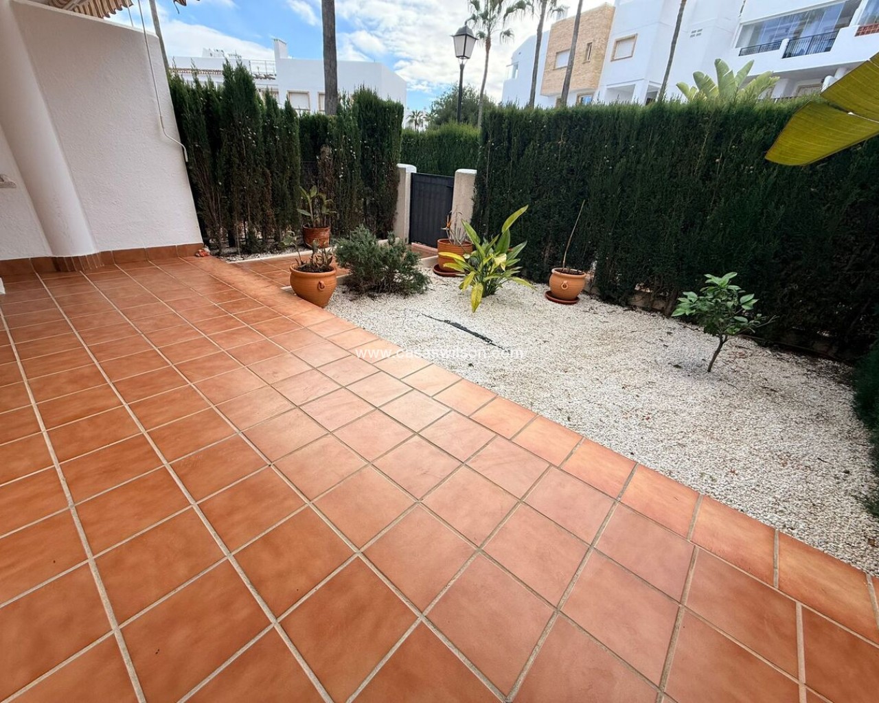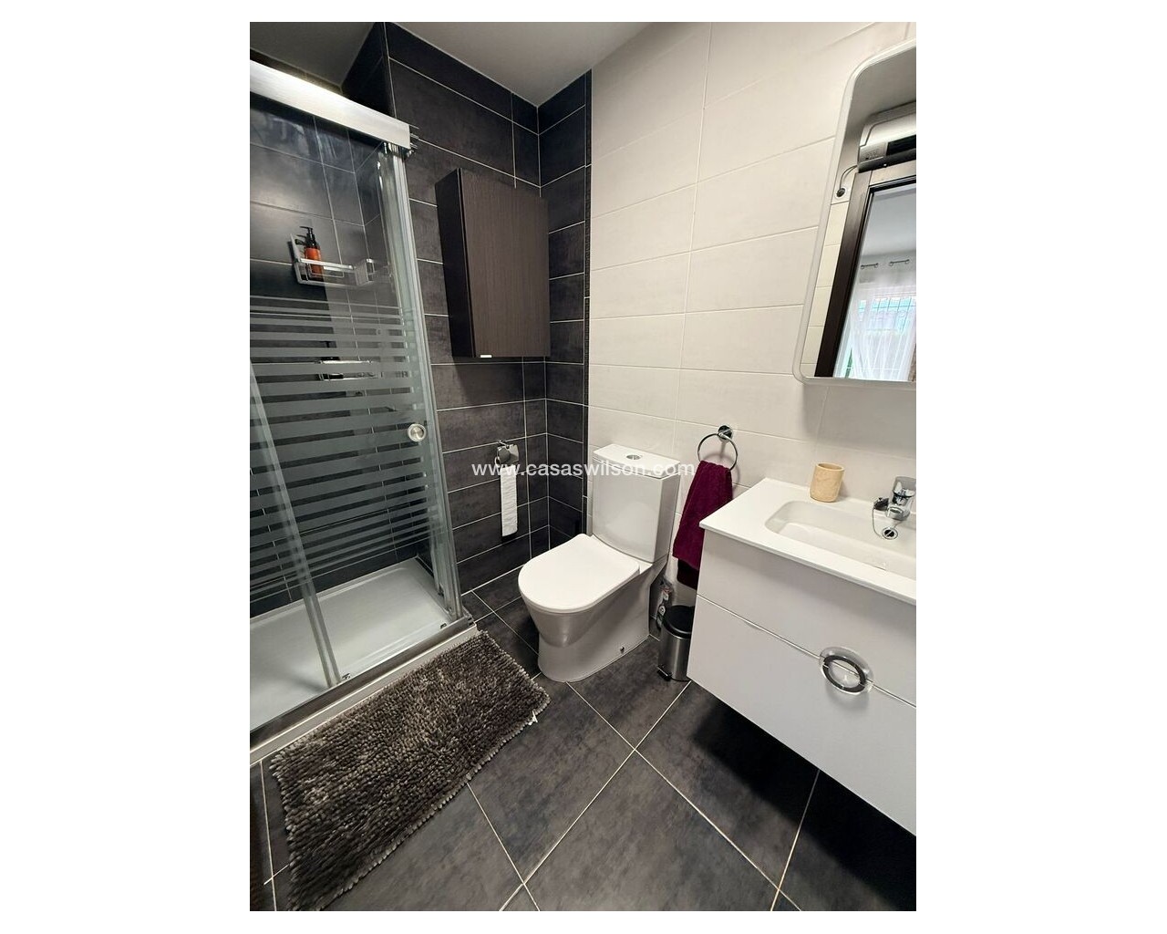 This ground-floor apartment comprises three bedrooms, two bathrooms, and a living room with an open-plan kitchen. The living room opens onto a terrace with a garden. A utility room is also located off the kitchen. The property is sold furnished, with appliances and ducted air conditioning. A designated above-ground parking space is included in the complex. The complex offers a large swimming pool, a jacuzzi, and green areas. The location is close to the La Fuente and Villamartin Plaza shopping centers, several supermarkets, bars, and restaurants.