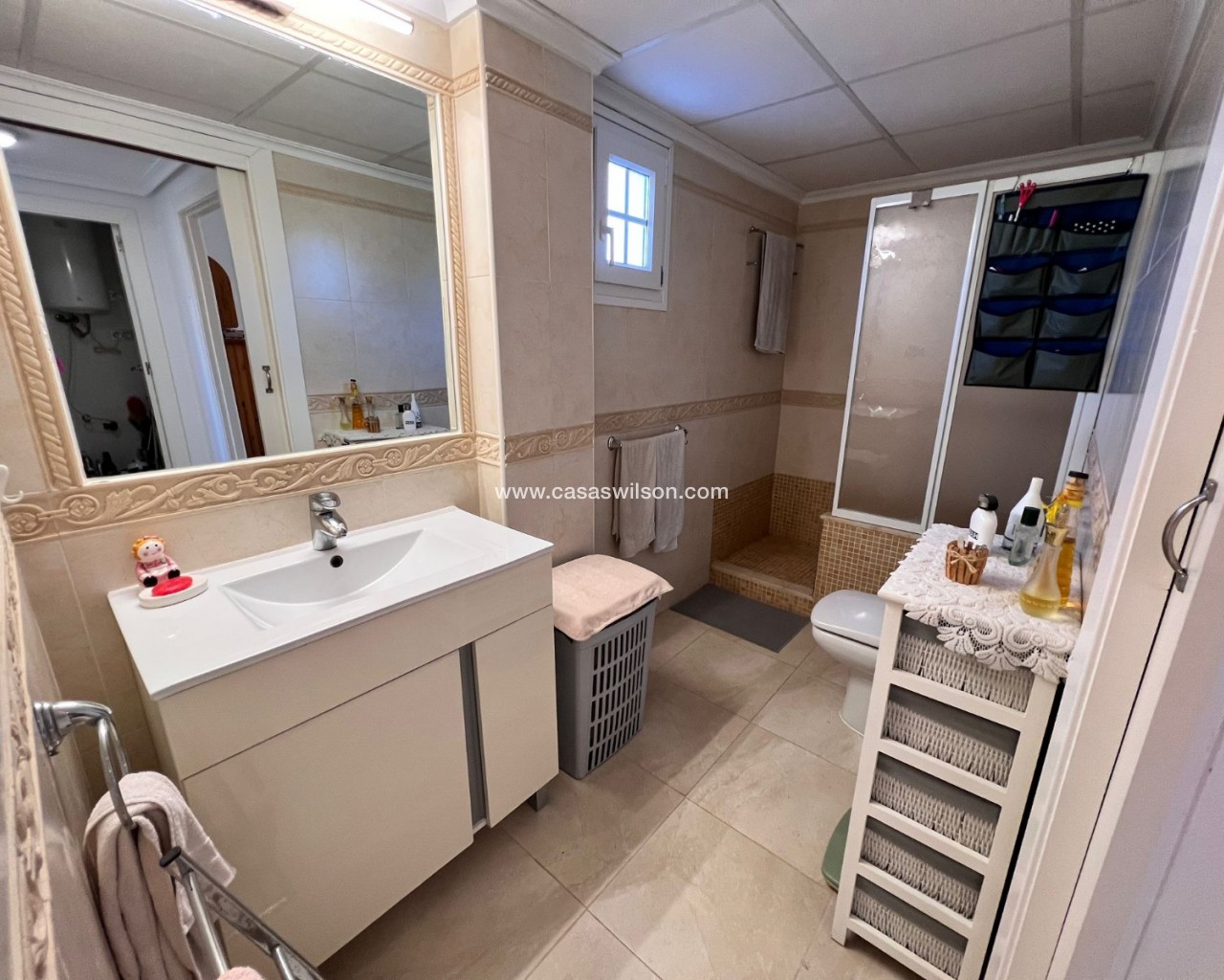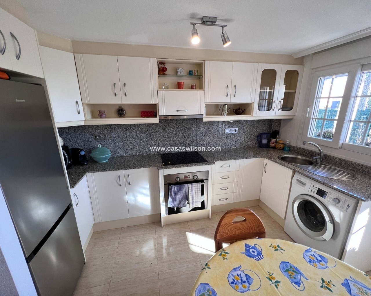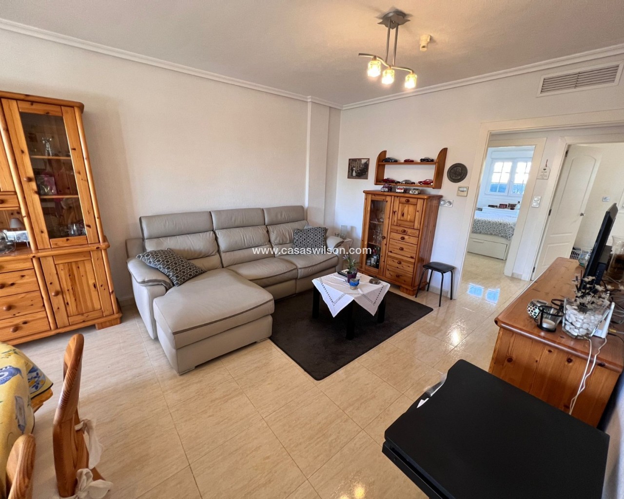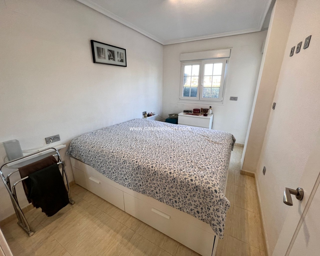 We are pleased to present this spacious two-bedroom corner apartment, situated on a large private plot within the secure, small-scale El Raso complex. With only 12 apartments, this gated complex offers a pleasant combination of tranquility, privacy, and comfort. The south-facing corner apartment boasts an exceptional amount of outdoor space, setting it apart from similar apartments in the area. The complex is accessible via an electric gate and includes a secure parking garage with a private parking space directly adjacent to the apartment. At the front of the building is a well-maintained communal swimming pool surrounded by mature gardens, as well as a convenient communal storage room. The apartment is particularly notable for its generous outdoor spaces. At the front is a covered terrace with two storage rooms, which extends into a spacious side and back garden. This outdoor space offers ample opportunities for relaxing, entertaining, or enjoying the pleasant climate year-round. Inside, the apartment features a bright, open-plan living, dining, and kitchen area with French doors, electric shutters, and air conditioning. Two well-sized bedrooms, both with fitted wardrobes, are accessible from the hallway. The master bedroom has direct access to the rear terrace. There is also a spacious bathroom with a shower and a practical utility room. This apartment combines the comfort of a low-maintenance home with the space and privacy typically expected of a villa. Situated in a quiet and popular location, a short distance from the coast, various amenities, and a golf course, this presents an attractive and unique living opportunity.