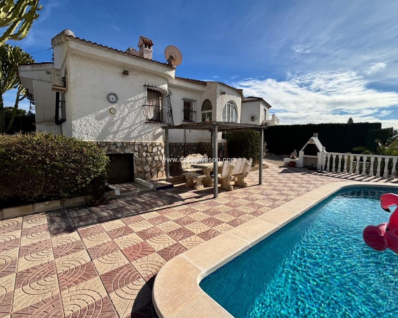 Spacious 4-Bedroom Detached Villa Near Town & Norwegian School This Superb 4-bedroom, 3-bathroom detached villa is set on one level and ideally located within a short walk to town and close to the Norwegian School. The property offers comfortable, easy living with a private swimming pool, air conditioning, and is sold furnished, making it ready to move into. Designed for convenience and privacy, the villa features generous indoor and outdoor living spaces, perfect for families or those seeking a relaxed Mediterranean lifestyle. Its prime location, combined with all the usual comforts and excellent accessibility, makes this an exceptional opportunity.