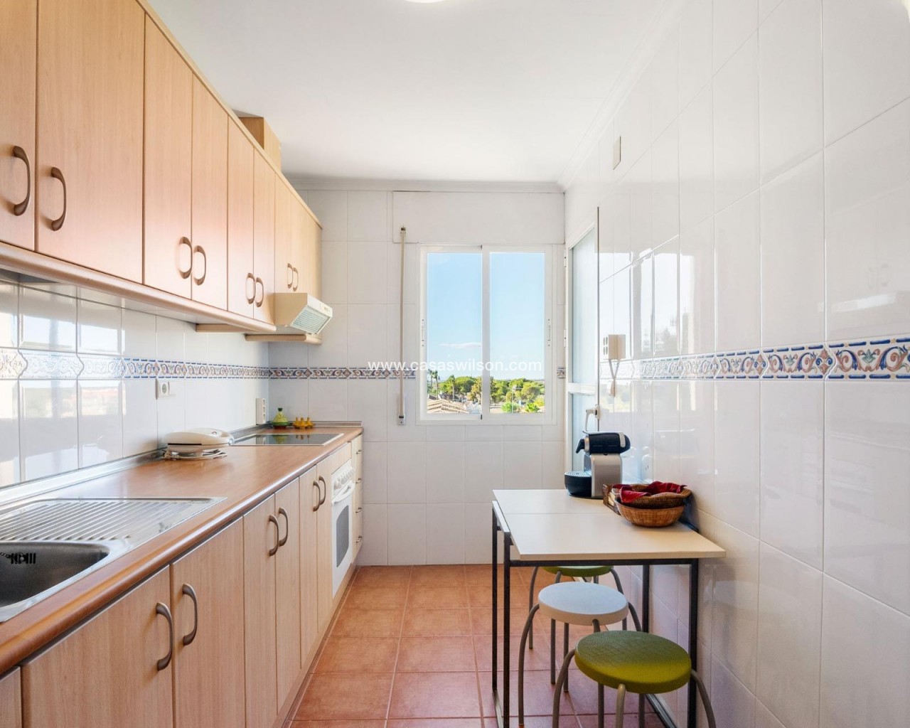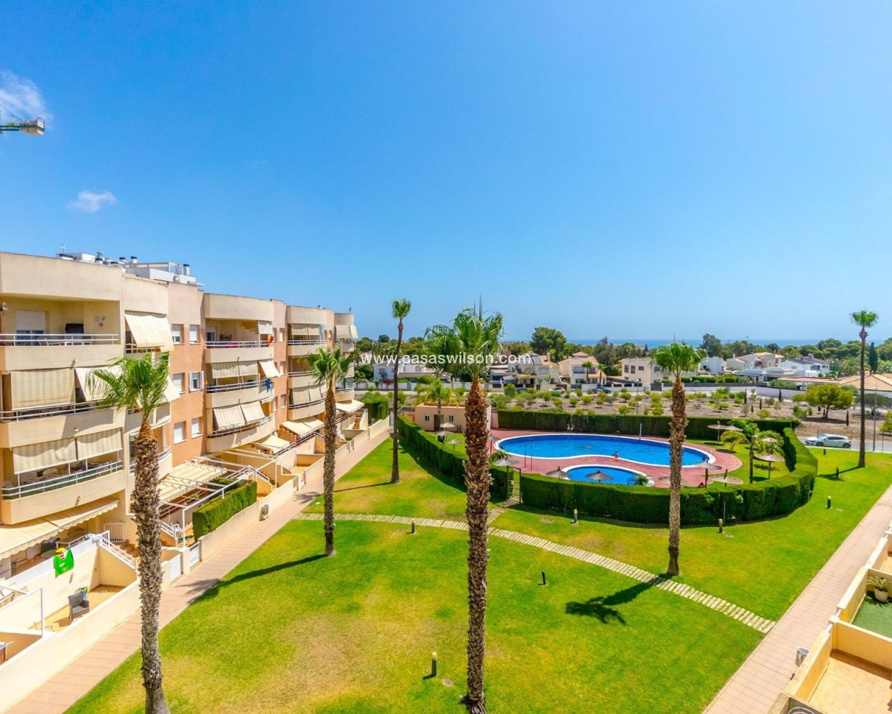Spacious apartment located in Dehesa de Campoamor, one of the most beautiful areas on the Orihuela Costa. It is just 800 meters from the magnificent sandy beaches. This beautiful apartment has a constructed area of 107 m2 and consists of 3 bedrooms and 2 bathrooms. It features a fully equipped separate kitchen with a laundry room and a large northeast-facing glazed terrace overlooking the communal pool and common areas. Very bright and airy, the home offers all the comfort and tranquility. Communal areas include a swimming pool and green areas. The building has closed-circuit video surveillance. A supermarket, bus stop, sports center, restaurants, and bars are within a 5-10 minute walk. A perfect location for a summer vacation or year-round residence. OPTIONAL: Parking space (16 m2) with a storage room (7.6 m2) in the underground garage for €18,000.