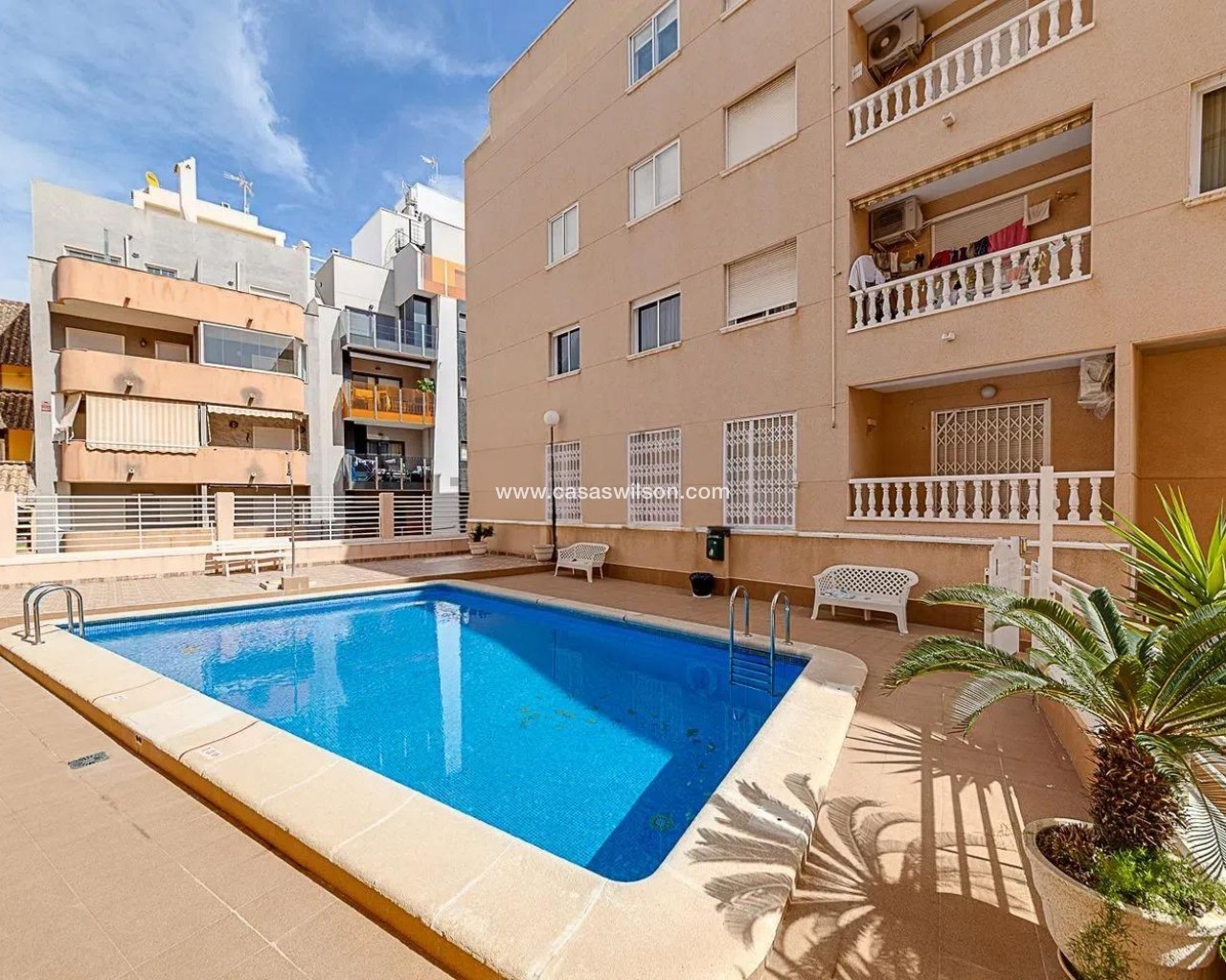 Unique opportunity!~Live the dream in this home in Torrevieja, a place surrounded by amenities where everything is just minutes away.~~This incredible home has 2 spacious bedrooms and a bathroom, designed for your comfort.~In addition, you'll enjoy an open-plan kitchen with a window and a beautiful terrace.~~The home also has communal areas and a beautiful communal pool where you can sunbathe in complete peace, all just a step away from Playa del Cura.~~Don't miss this opportunity! Contact us to discover how this exciting apartment could become your new home.~~Thinking about selling your property and acquiring this dream apartment? Our agency offers you a free valuation, with more than 20 years of experience in the sector and the most up-to-date sales data. We will help you achieve a quick and advantageous sale so you can start enjoying the life you've always wanted by the sea.~~Contact us now and take the first step toward your new life on the Costa Blanca!