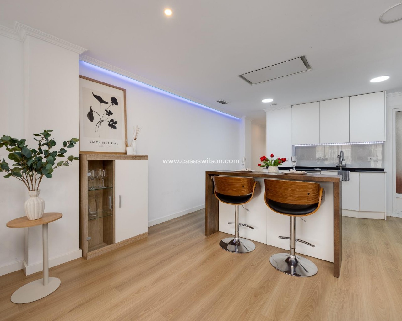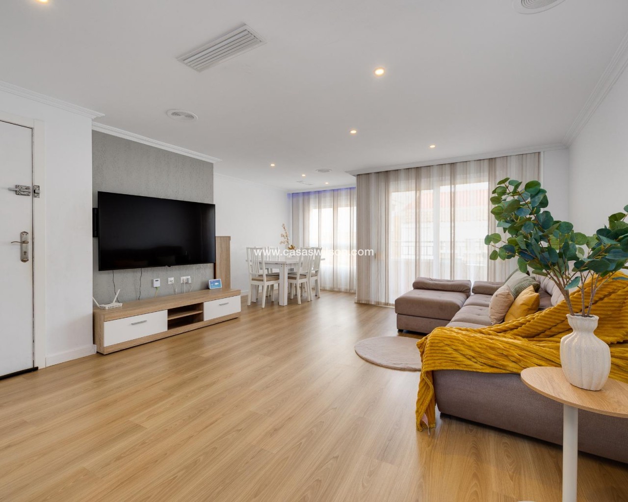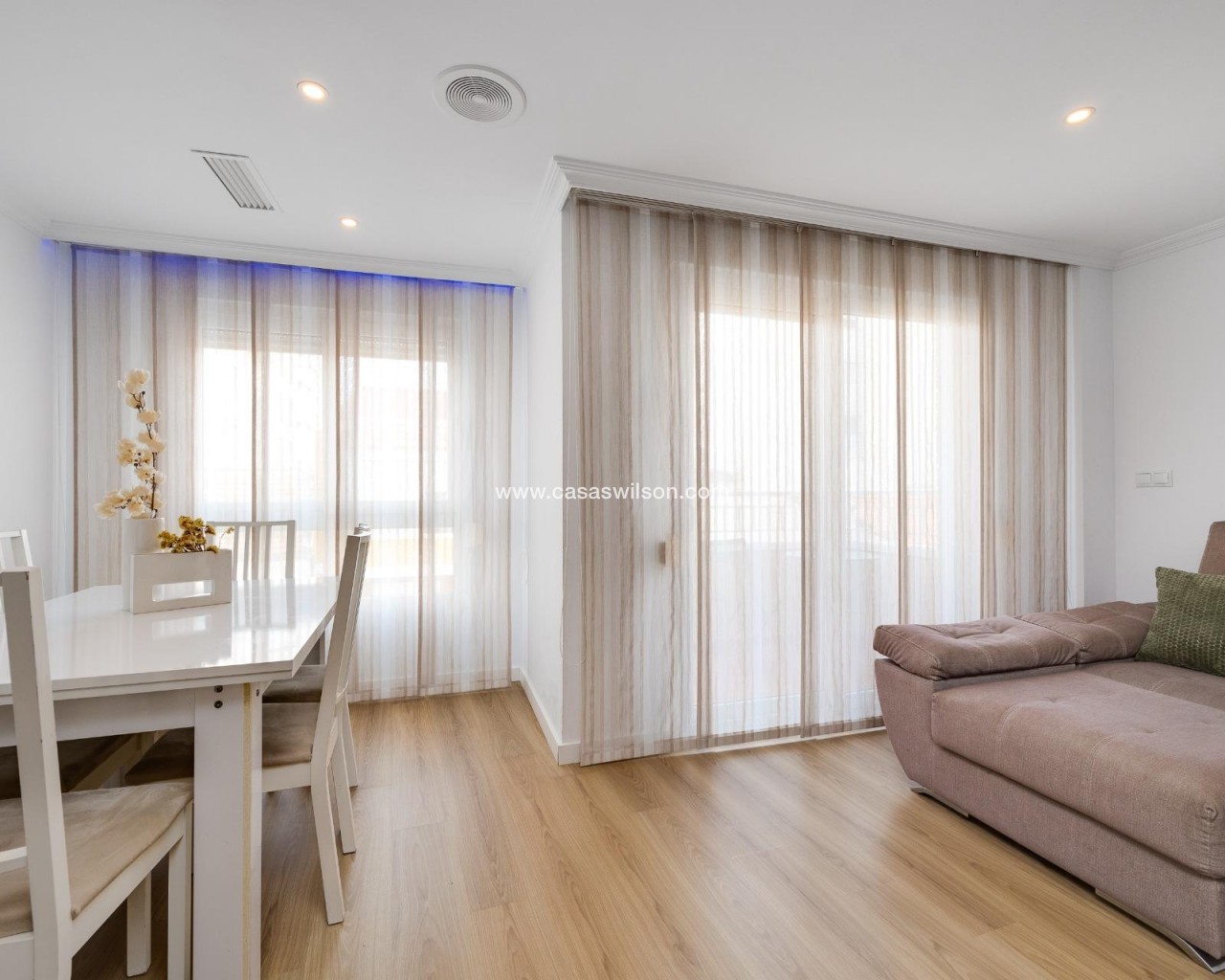 Discover this magnificent and spacious apartment, located right in the heart of Torrevieja, with all amenities at street level and just 700 meters from the sea and the iconic promenade. A privileged location to enjoy the Mediterranean lifestyle without sacrificing comfort. The property has been fully renovated using high-quality materials and is situated on the first floor of a building with an elevator. It offers a modern, functional, and elegant layout designed for maximum comfort. Upon entering, you are welcomed by a spacious and bright living-dining area with access to a charming terrace, perfect for enjoying a fresh and pleasant atmosphere. The fully equipped open-plan kitchen with breakfast bar connects to an interior patio with a laundry area, adding everyday practicality. The apartment features 3 spacious double bedrooms and 2 full bathrooms. The master bedroom, with en-suite bathroom, stands out for its walk-in wardrobe, private bathroom, and access to a rear terrace with south-facing orientation, flooding the home with natural light. This terrace is ideal for relaxing and enjoying the Mediterranean climate and also includes a storage area providing valuable extra space. 🔑 A rare added value: the price includes two parking spaces in the same building, a true luxury in such a central location. An exclusive property, ready to move into. Don’t miss this opportunity!