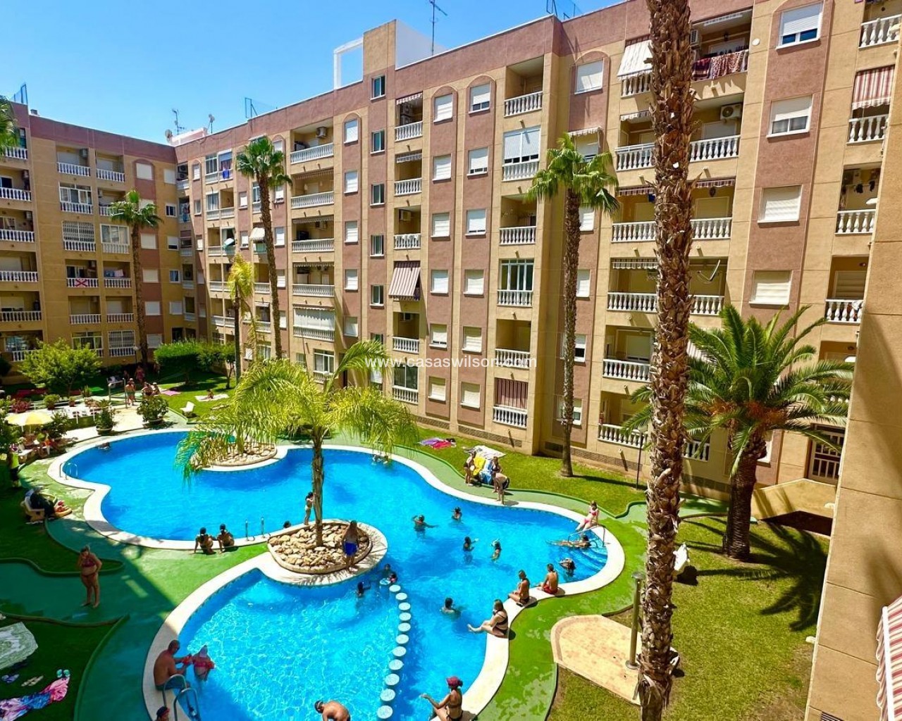 We present this cozy second-floor apartment, located in a strategic area of Torrevieja, next to the well-known Parque de las Naciones and very close to the new Inmaculada school, making it an ideal option for families and those looking for a well-connected home surrounded by amenities. The property is located within a quiet residential community that offers a communal pool, perfect for cooling off and relaxing during the summer months. From the apartment's balcony, you can enjoy pleasant views of the pool area, which adds extra value to the home's outdoor space. The apartment has been recently renovated, so it is in excellent condition, ready to move into without the need for any improvements. The finishes, layout, and integration of the spaces have been carefully considered, seeking to offer functionality and comfort for everyday living. Inside, the home features two bedrooms with plenty of natural light, a full bathroom, and a modern kitchen integrated into a spacious living-dining room, creating an open, comfortable, and well-designed space, ideal for both daily use and vacation stays. Thanks to its location, its renovated condition, and the community amenities, this apartment is an excellent opportunity for both year-round residence and long-term rental investment. If you're looking for a ready-to-live-in property in Torrevieja, well-located and with a pool, this could be your next home.