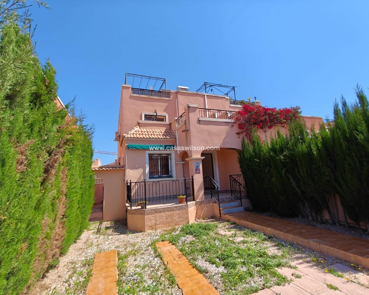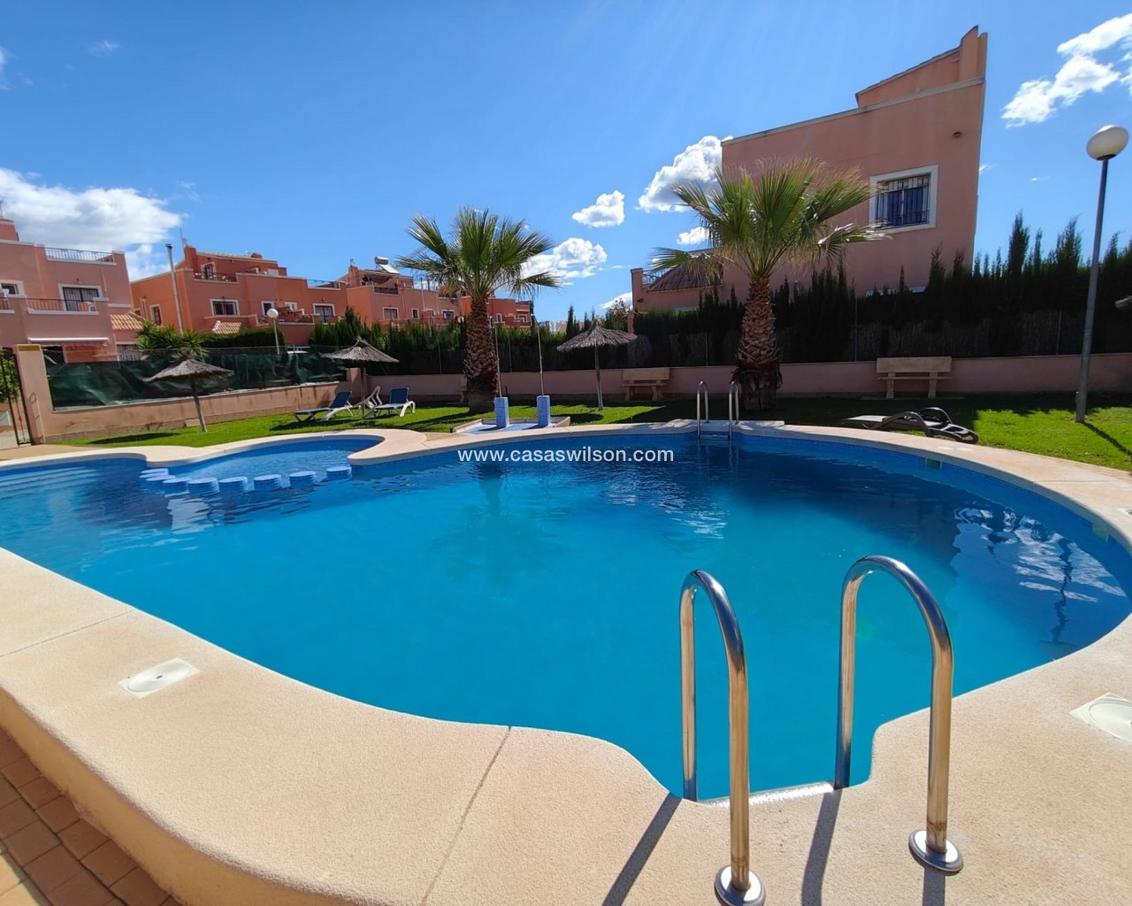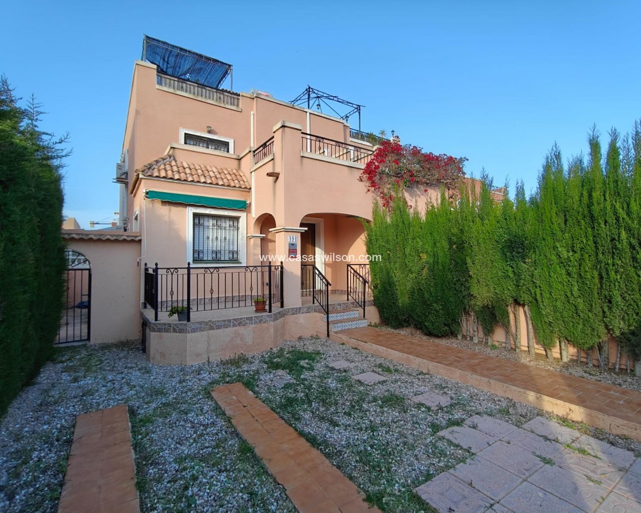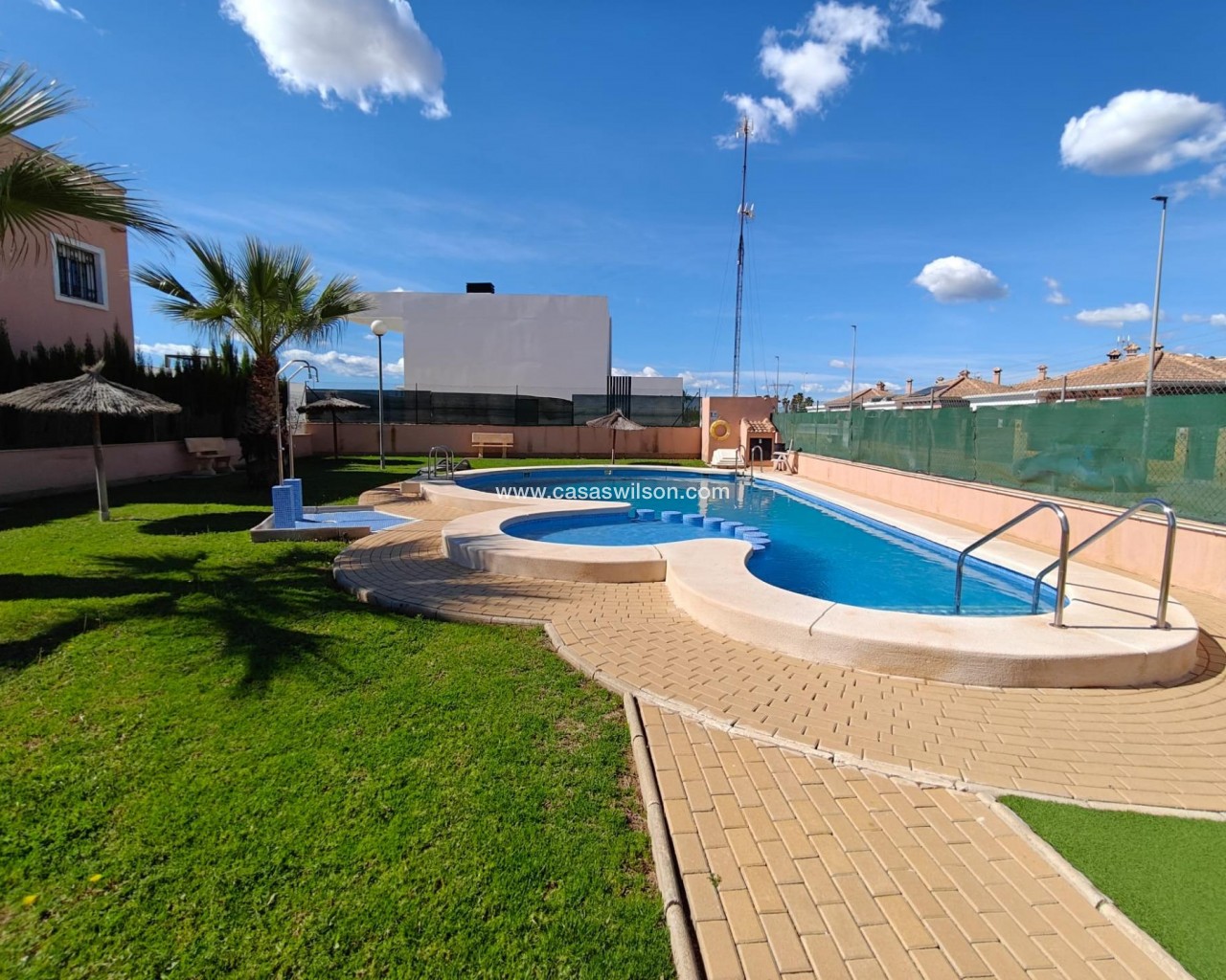 🏡 Semi-detached house in Los Montesinos – Space, light, and comfort Located in the charming town of Los Montesinos, this property offers everything you need for a peaceful stay in a well-maintained and pleasant setting. 🌿 Charming residential area The house is located in a well-maintained residential area, ideal for families or as a holiday home. It features a communal pool 🏊♀️, perfect for enjoying the great weather year-round. 📐 Perfect layout The plot measures 120 m², with a built area of 83 m². The space is perfectly utilized to offer spaciousness and functionality. 🚗 Large garden with private garage One of its greatest attractions is its spacious garden, with the possibility of private parking within the plot. An extra convenience that's hard to find. 🛋️ Comfortable and bright interior Upon entering, you're welcomed by a spacious living room, ideal for everyday life or entertaining guests. The kitchen is separate, adding privacy and better organization of the space. 🛏️ 3 double bedrooms + 2 bathrooms The home has three double bedrooms, all good-sized and with natural light, and two full bathrooms, ideal for comfortable family living. ☀️ Private terrace and solarium On the upper floor, the master bedroom has its own terrace and solarium. A private space to enjoy the sun, relax, or set up your chill-out corner. 🔑 A perfect opportunity This house is ideal as a permanent residence, vacation home, or investment. Space, comfort, and a great location at a competitive price.