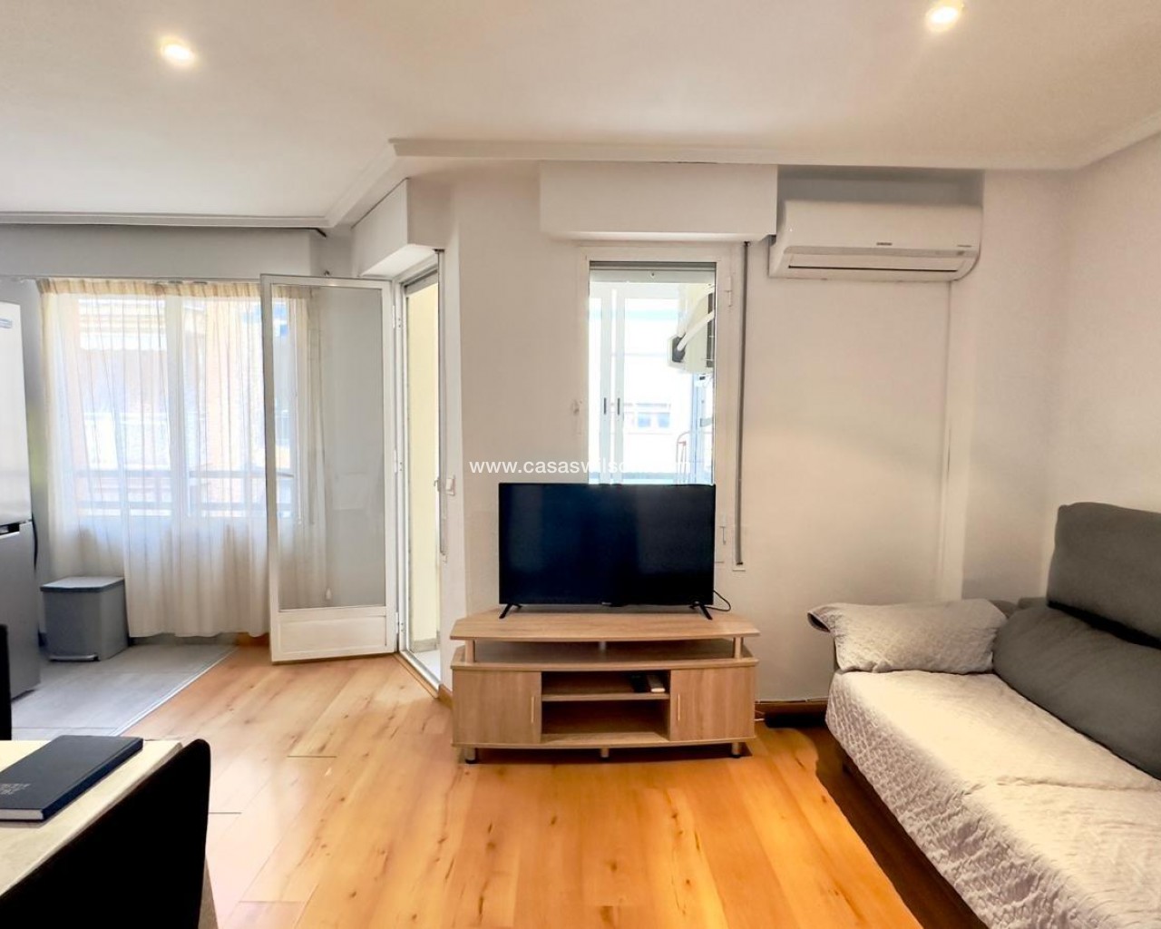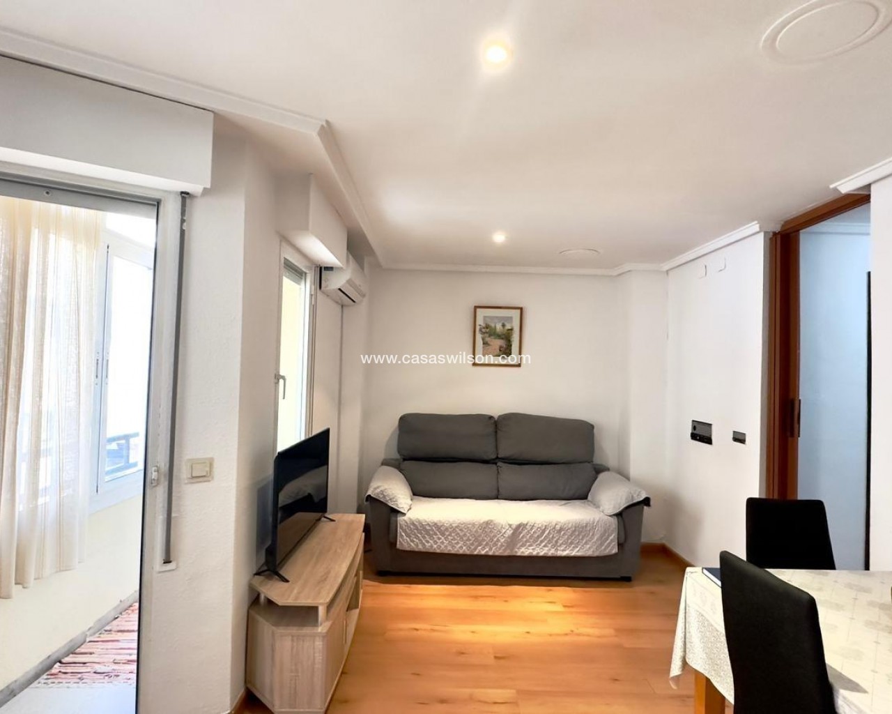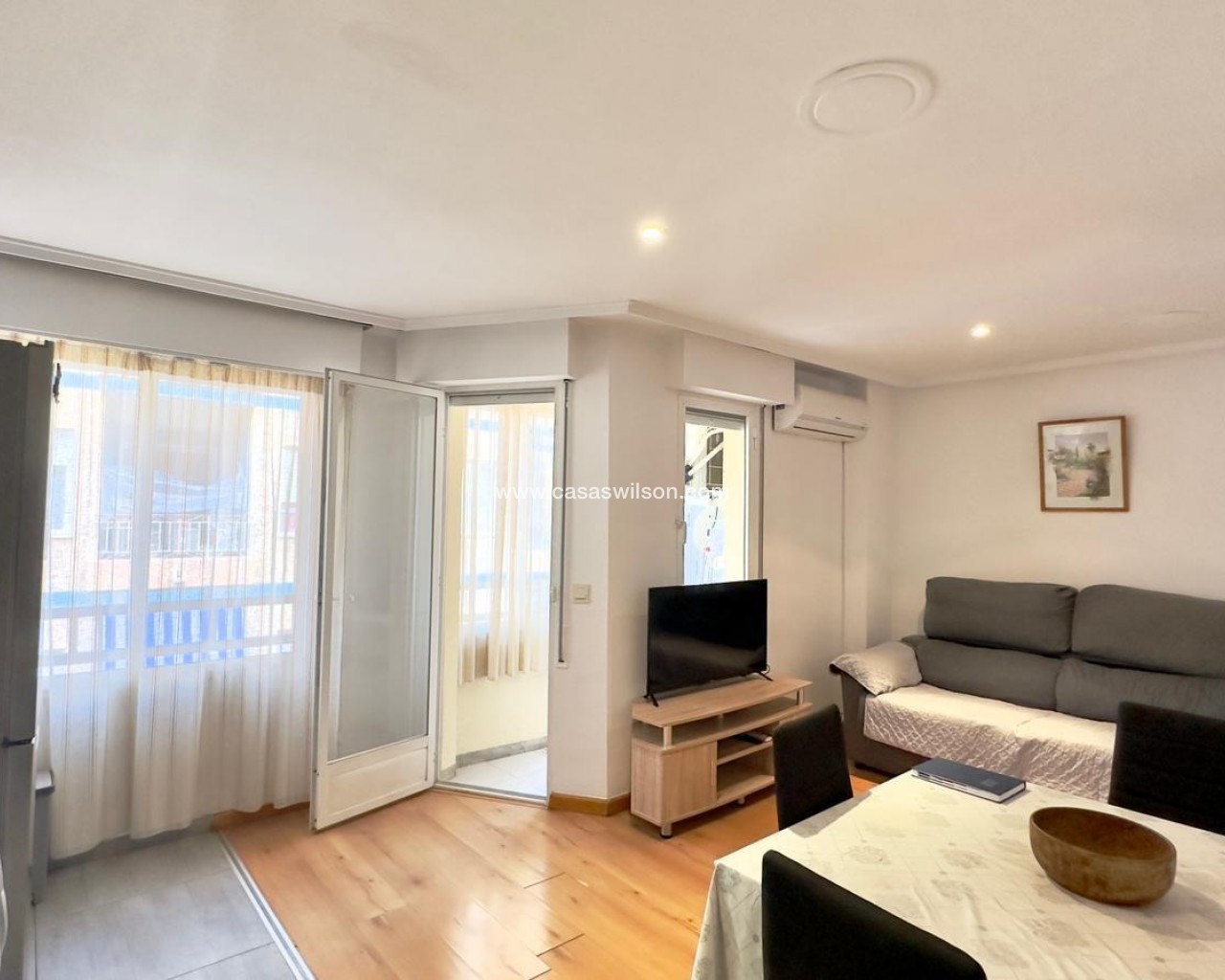 Furnished apartment in the heart of Torrevieja, on Pedro Lorca Street, designed for those who want everything at their fingertips: the beach just minutes away, the promenade, restaurants, shops, and the vibrant urban life that never truly stops. It's the kind of home where you can feel the energy of the coastal city without sacrificing the comfort of a welcoming, bright, and practical space for everyday life. Living here means knowing that you can go for a stroll, have a coffee on a nearby terrace, or spontaneously enjoy dinner out at any time without having to travel far. The open-plan kitchen with a balcony defines the apartment's social and relaxed character. It's easy to imagine mornings starting with the aroma of freshly brewed coffee, some toast, and the balcony door slightly ajar to let in the light and breeze from the city center. While preparing breakfast or lunch, you can look out at the street, watch the neighborhood come alive, listen to the distant conversations of passersby, or simply enjoy that unique blend of city sounds by the sea. The integration of the kitchen and living area creates a seamless flow: the cook isn't isolated, but remains engaged in the conversation, the show playing in the background, or the ambiance of the living room. The balcony becomes a small, private viewpoint overlooking the heart of Torrevieja. It's that cozy corner where you want to step out for a moment with a cup of coffee to get some fresh air, make a phone call, check your phone, or simply watch the street life unfold. In the afternoon, as the sun sets, it transforms into the perfect space to sit for a few minutes and unwind after a long day, feel the warm air, and sense that the city center is still alive. At night, with the city lights on, the balcony takes on a special charm: you hear laughter, footsteps, the occasional passing car, and you feel part of the urban pulse, even without leaving home. The living area, connected to the open-plan kitchen and the balcony, serves as the social hub of the home. Here, everyday moments and special ones abound: afternoons on the sofa watching a movie, study sessions or working from home, get-togethers with friends before heading out for dinner along the promenade, or simply relaxing after a day at the beach. Being furnished makes it easy to imagine the space already furnished: a comfortable sofa, a coffee table, perhaps a bookshelf with books and mementos, and a plant to add life and color. It's an environment that lends itself to both activity and tranquility. The two bedrooms allow the apartment to adapt to different needs. The master bedroom becomes an intimate sanctuary where you can completely disconnect from the hustle and bustle of the city center once you close the door. It's the place you return to at the end of the day to unwind, with pleasant textiles, soft lighting, and personal touches that reflect the person who lives there. The second bedroom offers many possibilities: it can be a children's room, a space for guests visiting Torrevieja for a few days, an office for someone working remotely, or a hobby area for someone who needs their own corner to create, study, or exercise. The bathroom, close to the bedrooms and the living area, is a natural part of the daily routine. It's where you start the morning with a quick shower before heading out, or where you end the night with some hot water and relaxation after a long day. In a centrally located home, having a comfortable and well-situated bathroom makes all the difference between a merely functional house and a home where everyday life is enjoyed more. Pedro Lorca Street is one of those addresses that evokes the authentic life of Torrevieja. From here, you can walk to many key points in the city: the seafront promenade, Playa del Cura or Los Locos beaches, cafes, supermarkets, and pharmacies.