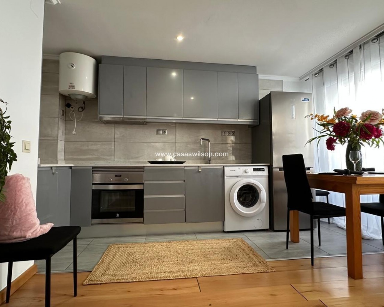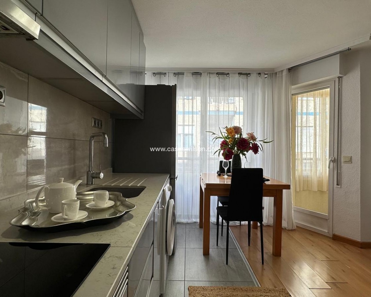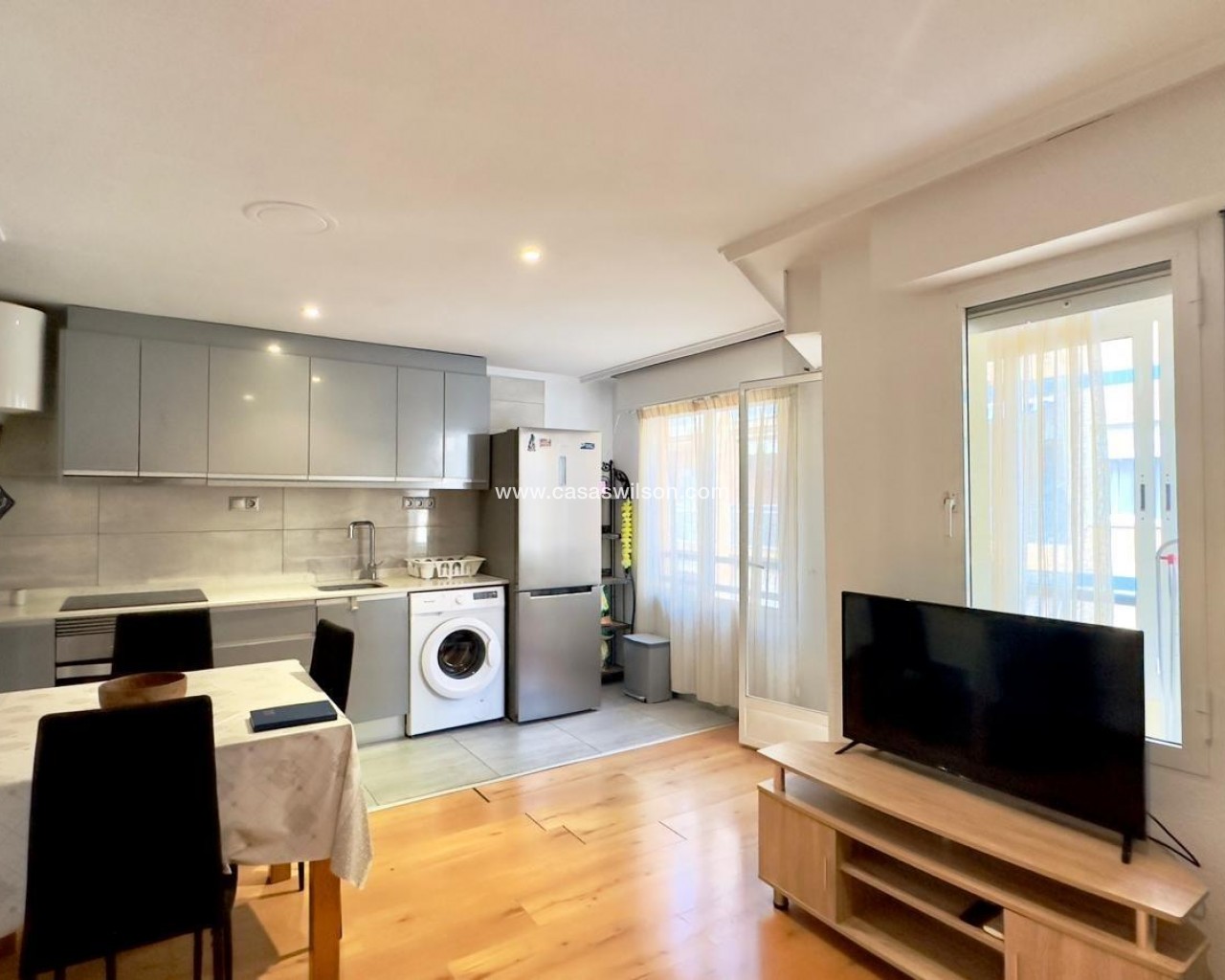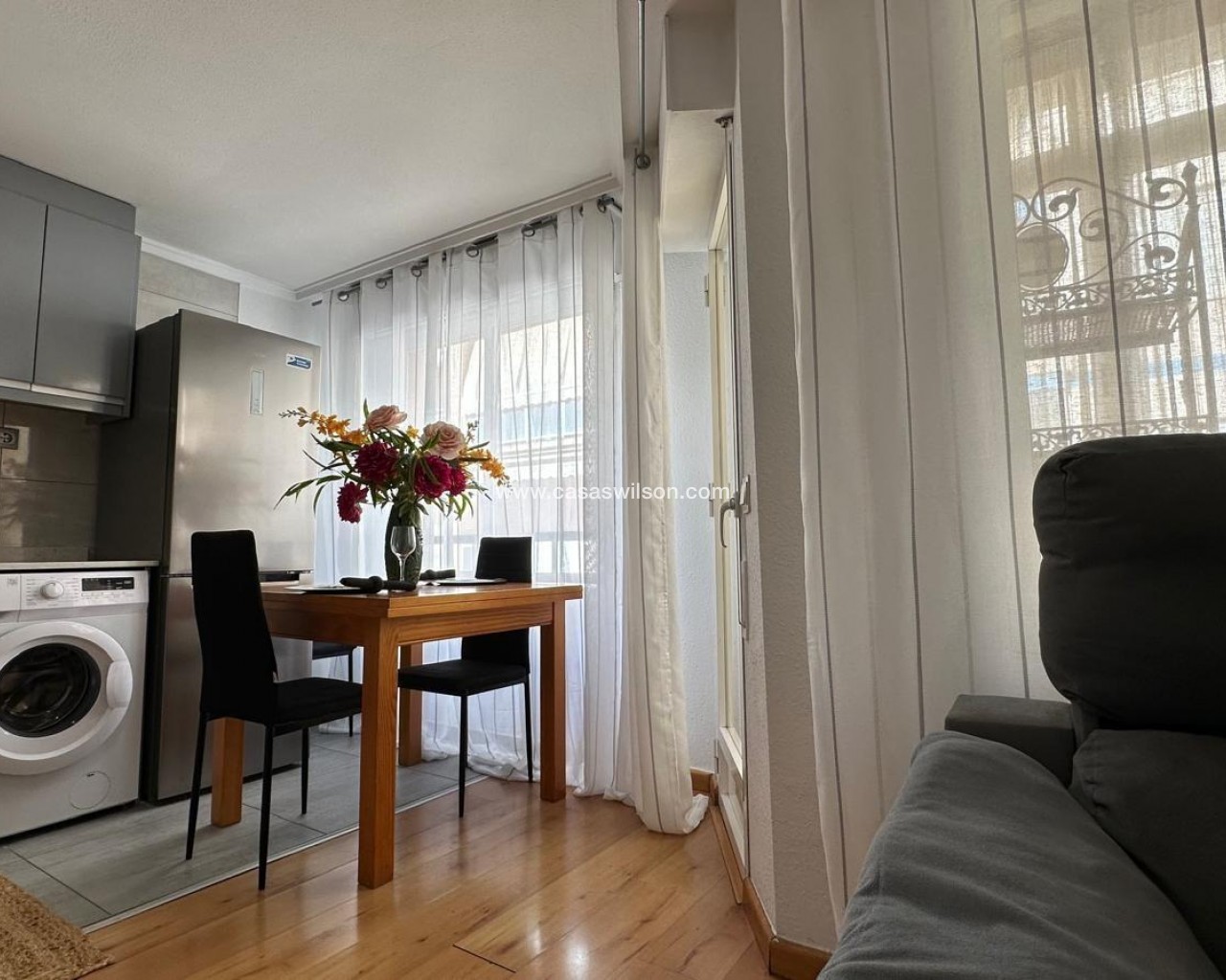 Furnished apartment in the heart of Torrevieja, on Pedro Lorca Street, designed for those who want everything at their fingertips: the beach just minutes away, the promenade, restaurants, shops, and the vibrant urban life that never truly stops. It's the kind of home where you can feel the energy of the coastal city without sacrificing the comfort of a welcoming, bright, and practical space for everyday life. Living here means knowing that you can go for a stroll, have a coffee on a nearby terrace, or spontaneously enjoy dinner out at any time without having to travel far. The open-plan kitchen with a balcony defines the apartment's social and relaxed character. It's easy to imagine mornings starting with the aroma of freshly brewed coffee, some toast, and the balcony door slightly ajar to let in the light and breeze from the city center. While preparing breakfast or lunch, you can look out at the street, watch the neighborhood come alive, listen to the distant conversations of passersby, or simply enjoy that unique blend of city sounds by the sea. The integration of the kitchen and living area creates a seamless flow: the cook isn't isolated, but remains engaged in the conversation, the show playing in the background, or the ambiance of the living room. The balcony becomes a small, private viewpoint overlooking the heart of Torrevieja. It's that cozy corner where you want to step out for a moment with a cup of coffee to get some fresh air, make a phone call, check your phone, or simply watch the street life unfold. In the afternoon, as the sun sets, it transforms into the perfect space to sit for a few minutes and unwind after a long day, feel the warm air, and sense that the city center is still alive. At night, with the city lights on, the balcony takes on a special charm: you hear laughter, footsteps, the occasional passing car, and you feel part of the urban pulse, even without leaving home. The living area, connected to the open-plan kitchen and the balcony, serves as the social hub of the home. Here, everyday moments and special ones abound: afternoons on the sofa watching a movie, study sessions or working from home, get-togethers with friends before heading out for dinner along the promenade, or simply relaxing after a day at the beach. Being furnished makes it easy to imagine the space already furnished: a comfortable sofa, a coffee table, perhaps a bookshelf with books and mementos, and a plant to add life and color. It's an environment that lends itself to both activity and tranquility. The two bedrooms allow the apartment to adapt to different needs. The master bedroom becomes an intimate sanctuary where you can completely disconnect from the hustle and bustle of the city center once you close the door. It's the place you return to at the end of the day to unwind, with pleasant textiles, soft lighting, and personal touches that reflect the person who lives there. The second bedroom offers many possibilities: it can be a children's room, a space for guests visiting Torrevieja for a few days, an office for someone working remotely, or a hobby area for someone who needs their own corner to create, study, or exercise. The bathroom, close to the bedrooms and the living area, is a natural part of the daily routine. It's where you start the morning with a quick shower before heading out, or where you end the night with some hot water and relaxation after a long day. In a centrally located home, having a comfortable and well-situated bathroom makes all the difference between a merely functional house and a home where everyday life is enjoyed more. Pedro Lorca Street is one of those addresses that evokes the authentic life of Torrevieja. From here, you can walk to many key points in the city: the seafront promenade, Playa del Cura or Los Locos beaches, cafes, supermarkets, and pharmacies.