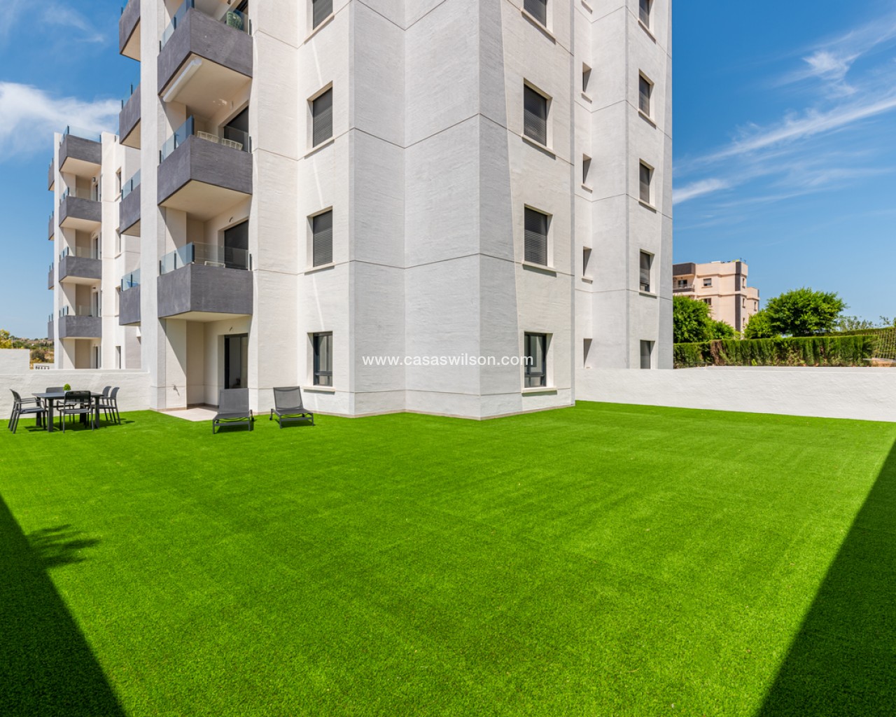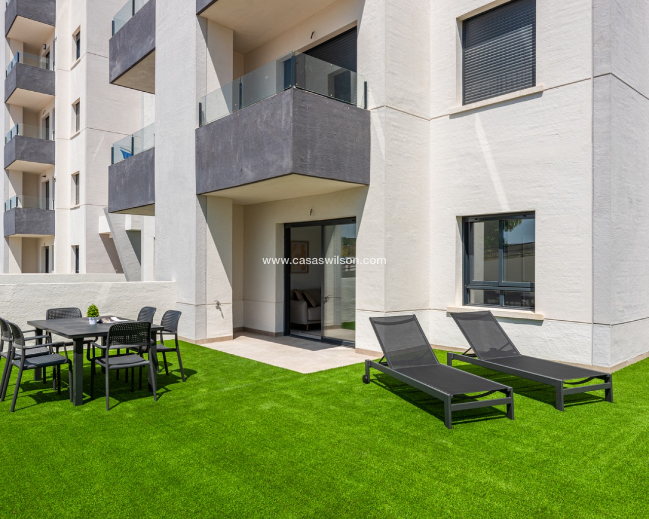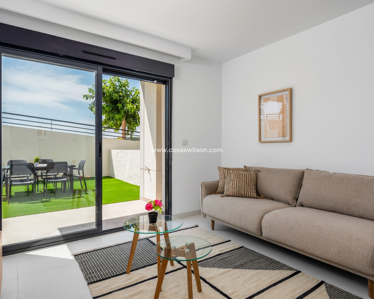 This beautiful 2-bedroom ground floor apartment with very large private garden is situated in the sought after area of San Miguel de Salinas, within walking distance to all local bars, supermarkets and restaurants.The property will be sold fully furnished and consists of a bright living/dining room, a fully equipped open plan kitchen, two bedrooms with fitted wardrobes, two bathrooms with underfloor heating, and a sunny terrace with a very large garden.Storage room and parking space in the underground garage is also included in the price.There is a beautiful communal garden with swimming pool to enjoy the Spanish weather all year long!Close to all amenities and several leisure areas nearby such as beautiful golf courses, many shopping centres, and only 10 minutes from the pristine white sandy Orihuela Costa/Torrevieja beaches and La Zenia Boulevard shopping centre.