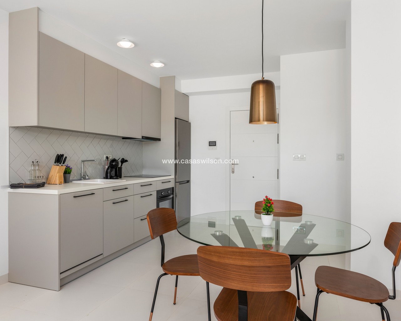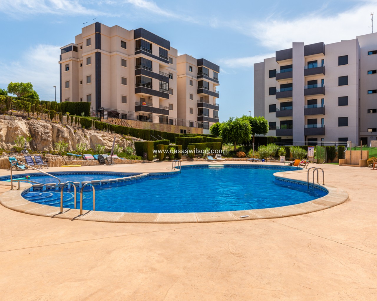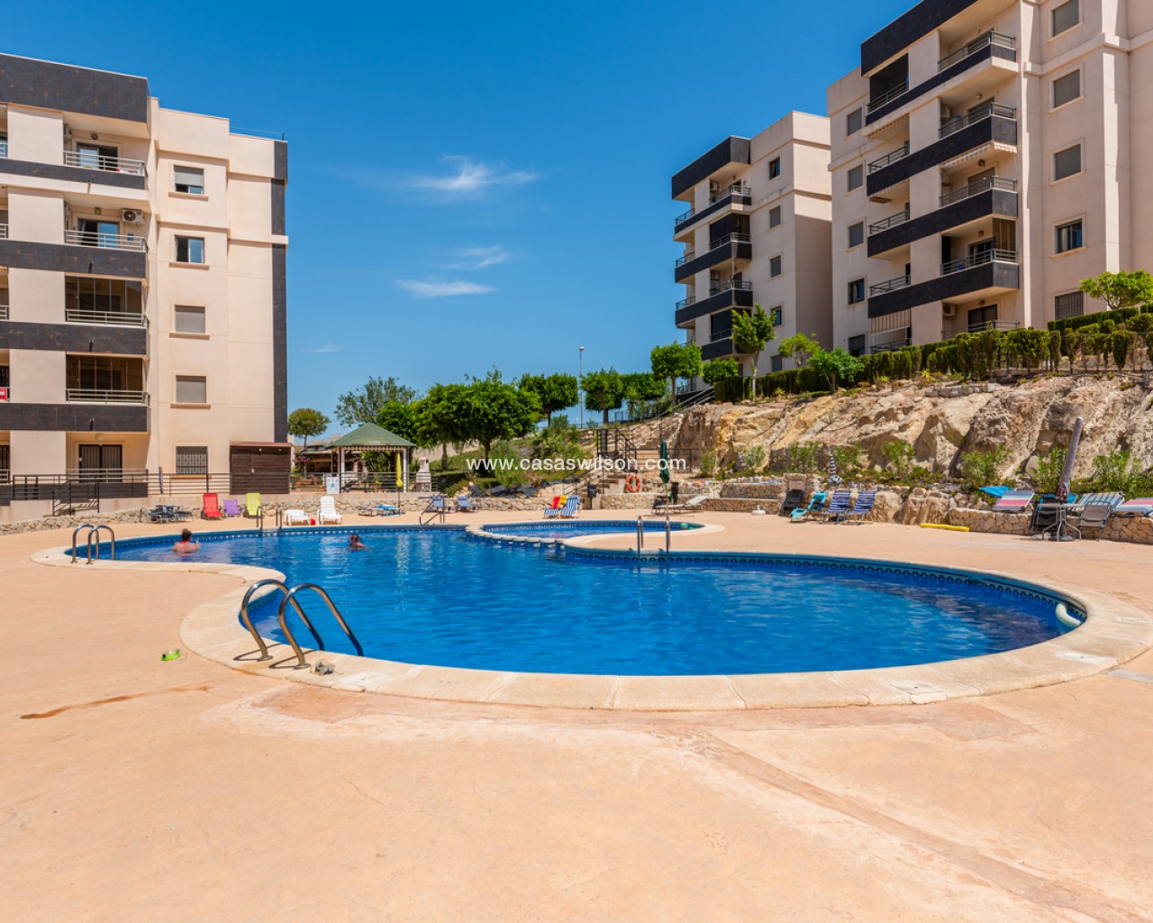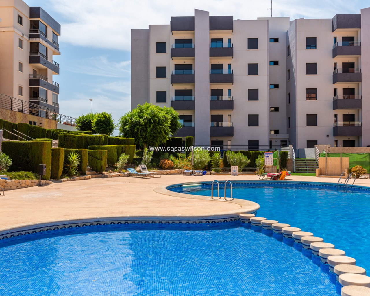 This beautiful 2-bedroom ground floor apartment with very large private garden is situated in the sought after area of San Miguel de Salinas, within walking distance to all local bars, supermarkets and restaurants.The property will be sold fully furnished and consists of a bright living/dining room, a fully equipped open plan kitchen, two bedrooms with fitted wardrobes, two bathrooms with underfloor heating, and a sunny terrace with a very large garden.Storage room and parking space in the underground garage is also included in the price.There is a beautiful communal garden with swimming pool to enjoy the Spanish weather all year long!Close to all amenities and several leisure areas nearby such as beautiful golf courses, many shopping centres, and only 10 minutes from the pristine white sandy Orihuela Costa/Torrevieja beaches and La Zenia Boulevard shopping centre.