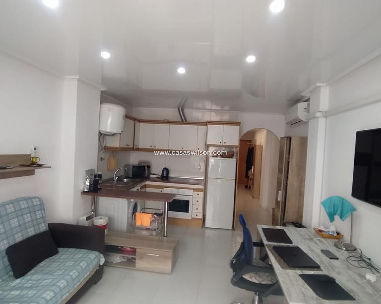 This bright, 55 m² apartment features a spacious living-dining room and a glazed balcony overlooking the street. It includes air conditioning in the living room, a fully equipped open-plan French-style kitchen, and a full bathroom with a bathtub. Located on the first floor of a building without an elevator, the building's entrance has been recently renovated. Situated in the town center, it's close to the La Loma health center and just a short walk from the seafront promenade, Playa del Cura, and Playa de Los Locos.SOLD WITH FURNITURE AND APPLIANCES AS PER INVENTORYYear of construction: 1987Property tax (IBI): €150 per yearCommunity fees: €360 per year