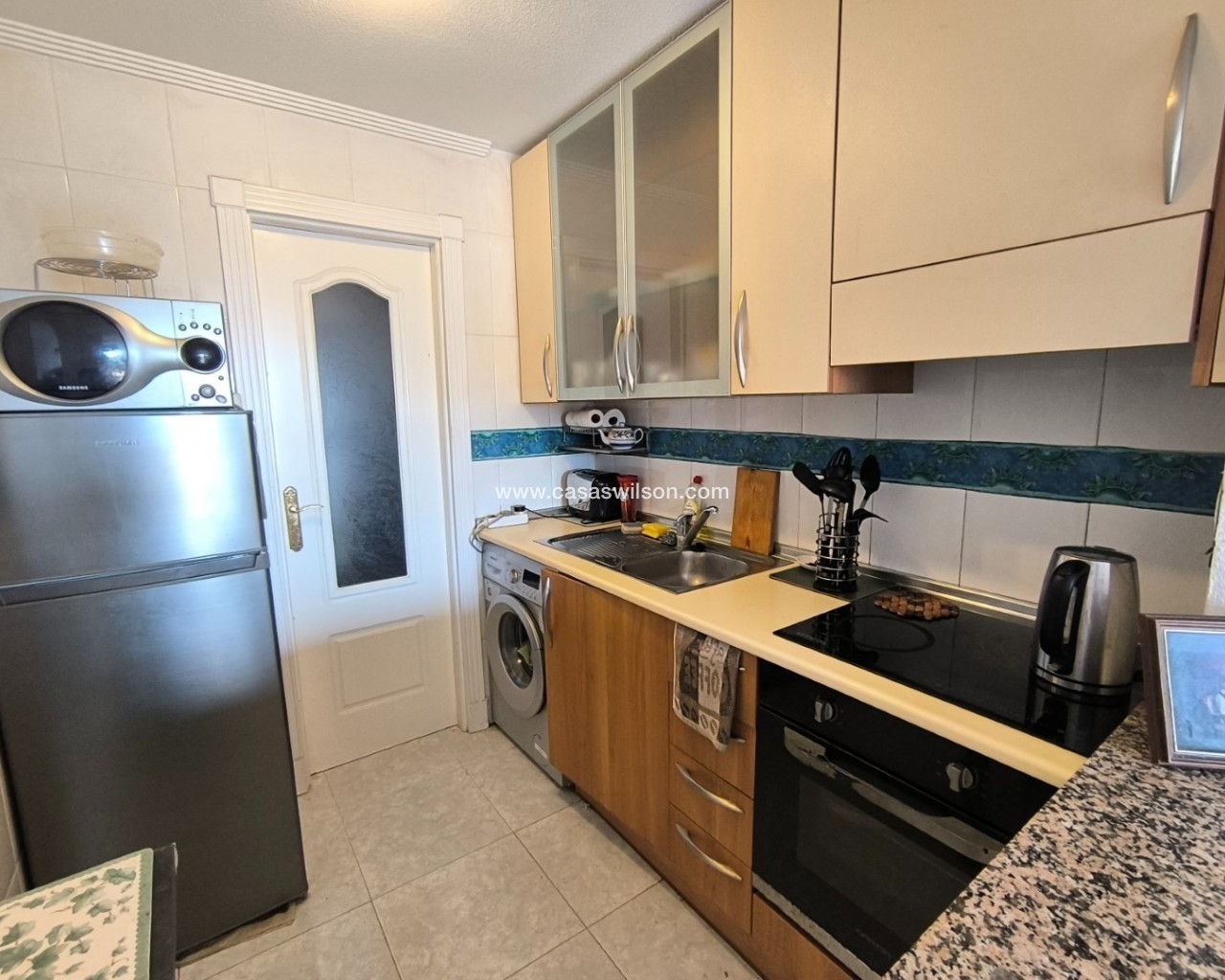 Located on the elevated ground floor on what is arguably the best block in the Fontana Complex in Algorfa village - with the most amazing views from its terrace. You can access the property via a private gate from the road or from inside the main block. From the block you enter into a useful storage area and then into a hallway. On the left the American style kitchen has a range of wall and base units, built in oven/hob and freestanding fridge freezer and washing machine. Door through to a further storage area. Breakfast bar to the living area. The open plan living and dining area is light and bright with sliding doors onto a good sized terrace with steps down to a garden area and gate to the road. From the terrace you can take in the fantastic views over the orange groves and to the mountains beyond. Sit and enjoy the amazing sunsets in the evenings! An archway from the living room leads to the two double bedrooms, both with fitted wardrobes along with a family bathroom. The property is being sold fully furnished and has the benefit of an allocated underground parking space. Residents also have access to a lovely communal pool and gardens. The property does require some TLC and has been priced accordingly. The village has a range of bars, restaurants, bank, doctors, pharmacy along with several other shops and services. Alicante airport is a 40 minute drive, the beaches of Guardamar are approx 15 minutes and all other towns such as Almoradi, Benejuzar and Benijofar are accessible within 5 minutes. La Finca Golf course along with its 5* spa and hotel complex are a few minutes drive away. The area has an abundance of facilities and amenities and great transport links via the AP7 motorway. ***PLEASE NOTE: COMPLETION ON THIS PROPERTY CANNOT TAKE PLACE UNTIL JUNE 2026***