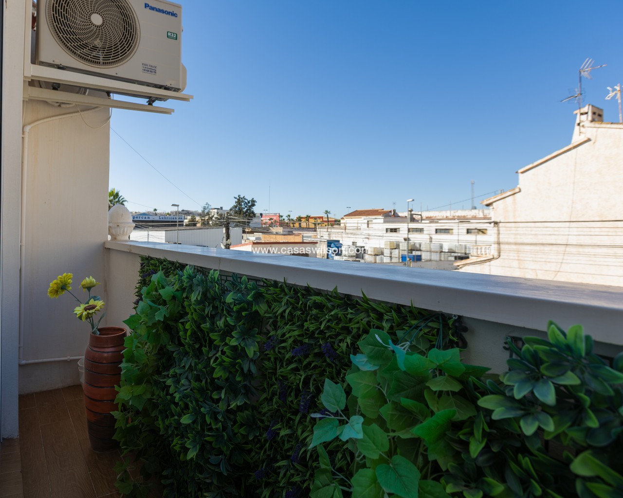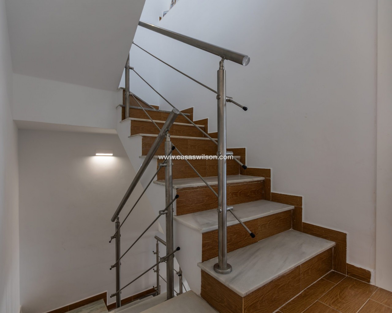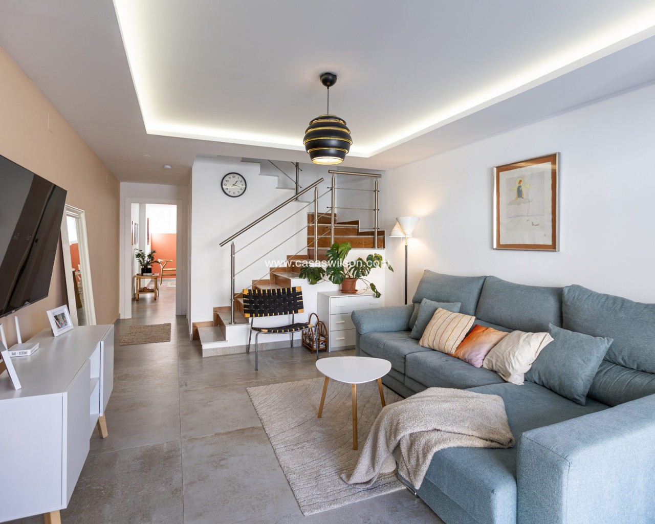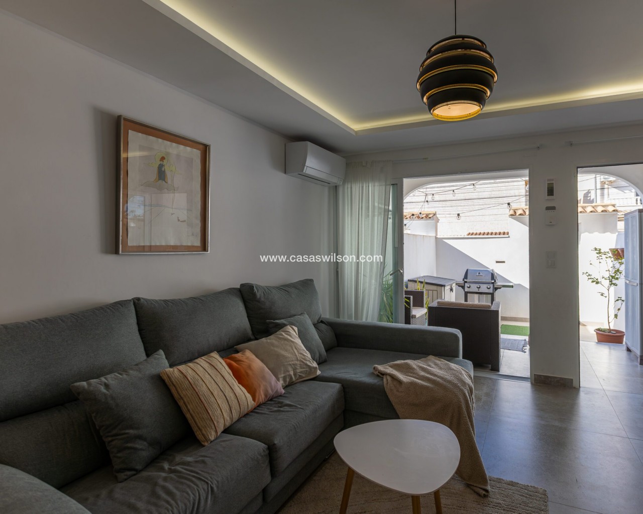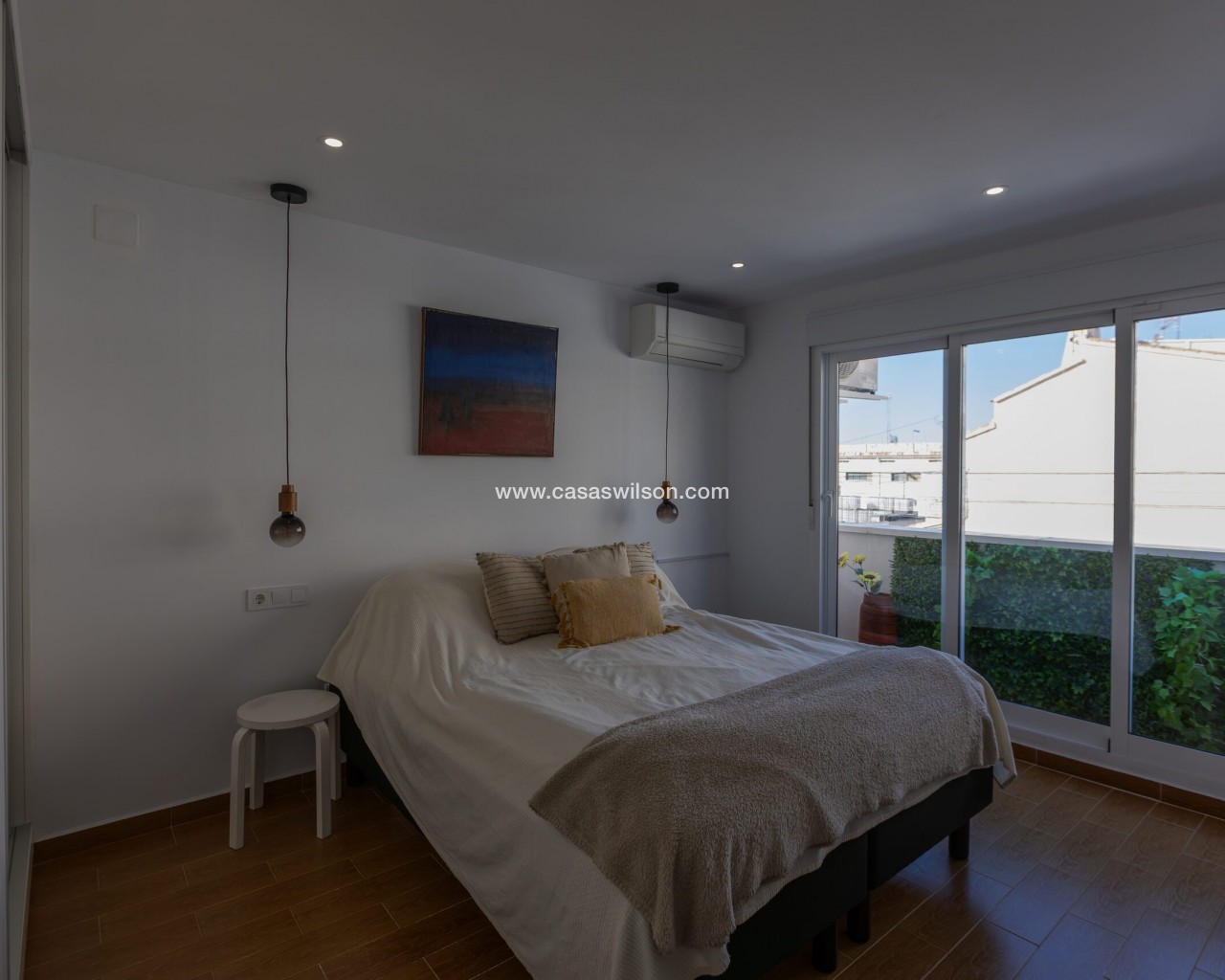 Fully Renovated Townhouse for sale in Nueva Torrevieja. Discover this stunning fully renovated 3-storey townhouse located in the quiet and sought-after area of Nueva Torrevieja, offering modern design, high-quality finishes and ready-to-move-in comfort. The property features 3 spacious bedrooms and 2 full bathrooms, a separate fully equipped kitchen with dining area, and a bright, airy living room with impressive triple sliding glass doors opening directly onto the front garden. Its west-facing orientation guarantees beautiful afternoon sunshine. The home has been completely upgraded with new electrical and plumbing installations, new flooring, smooth walls, double-glazed windows, security entrance door and video intercom. It also benefits from a stylish stainless steel staircase railings, spotlights throughout the house, air conditioning in all rooms and built-in wardrobes in all bedrooms. Property layout: Ground floor: Bright living room with beautiful LED ambient lighting, a fully equipped independent kitchen and a complete bathroom. First floor: Two bedrooms and a full bathroom: The main bedroom features triple sliding doors and a private open balcony, and the second bedroom a private glazed balcony. Second floor: Large master bedroom and acceso to a spacious solarium. Located in a peaceful residential area, close to all amenities: supermarkets, bars, schools, public transport, Torrevieja town centre and the beaches. A perfect home for permanent living. Do not miss the chance to buy this fully renovated townhouse in Nueva Torrevieja.