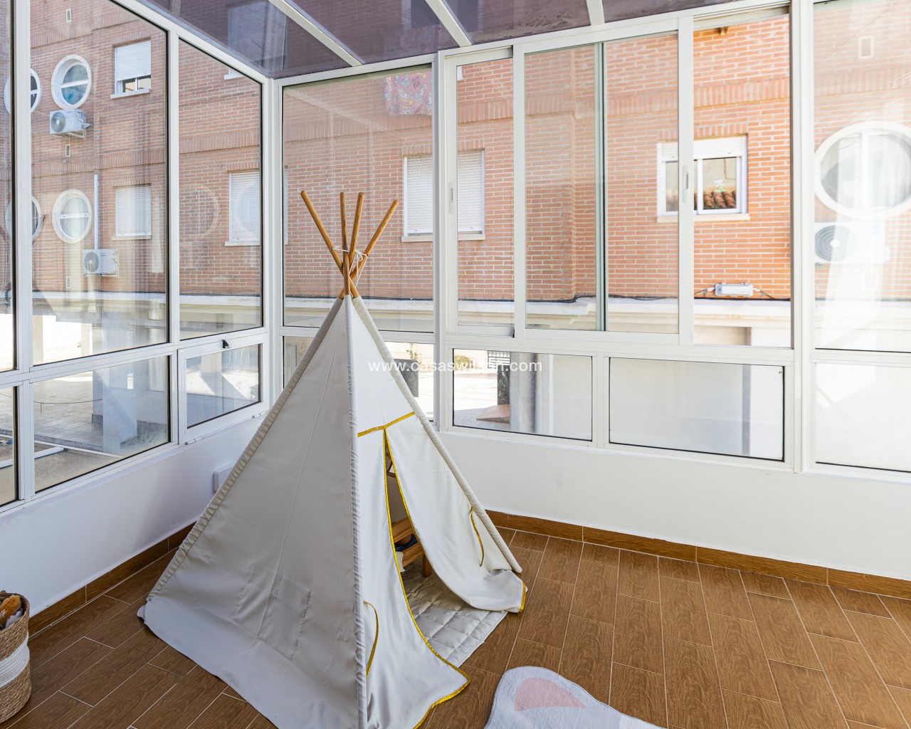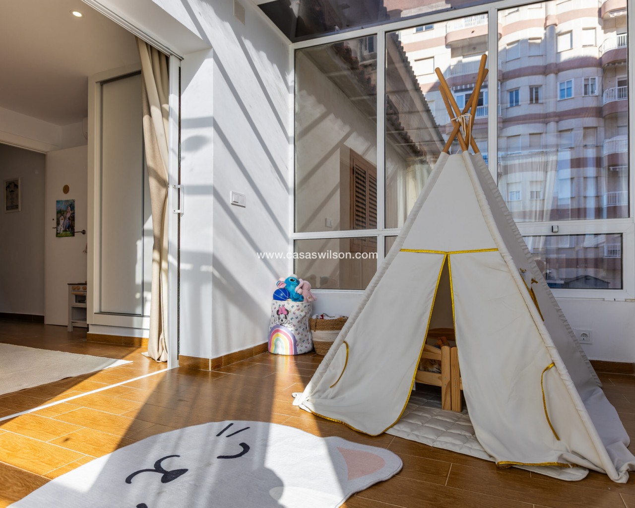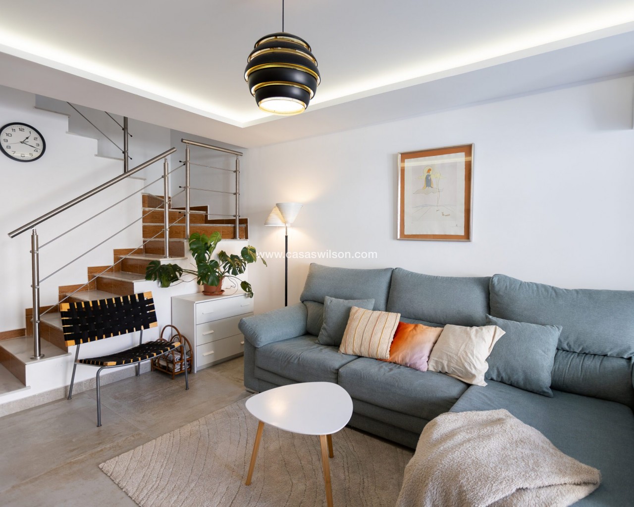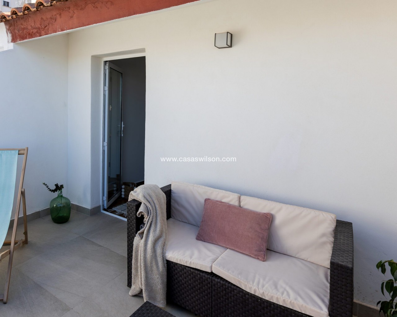 Fully Renovated Townhouse for sale in Nueva Torrevieja. Discover this stunning fully renovated 3-storey townhouse located in the quiet and sought-after area of Nueva Torrevieja, offering modern design, high-quality finishes and ready-to-move-in comfort. The property features 3 spacious bedrooms and 2 full bathrooms, a separate fully equipped kitchen with dining area, and a bright, airy living room with impressive triple sliding glass doors opening directly onto the front garden. Its west-facing orientation guarantees beautiful afternoon sunshine. The home has been completely upgraded with new electrical and plumbing installations, new flooring, smooth walls, double-glazed windows, security entrance door and video intercom. It also benefits from a stylish stainless steel staircase railings, spotlights throughout the house, air conditioning in all rooms and built-in wardrobes in all bedrooms. Property layout: Ground floor: Bright living room with beautiful LED ambient lighting, a fully equipped independent kitchen and a complete bathroom. First floor: Two bedrooms and a full bathroom: The main bedroom features triple sliding doors and a private open balcony, and the second bedroom a private glazed balcony. Second floor: Large master bedroom and acceso to a spacious solarium. Located in a peaceful residential area, close to all amenities: supermarkets, bars, schools, public transport, Torrevieja town centre and the beaches. A perfect home for permanent living. Do not miss the chance to buy this fully renovated townhouse in Nueva Torrevieja.