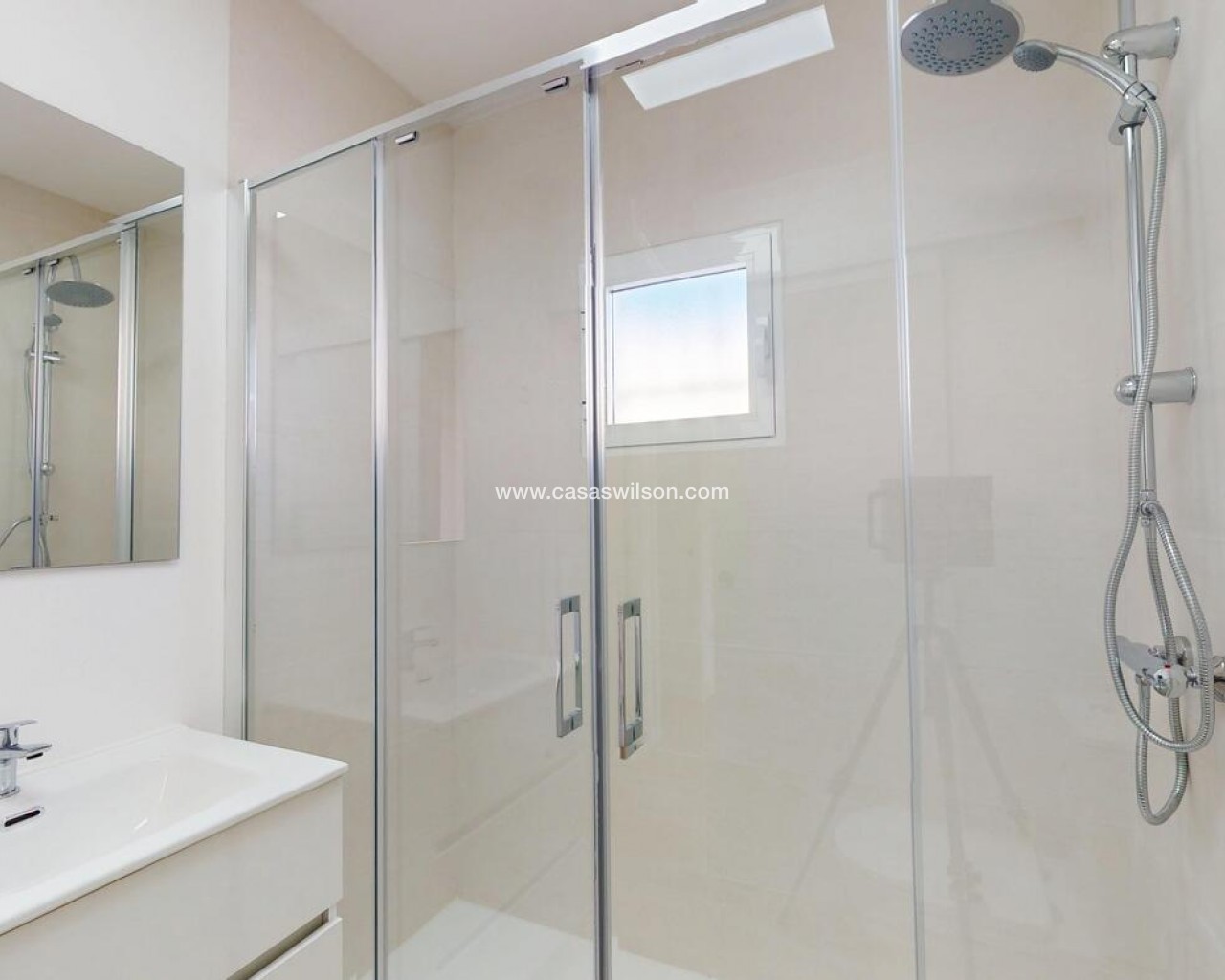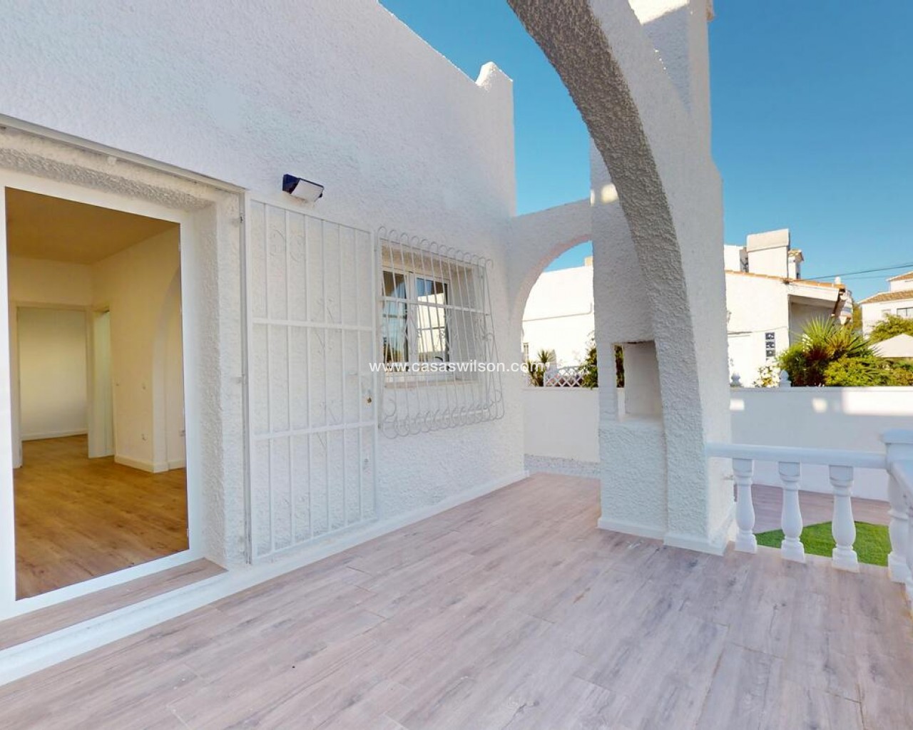 Renovated semi-detached bungalow with no upstairs neighbors for sale in Blue Lagoon, Villamartin. This fully renovated 60m² bungalow sits on a 202m² plot. The house features two bedrooms with fitted wardrobes, one bathroom with a walk-in shower, a bright living room, and an integrated open-plan, modern kitchen with appliances (dishwasher and washing machine included). High windows and a door in the living room open onto a covered terrace with a barbecue. A garden with artificial grass, decorative stones, a palm tree, and a storage shed lies at the front and side of the house. An external staircase leads to the 48m² roof terrace with artificial grass and views of the surrounding area. The doors, windows, and walls are finished in white. Laminate flooring is installed throughout the house. Urb. Blue Lagoon is a popular residential area in Villamartin. Villamartin has all facilities available such as supermarkets, shops, bus stop, the commercial shopping center La Fuente, pharmacists, bars and restaurants etc… The shopping center La Zenia Boulevard is fifteen minutes by car. There is also a bus stop with buses to the beaches of Playa Flamenca, Campoamor and La Zenia. The beaches are 6km away.