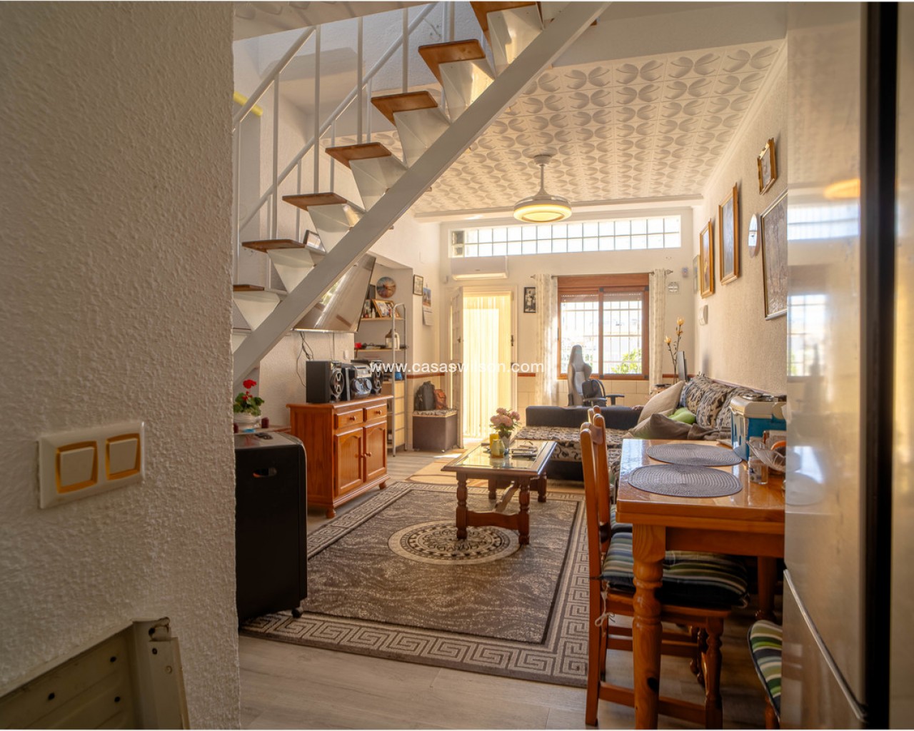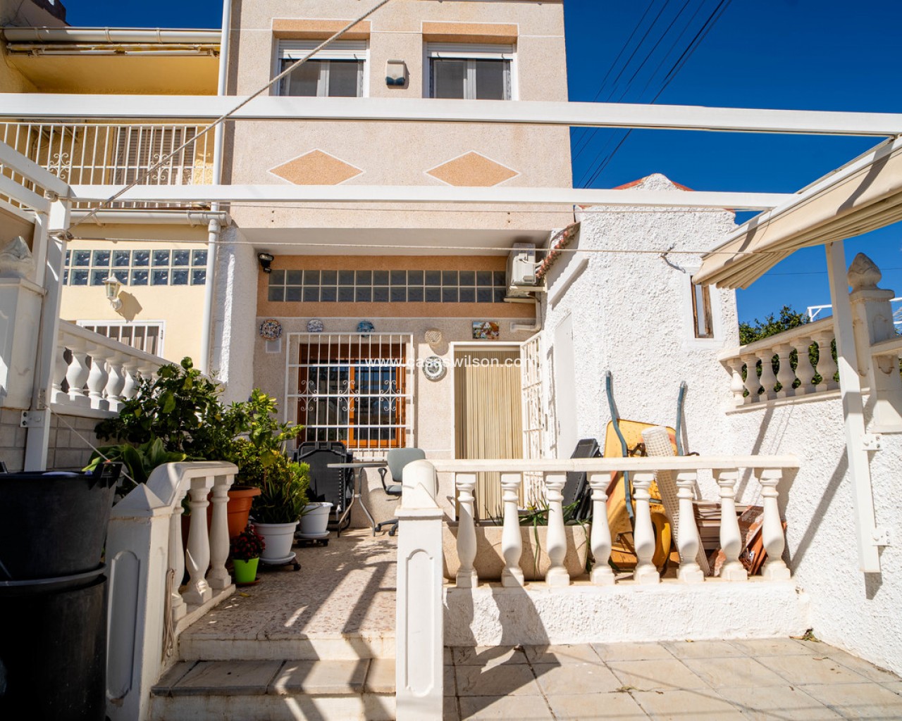 This charming south-facing corner townhouse is ideally located close to the famous pink salt lakes of Torrevieja, offering a peaceful setting with plenty of sunshine throughout the day.As you enter through the gate, you are welcomed by a bright and sunny private terrace, perfect for outdoor dining, relaxing, or enjoying the Mediterranean climate. Inside, the ground floor features a comfortable living room, a separate fully equipped kitchen, and a convenient guest toilet.Upstairs, the property offers two well-proportioned bedrooms and a family bathroom, providing a practical layout ideal for both permanent living and holiday stays.Thanks to its corner position, the home benefits from extra privacy and natural light, creating a bright and airy atmosphere throughout.Situated in a sought-after area near the unique pink salt lakes, the property enjoys the health benefits of the surrounding natural park while still being just a short drive from Torrevieja’s beaches, shops, restaurants, and amenities.An excellent opportunity for those looking for a sun-filled home on the Costa Blanca, whether as a holiday retreat, investment, or full-time residence.
