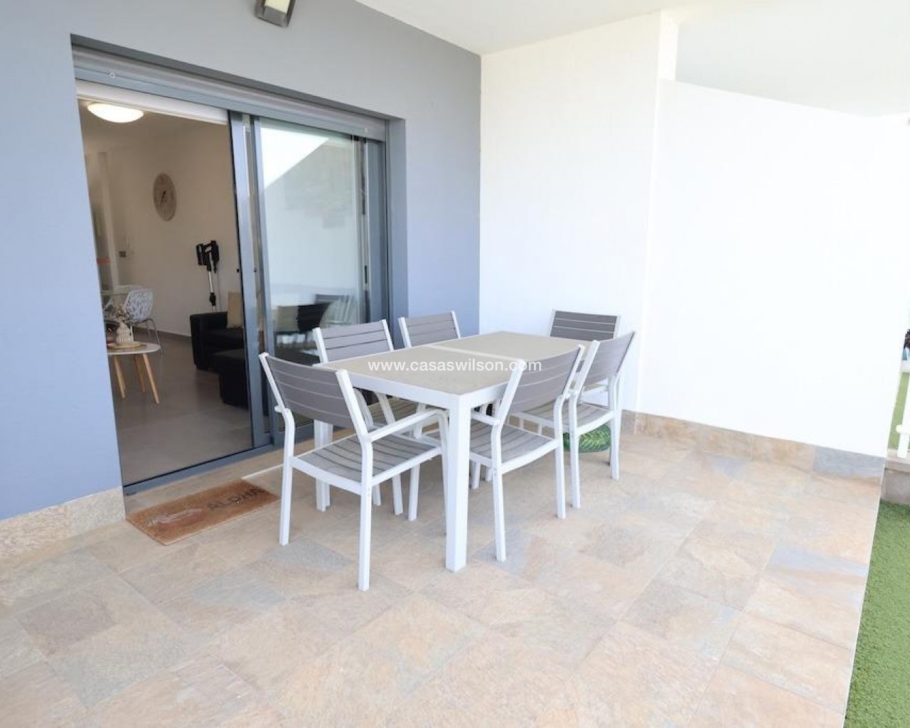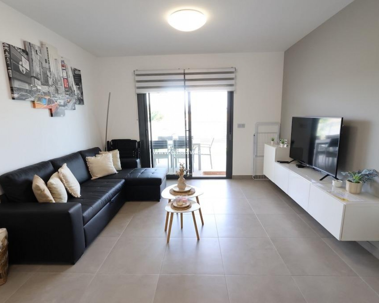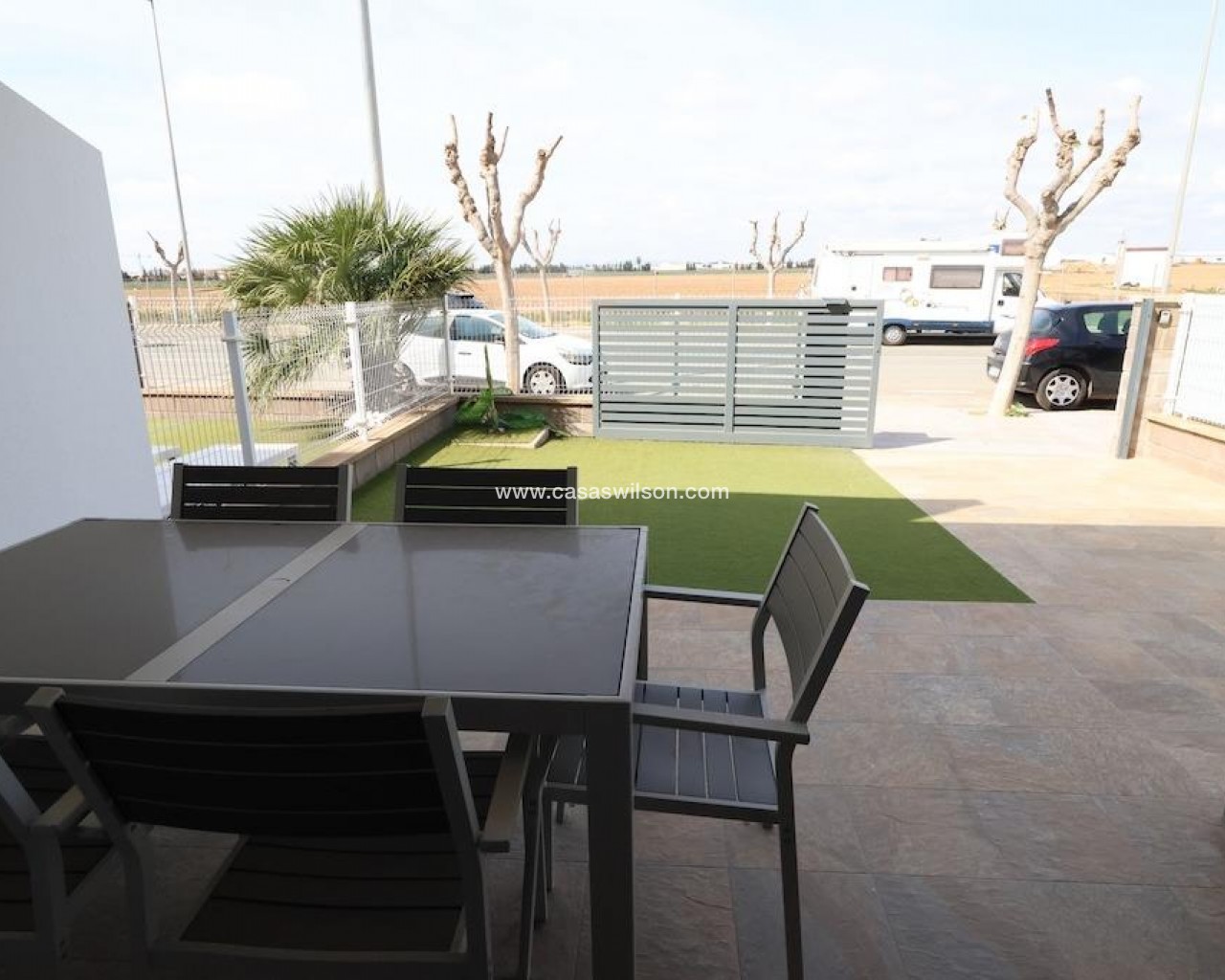 La Mar Phase III, Pilar de la Horadada.. . Ground-floor bungalow (70 m2) featuring 2 bedrooms, 1 bathroom, and a spacious open-plan living/dining area with an integrated kitchen. Includes a terrace and a 30 m2 paved garden with a driveway. Sold furnished with central ducted air conditioning. The complex offers a communal pool.