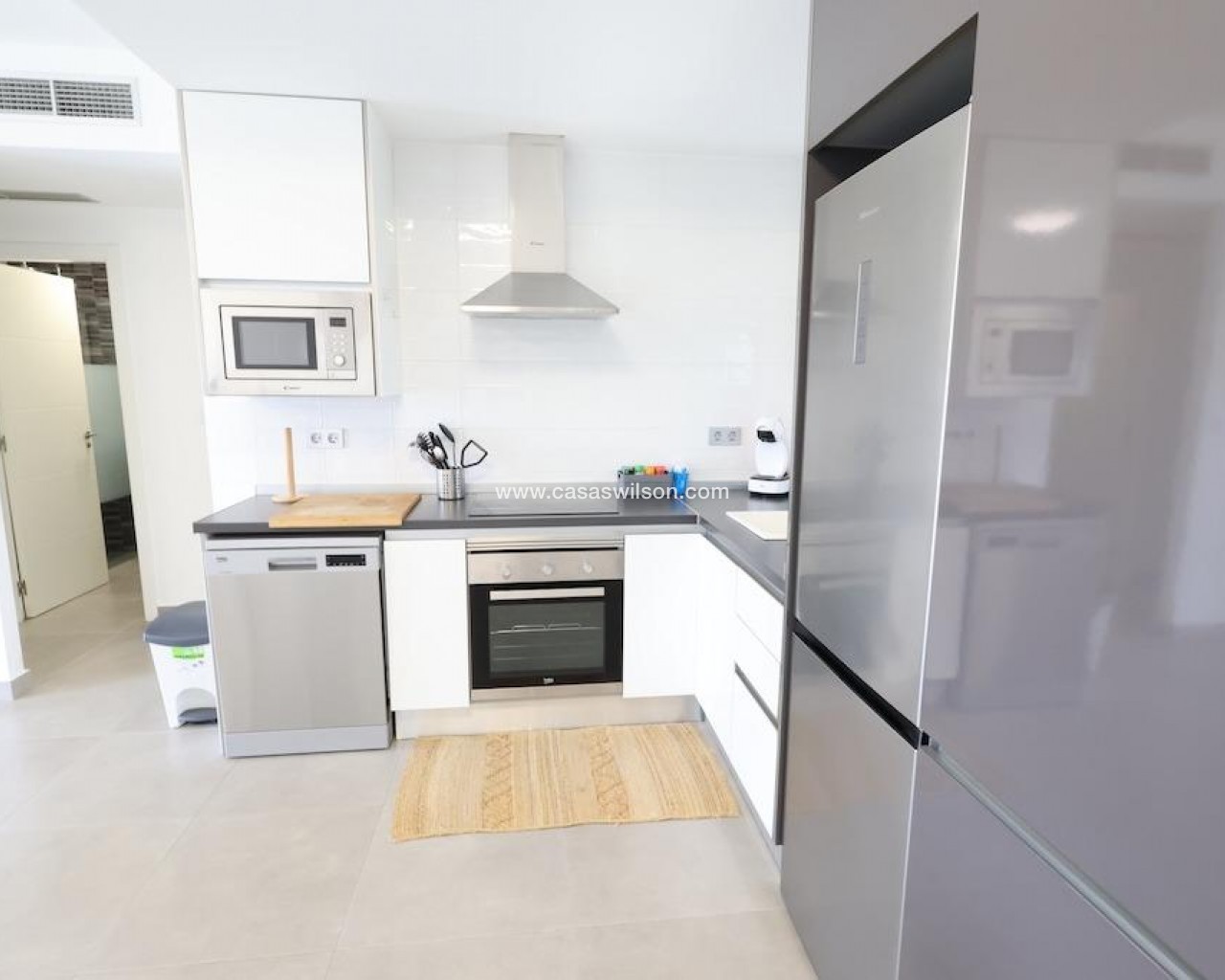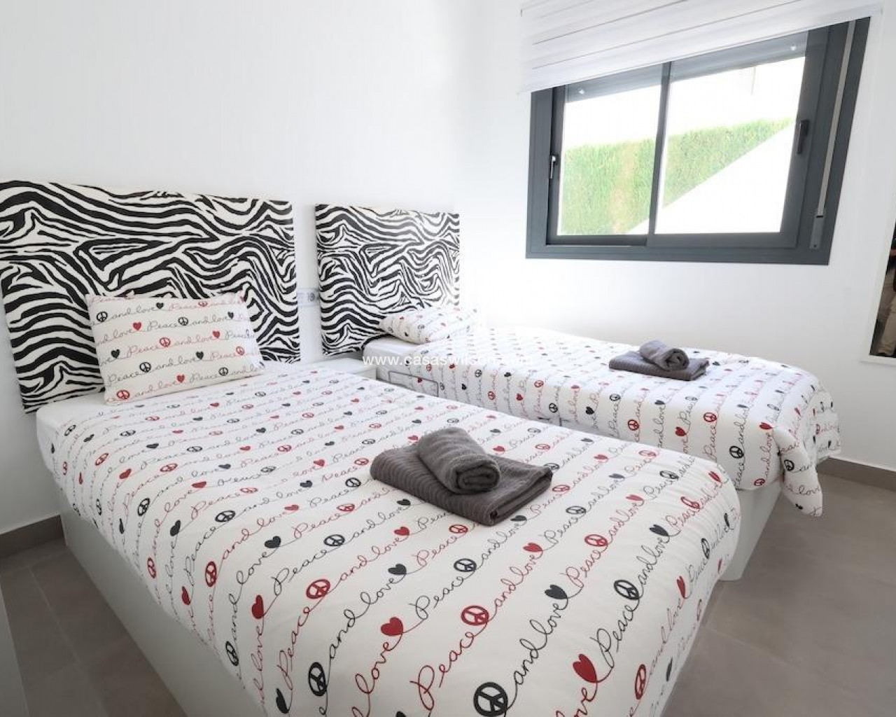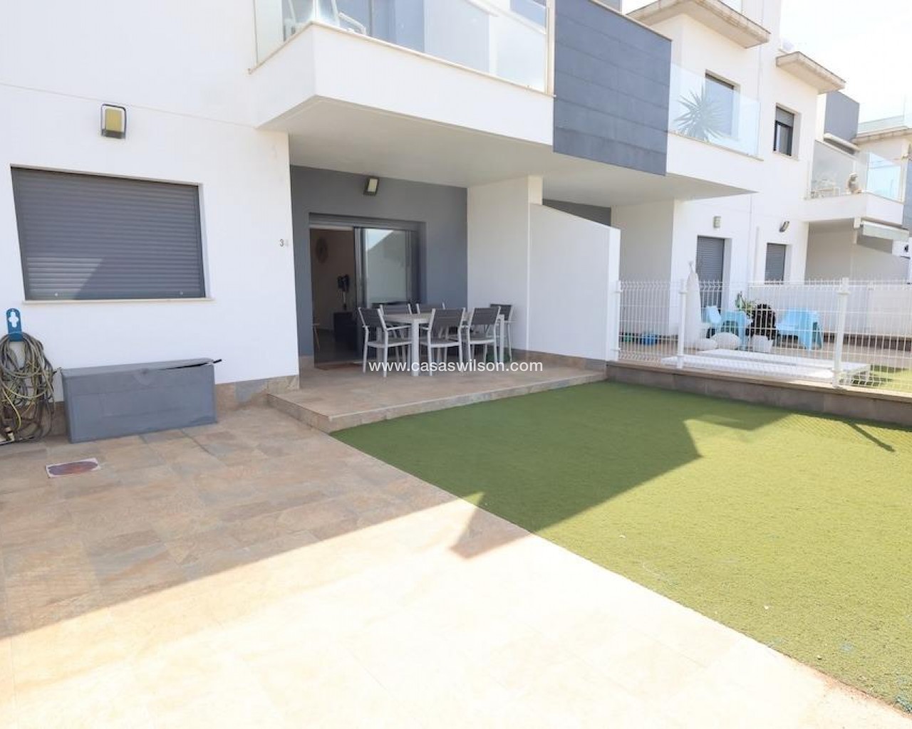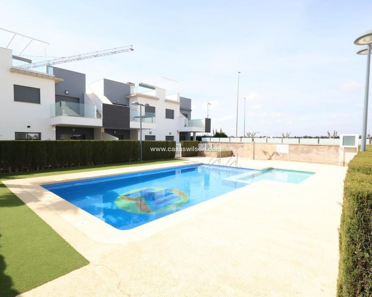 La Mar Phase III, Pilar de la Horadada.. . Ground-floor bungalow (70 m2) featuring 2 bedrooms, 1 bathroom, and a spacious open-plan living/dining area with an integrated kitchen. Includes a terrace and a 30 m2 paved garden with a driveway. Sold furnished with central ducted air conditioning. The complex offers a communal pool.