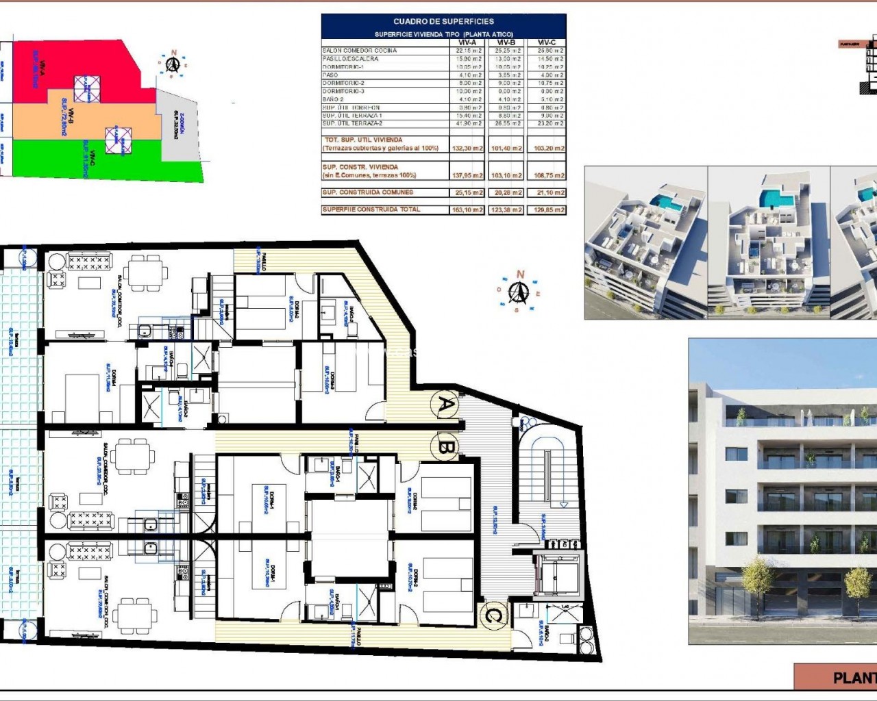 New Build Apartments in Torrevieja Just 400 m from Playa del Cura Prime Location in the Heart of Torrevieja Discover these brand new apartments and penthouses in one of the most sought after areas of Torrevieja, only 400 m from Playa del Cura and just 150 m from the seafront promenade. Located in the city centre, this vibrant neighborhood offers all essential services within walking distance, including supermarkets, shops, restaurants, cafes and public transport. Torrevieja is a well known coastal city on the Costa Blanca, famous for its mild Mediterranean climate, lively atmosphere and year round lifestyle by the sea. Modern Apartments with Spacious Layouts This exclusive new development consists of only 12 apartments and penthouses with 2 or 3 bedrooms, designed to offer comfort, functionality and contemporary style. Middle floor apartments feature generous terraces, while the penthouses enjoy an additional private solarium, ideal for sunbathing or outdoor dining. All homes include an open plan kitchen connected to the living and dining area, creating bright and welcoming interiors. Bedrooms come with fitted wardrobes, and bathrooms are fully equipped with furniture, mirrors and shower screens. Optional underground parking spaces and storage rooms are available at an extra cost. Quality Finishes and Energy Efficient Features The apartments are built with high quality materials and a strong focus on energy efficiency. Exterior aluminum carpentry includes thermal break technology and double glazing for thermal and acoustic insulation. Motorized shutters add comfort and security. Each home has pre installation for ducted air conditioning and heating, reinforced entrance doors and white lacquered interior doors. Hot water is produced through an aerothermal system, reducing energy consumption and improving sustainability. Rooftop Solarium with Communal Pool Residents can enjoy an exclusive rooftop solarium with a communal swimming pool, accessible by lift or stairs. This private area is perfect for relaxing, sunbathing and enjoying open views over the city. It provides a peaceful retreat above the lively streets of Torrevieja and adds significant value to the development. Torrevieja Lifestyle and Surroundings Torrevieja is known for its long coastline, sandy beaches and iconic salt lagoons. The Natural Park of La Mata and Torrevieja lagoons is approximately 5 km away and offers walking trails and unique landscapes. Several golf courses such as Villamartin Golf and Las Colinas Golf are within 12 to 18 km. Torrevieja Marina and port are around 1 km away. Alicante Airport is approximately 45 km and Murcia International Airport around 65 km, both with excellent European connections. Your Coastal Home Awaits Do not miss this opportunity to own a modern new build apartment close to the beach in Torrevieja. Contact us today for more information or to arrange a private viewing.