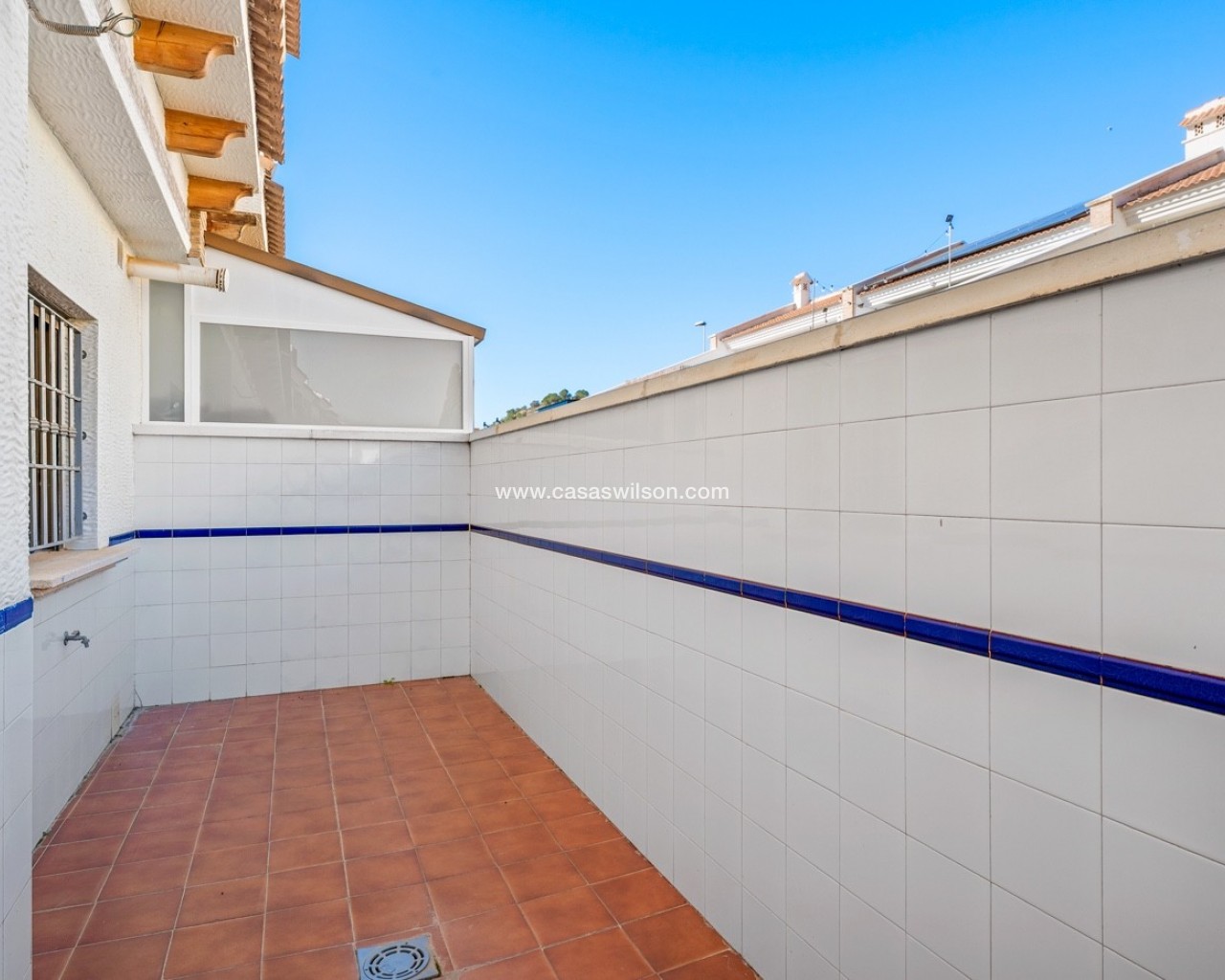 This very well-maintained townhouse with 3 bedrooms and 3 bathrooms is located in the charming Villas María development in San Miguel de Salinas. It's an ideal home for those looking for comfortable living under the Spanish sun, whether for permanent residence or holiday use. The house is practically and thoughtfully laid out.On the ground floor, you'll find a bedroom and a bathroom, perfect for guests or those who prefer to have everything on one level. The separate, fully equipped kitchen opens onto an adjoining terrace, perfect for breakfast in the morning sun. The spacious open-plan living and dining area enjoys plenty of natural light and opens onto the cozy south-east-facing garden, a wonderful place to enjoy outdoor living all year round. There is a large parking garage underneath the house with: a private parking spacea spacious storage room of approx. 15 m² The house is part of a pleasant and well-maintained urbanization and is located only 2 km from the village center , where you will find all amenities such as shops, restaurants, schools, pharmacy and cozy terraces. San Miguel de Salinas is a charming and authentic Spanish village in the south of the Costa Blanca. The village enjoys a slightly elevated position between the salt lakes of Torrevieja and the Mediterranean Sea, offering stunning views and a healthy microclimate. What makes this location so attractive: Just a 15-minute drive to the beaches of Orihuela CostaClose to several renowned golf courses such as Las Colinas, Campoamor and VillamartínGood connections to Alicante and Murcia airportsA quiet, residential area with international residentsWeekly market and a lively village square with a local atmosphere San Miguel combines tranquility and nature with excellent accessibility and all amenities within easy reach — an ideal location for those who want to experience the real Spain without sacrificing comfort. Community / VVE: €52 / year Suma / Real estate tax: €350/year