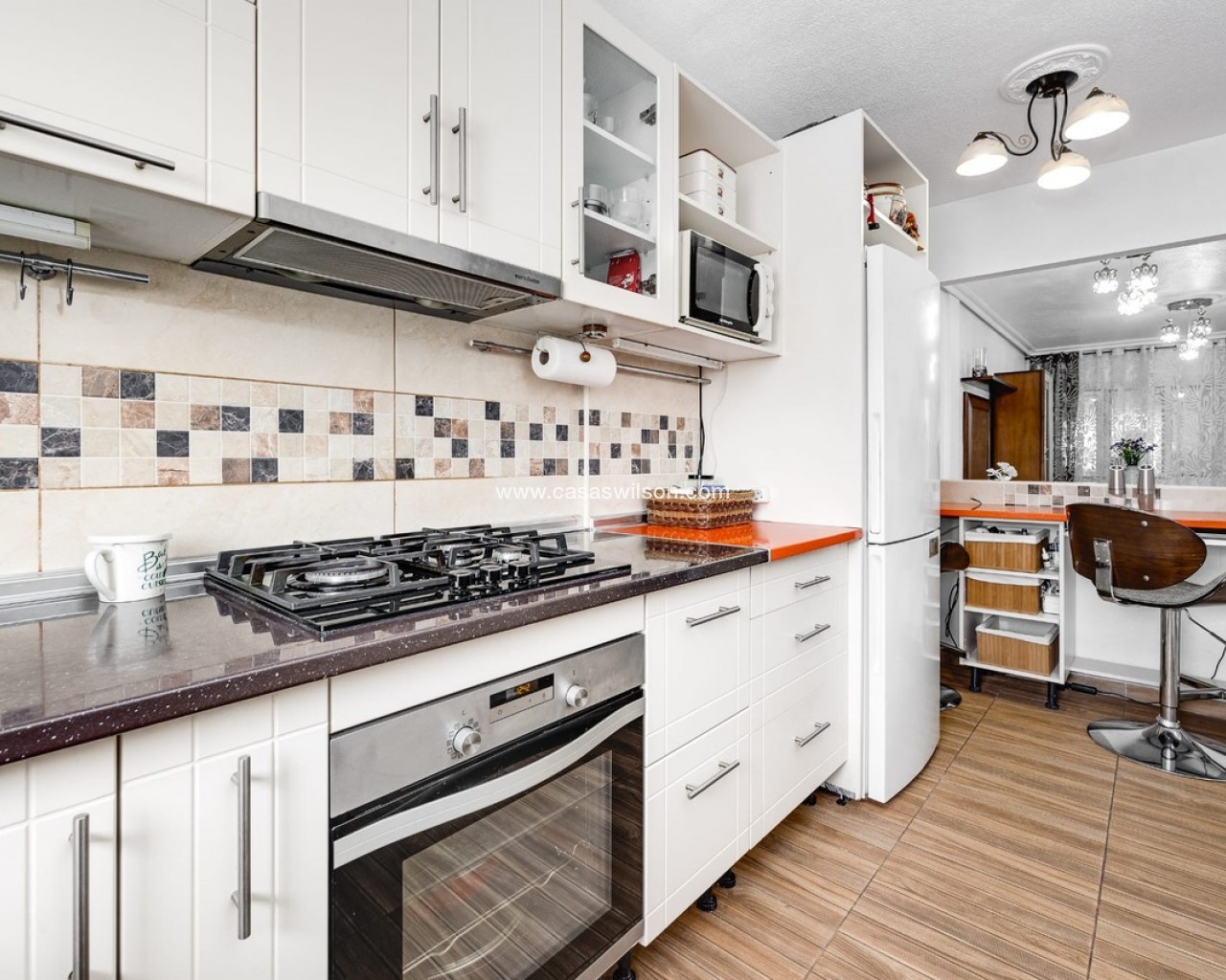 Nestled in the heart of Torrevieja, this charming 3-bedroom, 1.5-bathroom townhouse offers the perfect blend of sunshine, comfort, and Mediterranean living. With sunny gardens at both the front and rear, a private solarium, communal pool, and private parking, it’s an ideal home for holidays, full-time living, or a smart investment on the Costa Blanca.As you step through the gate, you’re welcomed by a bright front terrace — the perfect spot for morning coffee or relaxing afternoons — complete with a convenient awning for shade during the warm summer months.Entering through the front door, you’ll find a welcoming entrance hallway and the first bedroom, a versatile space ideal for a single bed, guest room, or home office. Continuing through the property, you arrive at a spacious and inviting living room that flows naturally into a well-sized kitchen, creating a comfortable space for both everyday living and entertaining.On this ground level there is also a convenient guest toilet, a practical utility room, and direct access to the sunny rear garden. From here you can step straight into the beautifully maintained communal gardens and pool area — perfect for cooling off on warm days.Upstairs, the property offers two generous double bedrooms and a family bathroom. One of the bedrooms provides access to the home’s private solarium, a wonderful sun-drenched space ideal for sunbathing, relaxing with a book, or enjoying warm Mediterranean evenings.With its sunny outdoor spaces, excellent layout, communal pool, and private parking, this delightful townhouse offers the perfect opportunity to enjoy the relaxed lifestyle Torrevieja is known for.
