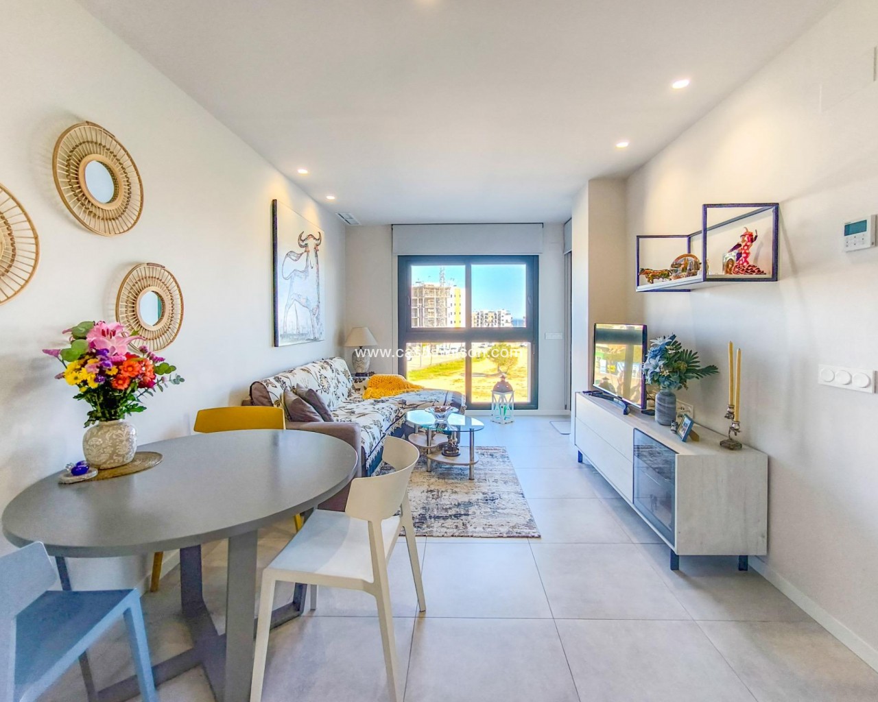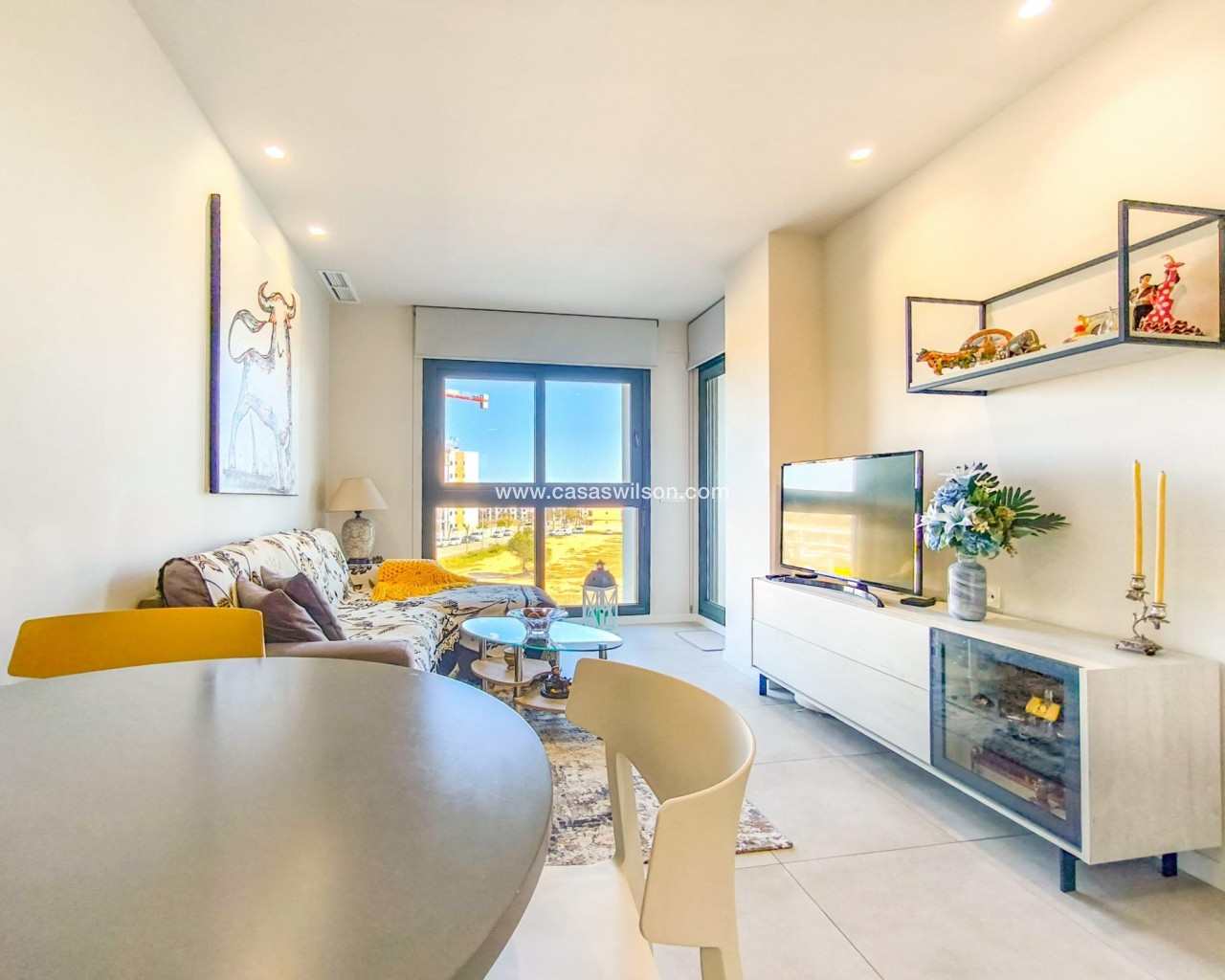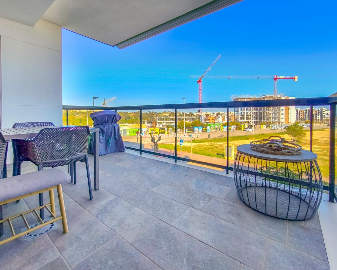 We present this modern apartment in a gated complex with garden and swimming pool, located just 700 meters from one of the best beaches in Mil Palmeras, in the prestigious area of Orihuela Costa. This highly sought-after residential location allows you to enjoy the Mediterranean climate, peace, and an active and healthy lifestyle. A spacious, bright, and very cozy apartment, it features a large south-facing terrace with views of the park and the sea, perfect for relaxing and enjoying the sunny weather. The modern living room is combined with the dining area and open kitchen, equipped with contemporary furniture and appliances. The apartment includes 2 bedrooms with built-in wardrobes, 2 full bathrooms, and a private storage room, ideal for keeping your home organized. A private parking space is also included. This apartment combines beach, comfort, and convenience: just 700 meters to the sea, with supermarkets, restaurants, and all services nearby, and only 10 minutes by car to Zenia Boulevard Shopping Center. All in a quiet and safe environment, perfect for comfortable living. With over 300 days of sunshine per year and a mild climate, every day invites you to enjoy seaside walks, outdoor activities, water sports, golf, and social life. Perfect for families, seniors, or anyone seeking a peaceful and exclusive coastal lifestyle. The property price does not include notary, registration, or applicable taxes, which vary according to current regulations in the Comunidad Valenciana.