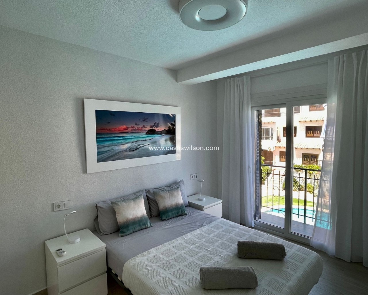 Newly renovated, very nice and comfortable first floor, south-east facing apartment. Air conditioning in all rooms, community pool, and enclosed terrace with glass curtains. 800 m from the beach. Located about a 7-minutes walk from the beach, close to numerous cafes and restaurants on Cabo Roig strip. Two double bedrooms, bathroom with walk-in shower, air conditioning in all rooms (bedrooms and living room). 65 m² of living space. Both the balcony and terrace overlook the pool and street. Covered parking in the complex.