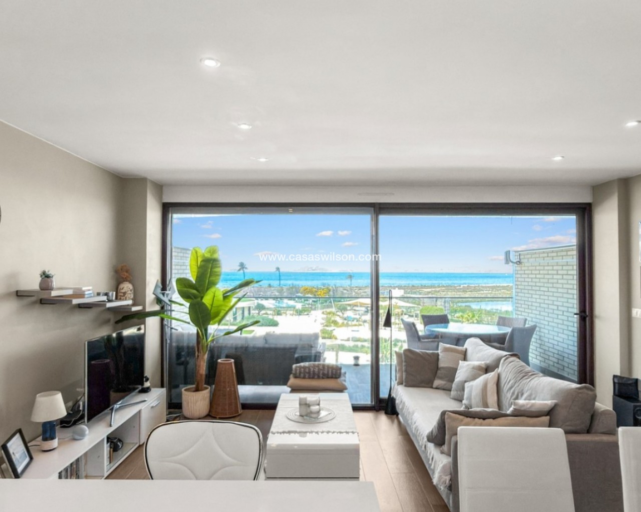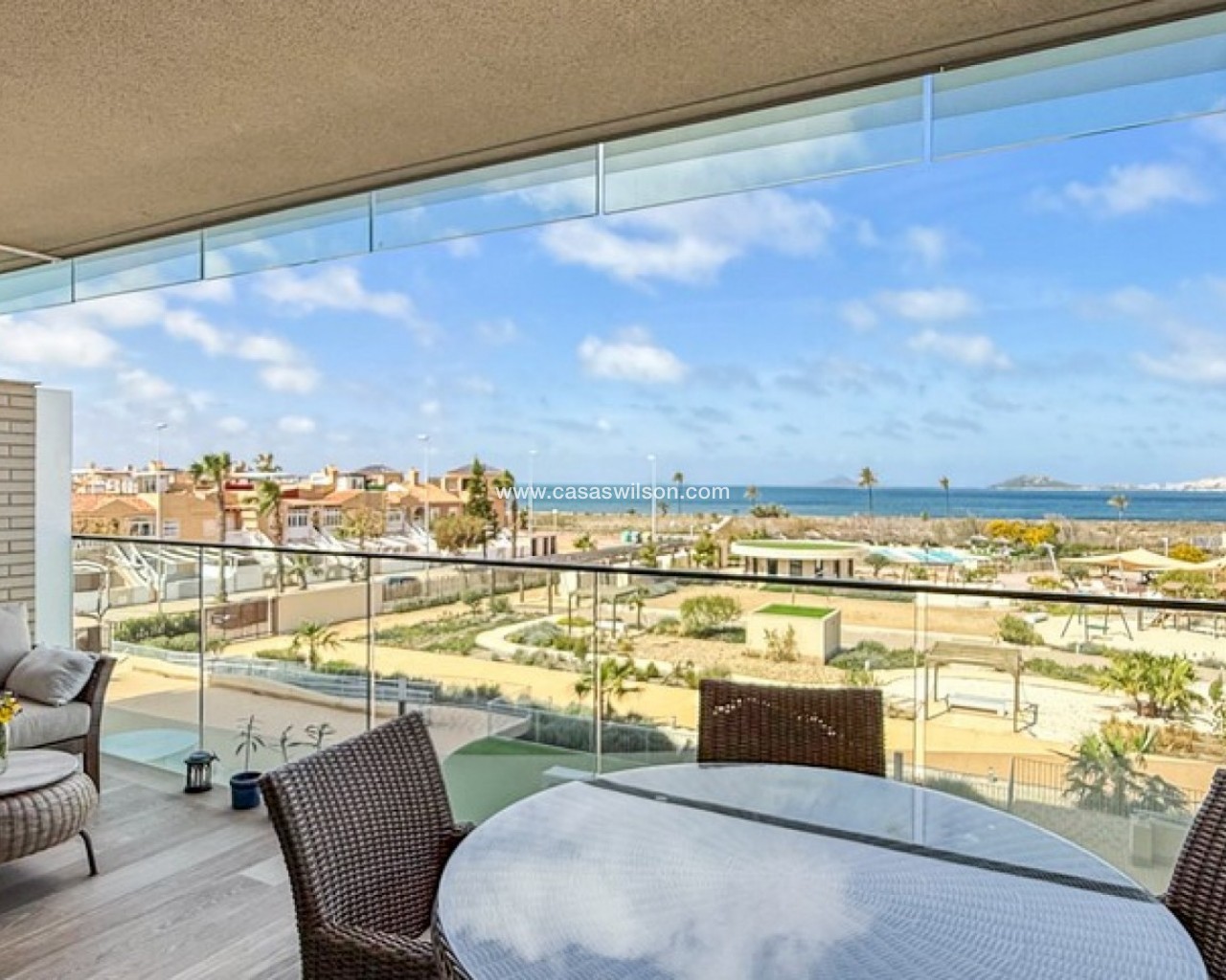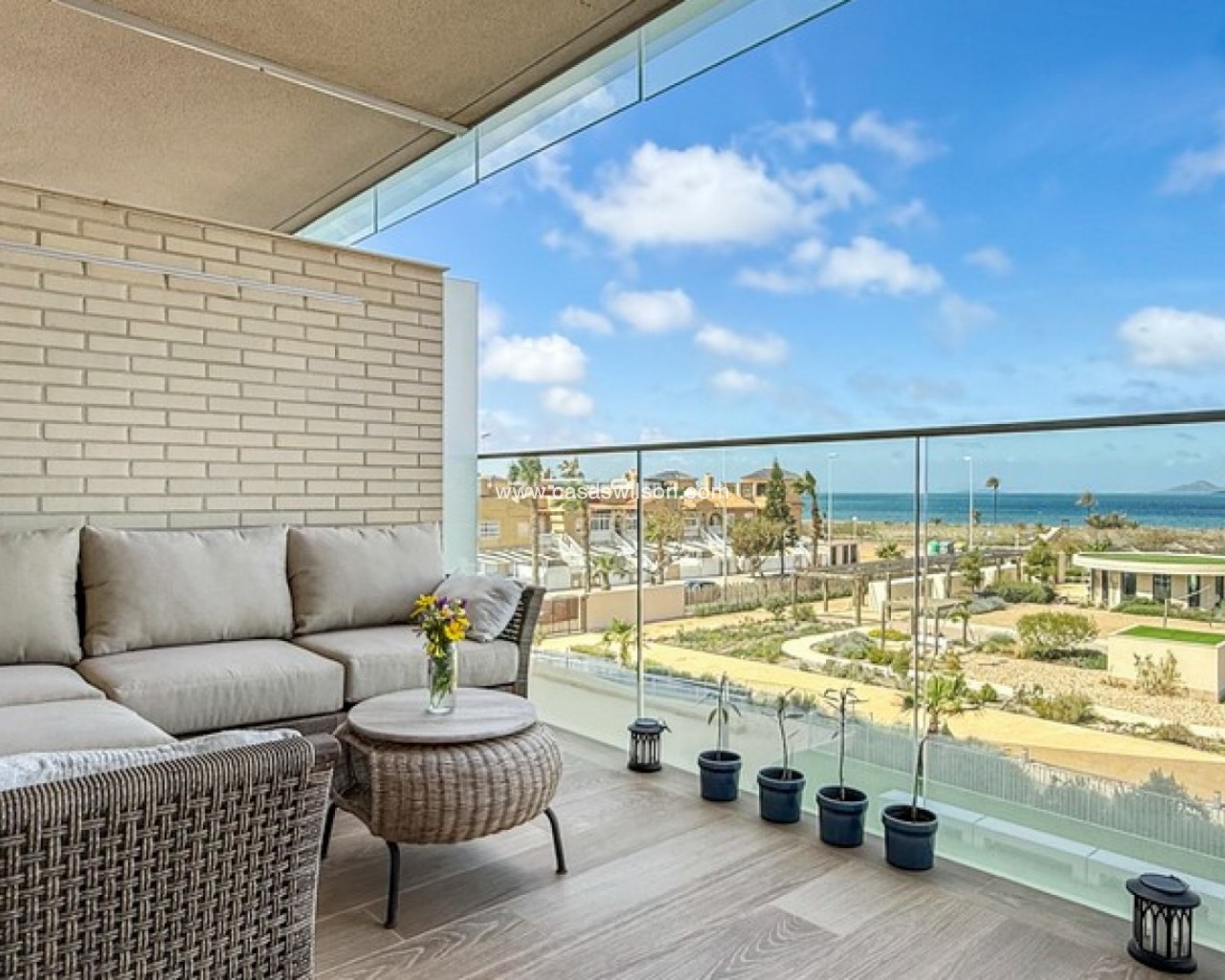 Experience refined coastal living in this stylish 2nd-floor apartment, ideally located within the prestigious Los Flamencos residential complex in Playa Paraíso, Cartagena. Just steps from the beach, this beautifully presented home offers stunning views of the Mar Menor and the Mediterranean Sea from its private terrace. The apartment features 2 spacious bedrooms and 2 modern bathrooms, designed with comfort and functionality in mind. The bright open-plan living and dining area connects seamlessly with a fully equipped kitchen, creating a welcoming space perfect for both relaxing and entertaining. Finished to a high standard throughout, the property also benefits from air conditioning and is sold fully furnished. Additional highlights include a private underground parking space and storage room, making it an ideal choice for year-round living, a holiday escape, or a strong rental investment. Key Features: 2 spacious bedrooms 2 modern bathrooms 2nd-floor apartment with sea views Private terrace Fully furnished Air conditioning throughout Underground parking & storage Exclusive Community Amenities: Beachfront swimming pool area Indoor spa with wellness facilities Fully equipped gym Landscaped gardens & picnic areas Co-working office & events space (bookable) Dog park & birdwatching tower Children’s playground Los Flamencos offers a unique combination of resort-style living and natural surroundings, all within walking distance of the beach and close to local amenities in Playa Honda and La Manga.