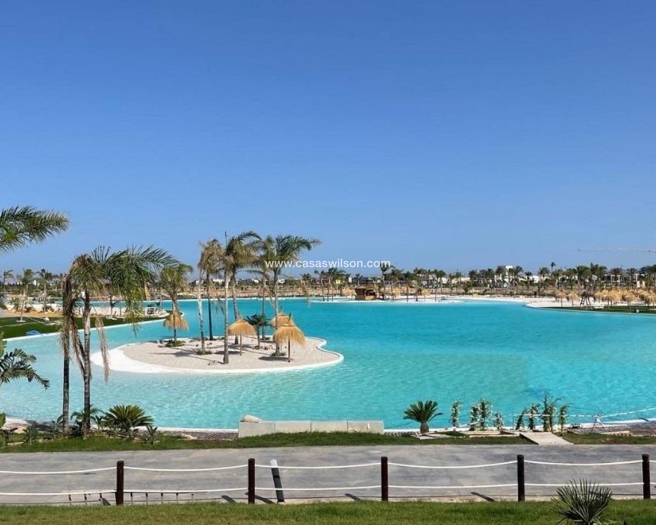 NEW BUILD APARTMENTS IN PRIVATE GATED RESORT IN PROVINCE OF MURCIA New Build residential complex of 6 blocks, a total of 42 apartments. Beautiful apartments have 3 and 2 bedrooms and 2 bathrooms with views of the large lake and green areas of this large luxury resort. Ground floor apartments with private garden, top floor apartments with private solarium. Complex has a communal pool and all the apartments have a parking pace and a storage room. Located in a private gated resort, with a main access entrance and 24 hours security. The resort is designed around an impressive 126.000 m2 green area. It comprises walking and cycling paths, sport facilities, paddle and tennis courts, a mini-golf course, gardens, dog parks, leisure areas, clubhouse…. Also in the central area is the jewel of the resort, a crystal-clear artificial lake of almost 17.000m2 of water surface, surrounded by white sandy beaches and palm trees, bringing a piece of the Caribbean to the Murcia Region. There are 2 islands in the lake, one of them has its own bar, there are also “beach Chiringuitos” spread around the lake. The resort is strategically located less than 4 km from the beach and the town of Los Alcázares, where you can practice various water sports, surrounded by several golf courses and the city of Cartagena less than 15 minutes by car and 22 km from Murcia airport, therefore having a wide cultural, gastronomic and sports offer within reach.
