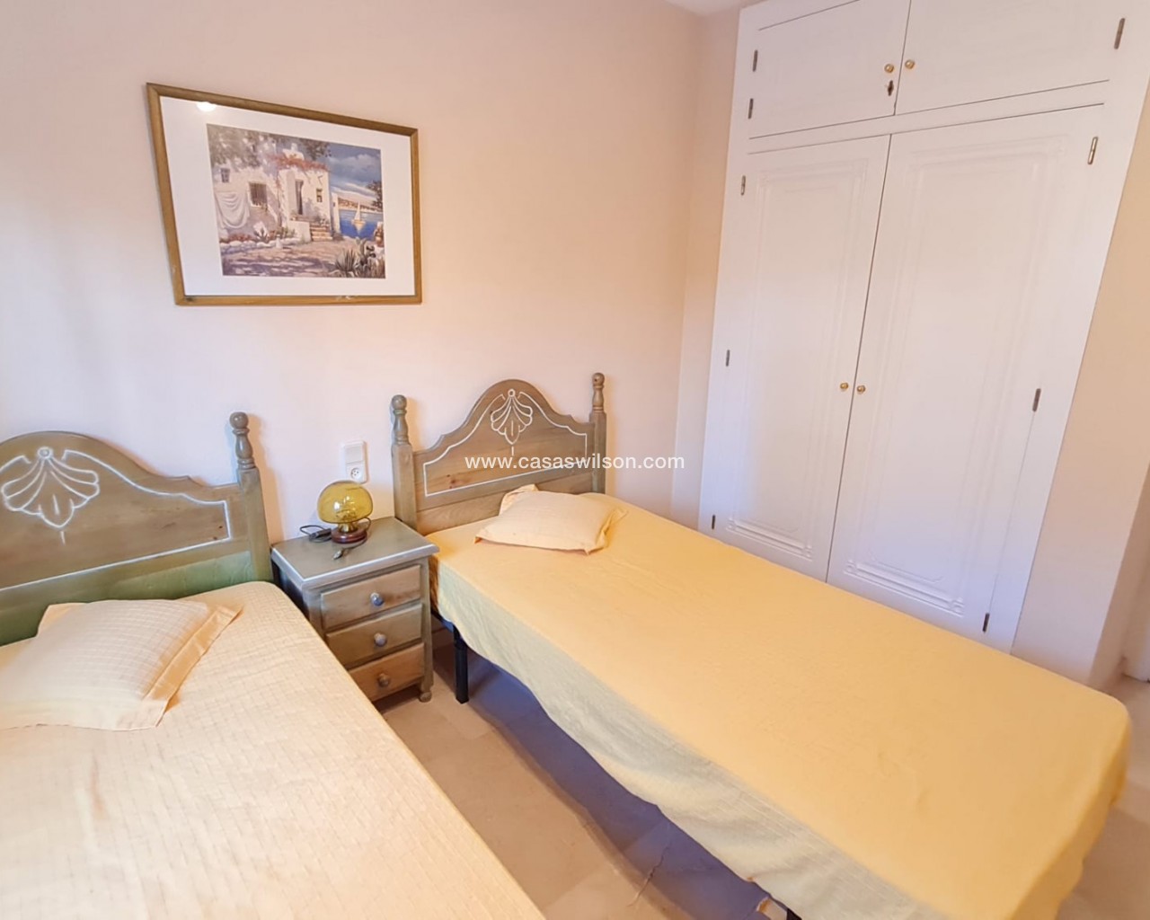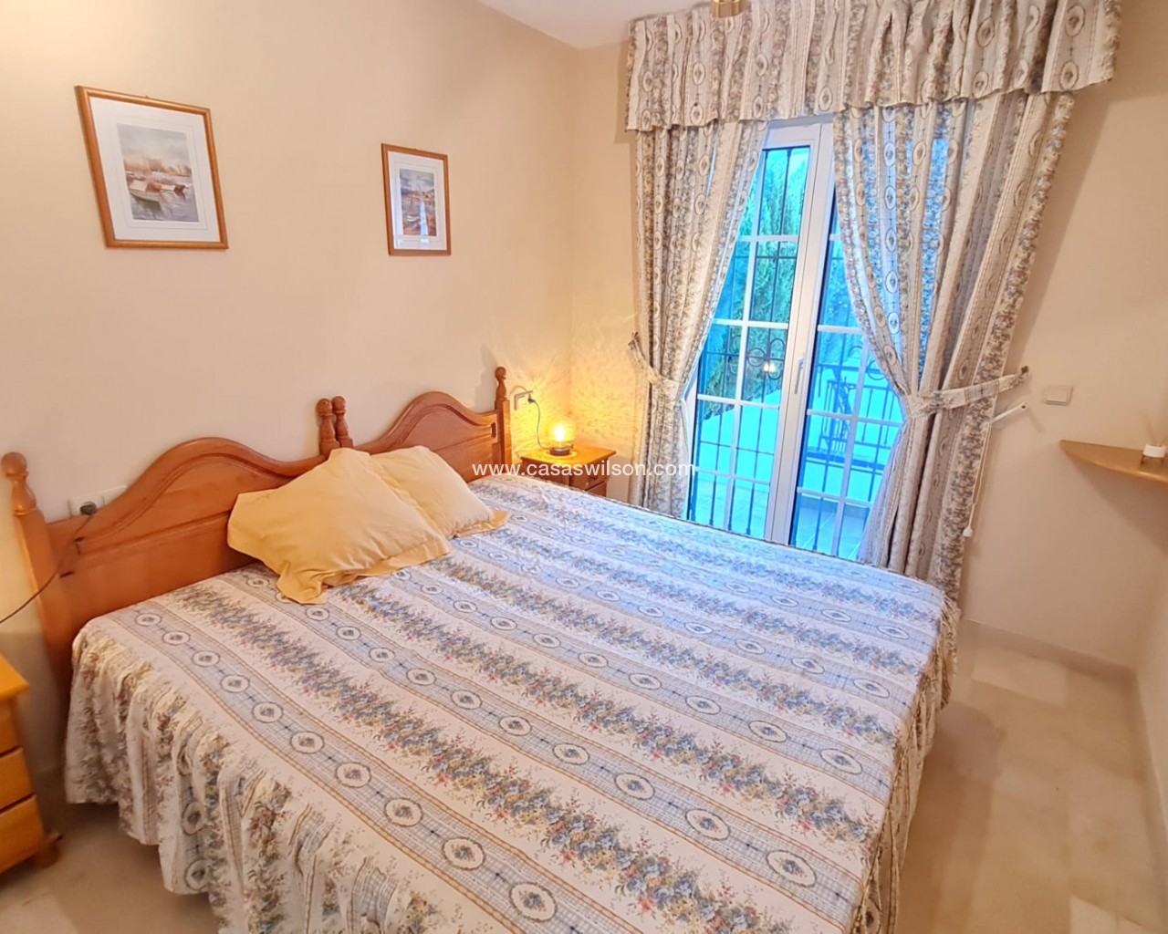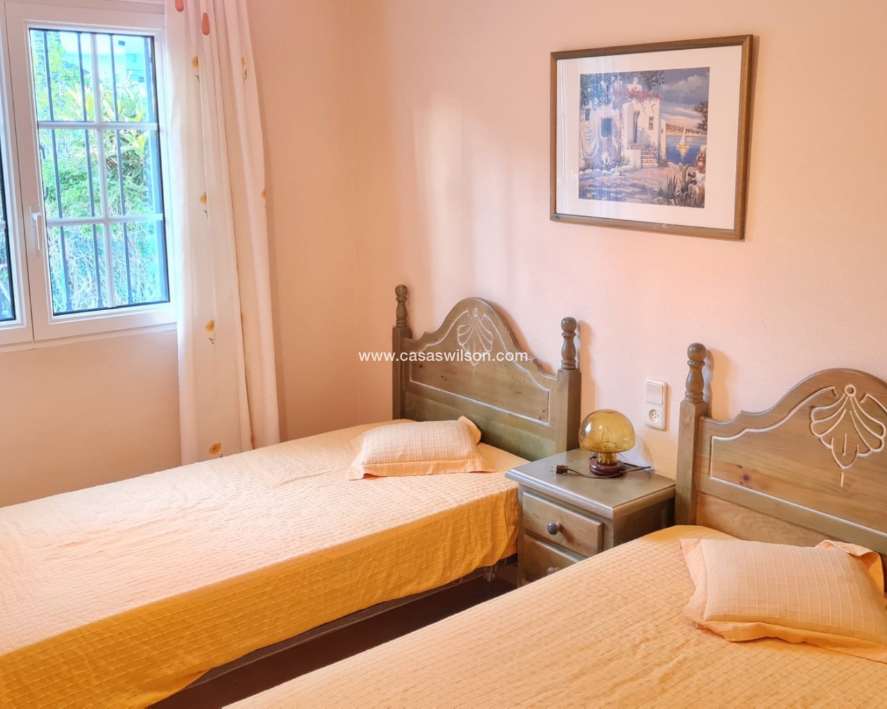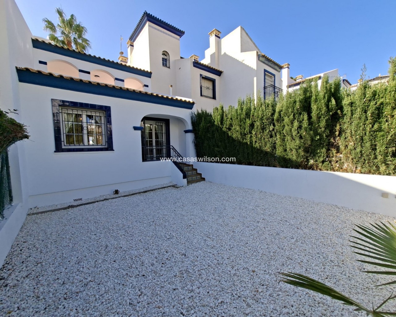 This beautiful south-facing Bungalow Lola is located in the sought-after area of Villamartin Rioja in Orihuela Costa, walking distance to amenities and just a 10-minute drive to the crystal-clear beaches. Fully renovated and sold furnished, this Bungalow Lola is a highly desirable property type in the area. All the living space is on the ground floor, with a built area of 63.50 m², complemented by 10.81 m² of landscaped garden space to the front and rear. On this level, the bright living-dining room features a cozy fireplace, while the modern kitchen has been fully updated with brand-new cabinetry, a breakfast bar, granite worktops, a stainless-steel extractor hood, ceramic hob, oven and electric water heater. The property includes two spacious bedrooms with built-in wardrobes and a full bathroom fitted with a bathtub. An external staircase leads to the 36.67 m² private solarium above, part of which is covered and comes with lighting and a water connection, offering a versatile and sunny space for year-round enjoyment. The solarium can be converted to accommodate a third bedroom and second bathroom. The home is equipped with split-system air conditioning in the living room, ceiling fans in the bedrooms, and central heating with radiators powered by a gas boiler (gas service currently inactive). The residential complex is well maintained, featuring communal gardens and two swimming pool areas, one conveniently located just behind the property. Surrounded by prestigious golf courses including Villamartín Golf Club, Las Ramblas Golf and Real Club de Golf Campoamor, Las Colinas and close to a wide range of shopping and dining options due to its close proximity to both Rioja, Los Dolses and La Fuente Commercial centres all within walking distance, the property offers an ideal Mediterranean lifestyle. Zenia Boulevard, the largest open shopping mall in Alicante province on the Costa Blanca South, is also just a short drive away. With its combination of comfort, outdoor living, and prime location, this furnished Bungalow Lola represents an excellent opportunity as a permanent residence, holiday home, or investment in one of the most desirable areas of the Costa Blanca. Properties of this type are in high demand, so interested buyers are encouraged to get in touch quickly.