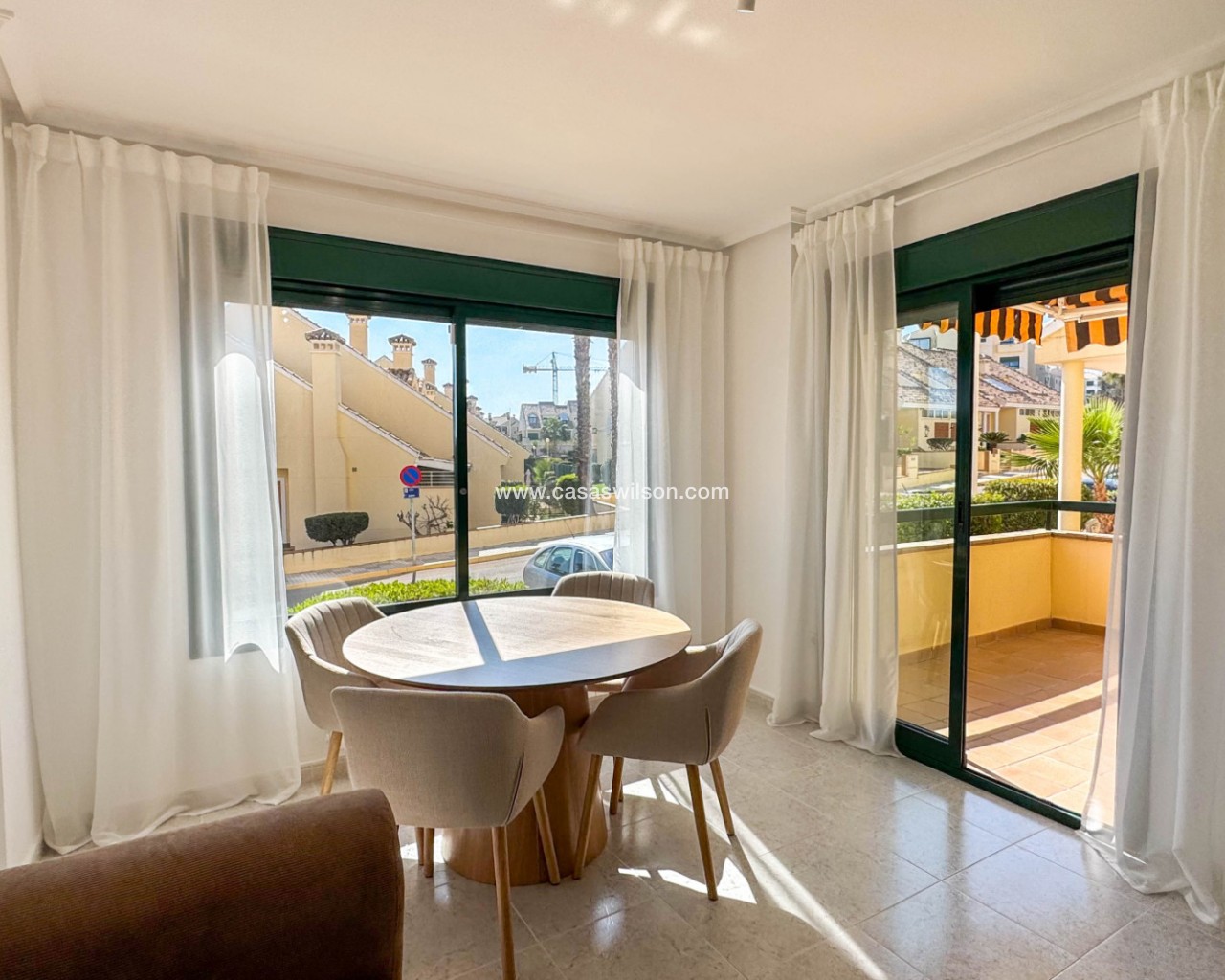 Apartamento totalmente reformado en venta en la prestigiosa zona de Lomas de Campoamor, una ubicación privilegiada en la Costa Blanca Sur, junto a campos de golf y rodeado de zonas verdes. Esta elegante vivienda en planta baja elevada con orientación sur ofrece una excelente luminosidad durante todo el día y vistas abiertas al entorno natural. Con 83 m² construidos, dispone de 2 dormitorios, 2 baños completos con ducha tipo walk-in y un diseño interior moderno con materiales de alta calidad. El apartamento ha sido completamente renovado e incluye mobiliario de diseño, suelos porcelánicos de gran formato, elementos en piedra natural, sistema de aire acondicionado inverter, calefacción y sistema de seguridad. La urbanización cuenta con piscina comunitaria, jardines cuidados y ascensor, todo en un entorno tranquilo y exclusivo a poca distancia de campos de golf. Una propiedad ideal como residencia permanente, casa de vacaciones o inversión inmobiliaria en la Costa Blanca.