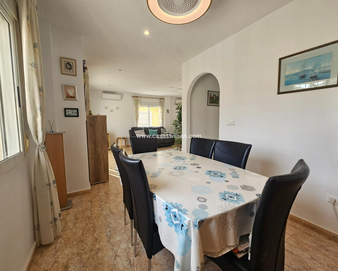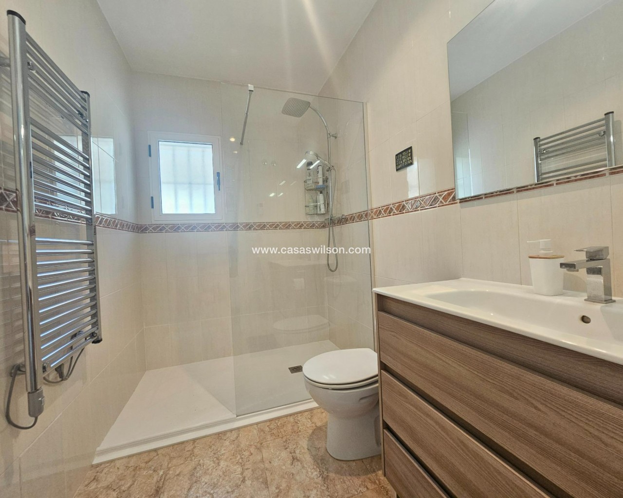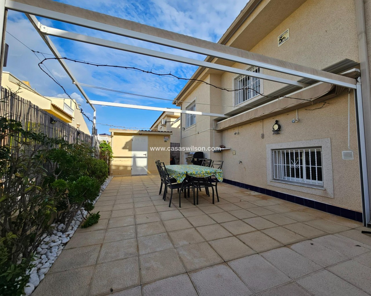 We are proud to present to you a 3 bed 2,5 bath detached villa with separated underbuild in absolutely stunning condition, located in the sought after urbanisation Benimar III, conjunto Maite VII. Sitting on a plot of 228M² offering off road parking, low maintainance garden with automatic irregation system, lovely fruit plants, and a covered terrace to enjoy your morning coffee and a-fresco dining. Stained glass next to the entrance gives you a colorful welcome into the home which consist on the ground floor of a ample lounge/living room, a fully equipped open plan kitchen, a dining area, a double bedroom, a showerrroom and a guest toillet. From the living room there is direct access trough French doors to the sunny terrace, overlooking the beautiful garden and the surrounding areas. The underbuild can be accessed through a separated entrance which comprises of 2 double bedrooms, a showerroom, laundryroom and a large livingroom, including a kitchen, perfect to organise family gatherings. The property has been upgraded during the years and has been very well looked after. The community pool can be found just around the corner, same as the natural park Cañada Marsá, ideal for romantic strolls and enjoy the local wildlife. EXTRAS: airconditioning, ceiling fans, double glazed windows, underfloor heating on ground floor, renovated bathrooms, water softener, partially furnished, sky tv, marble kitchen worktop, towelrack, drinkwaterfilter, appliances. Benimar is a popular urbanisation with a nice expat community comprising of low buildings and wide streets, and full of amenities. The proximity to larger towns of Benijófar, Rojales en Ciudad Quesada make this an outstanding option for both residential living or as a second home. The beaches of Guardamar are only a short drive away and the airport of Alicante can be reached in less then 40 minutes.