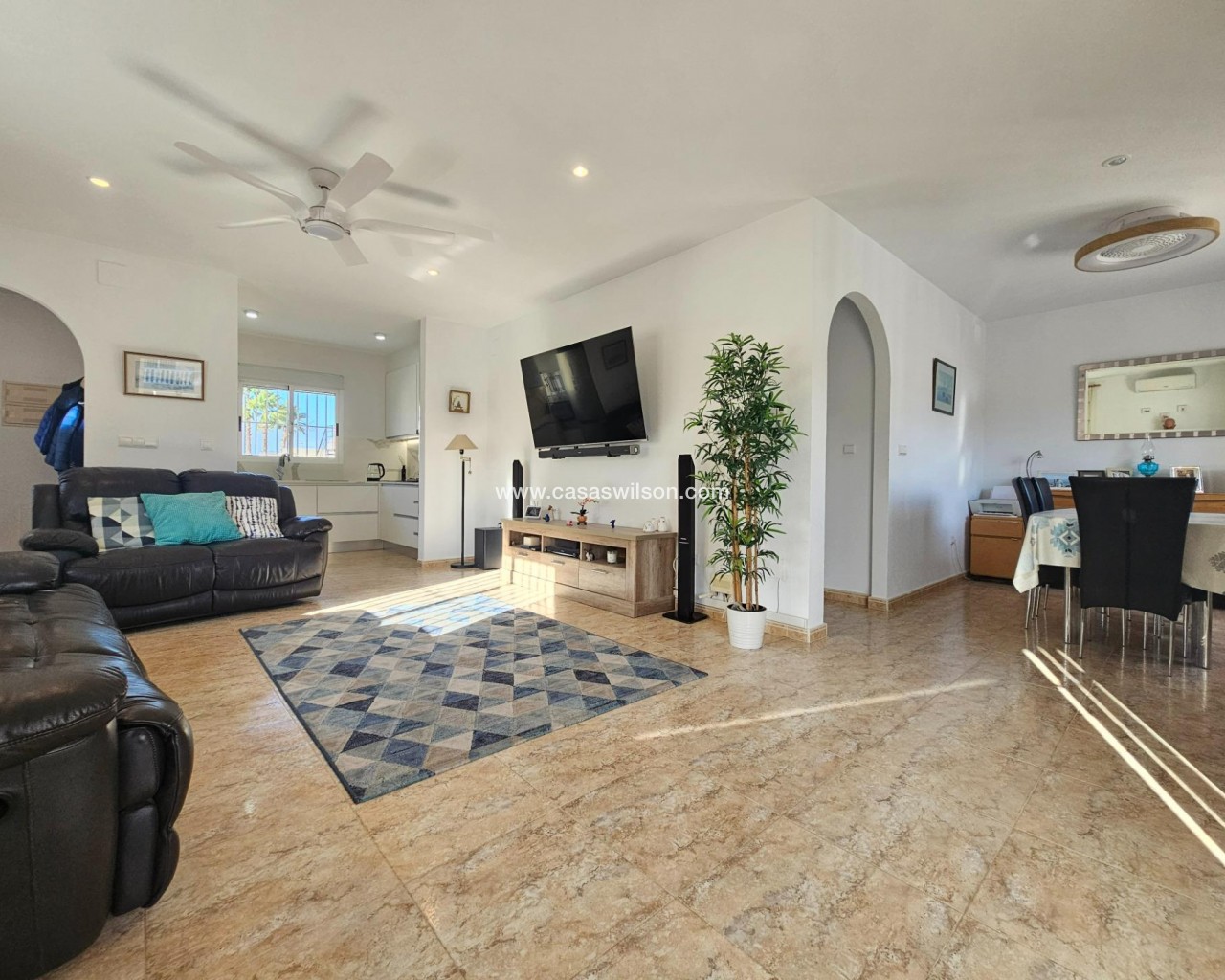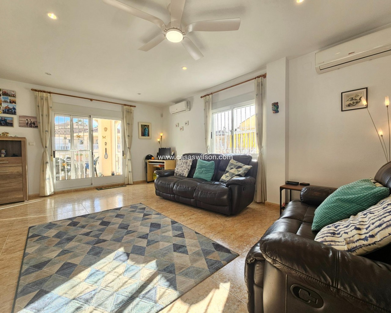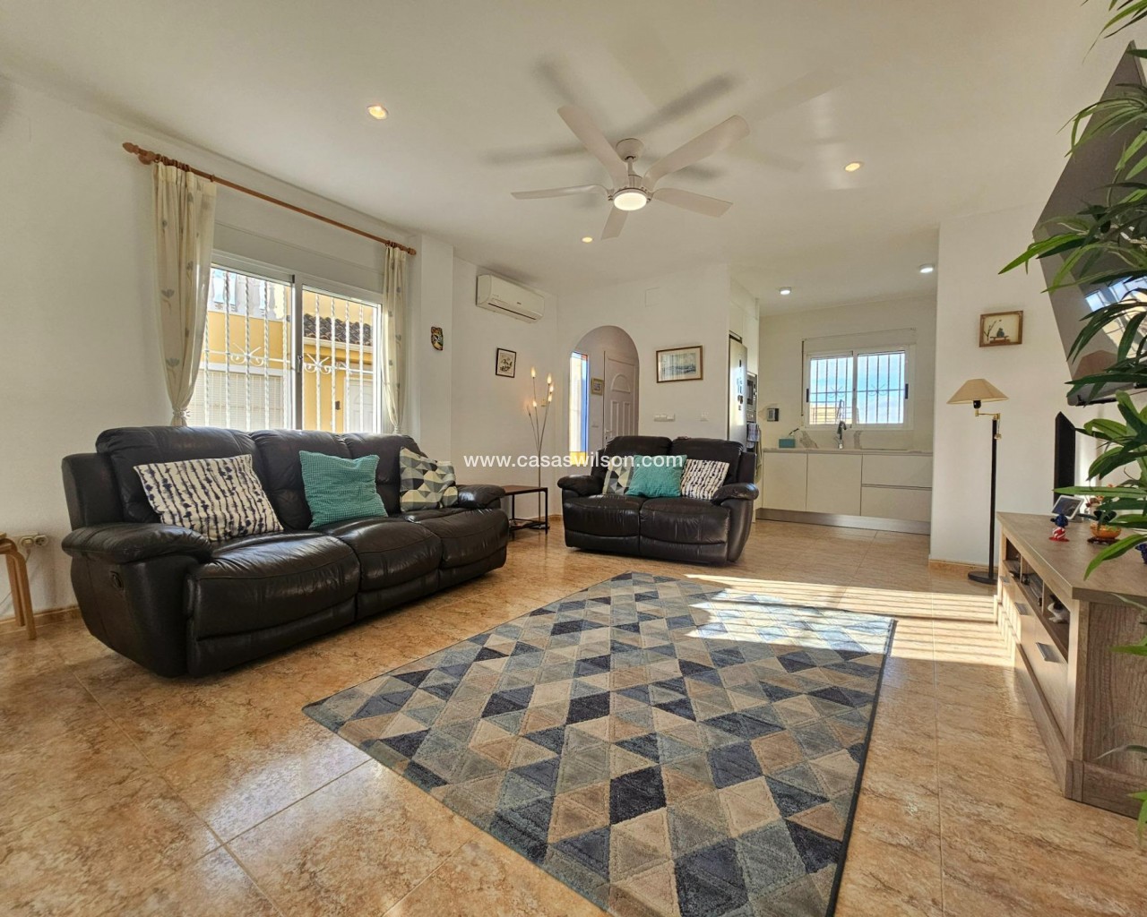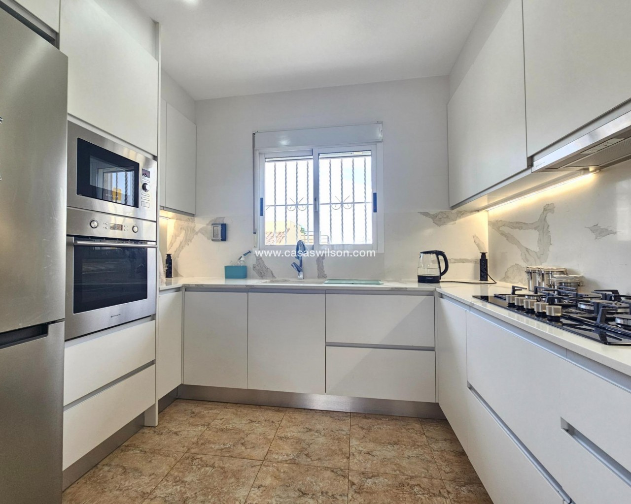 We are proud to present to you a 3 bed 2,5 bath detached villa with separated underbuild in absolutely stunning condition, located in the sought after urbanisation Benimar III, conjunto Maite VII. Sitting on a plot of 228M² offering off road parking, low maintainance garden with automatic irregation system, lovely fruit plants, and a covered terrace to enjoy your morning coffee and a-fresco dining. Stained glass next to the entrance gives you a colorful welcome into the home which consist on the ground floor of a ample lounge/living room, a fully equipped open plan kitchen, a dining area, a double bedroom, a showerrroom and a guest toillet. From the living room there is direct access trough French doors to the sunny terrace, overlooking the beautiful garden and the surrounding areas. The underbuild can be accessed through a separated entrance which comprises of 2 double bedrooms, a showerroom, laundryroom and a large livingroom, including a kitchen, perfect to organise family gatherings. The property has been upgraded during the years and has been very well looked after. The community pool can be found just around the corner, same as the natural park Cañada Marsá, ideal for romantic strolls and enjoy the local wildlife. EXTRAS: airconditioning, ceiling fans, double glazed windows, underfloor heating on ground floor, renovated bathrooms, water softener, partially furnished, sky tv, marble kitchen worktop, towelrack, drinkwaterfilter, appliances. Benimar is a popular urbanisation with a nice expat community comprising of low buildings and wide streets, and full of amenities. The proximity to larger towns of Benijófar, Rojales en Ciudad Quesada make this an outstanding option for both residential living or as a second home. The beaches of Guardamar are only a short drive away and the airport of Alicante can be reached in less then 40 minutes.