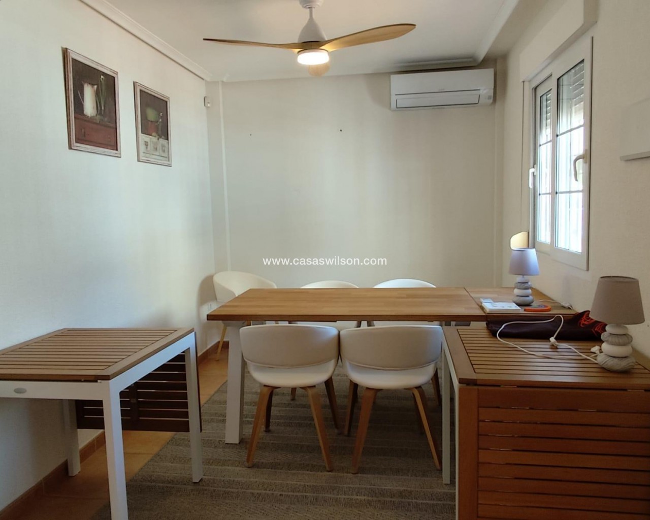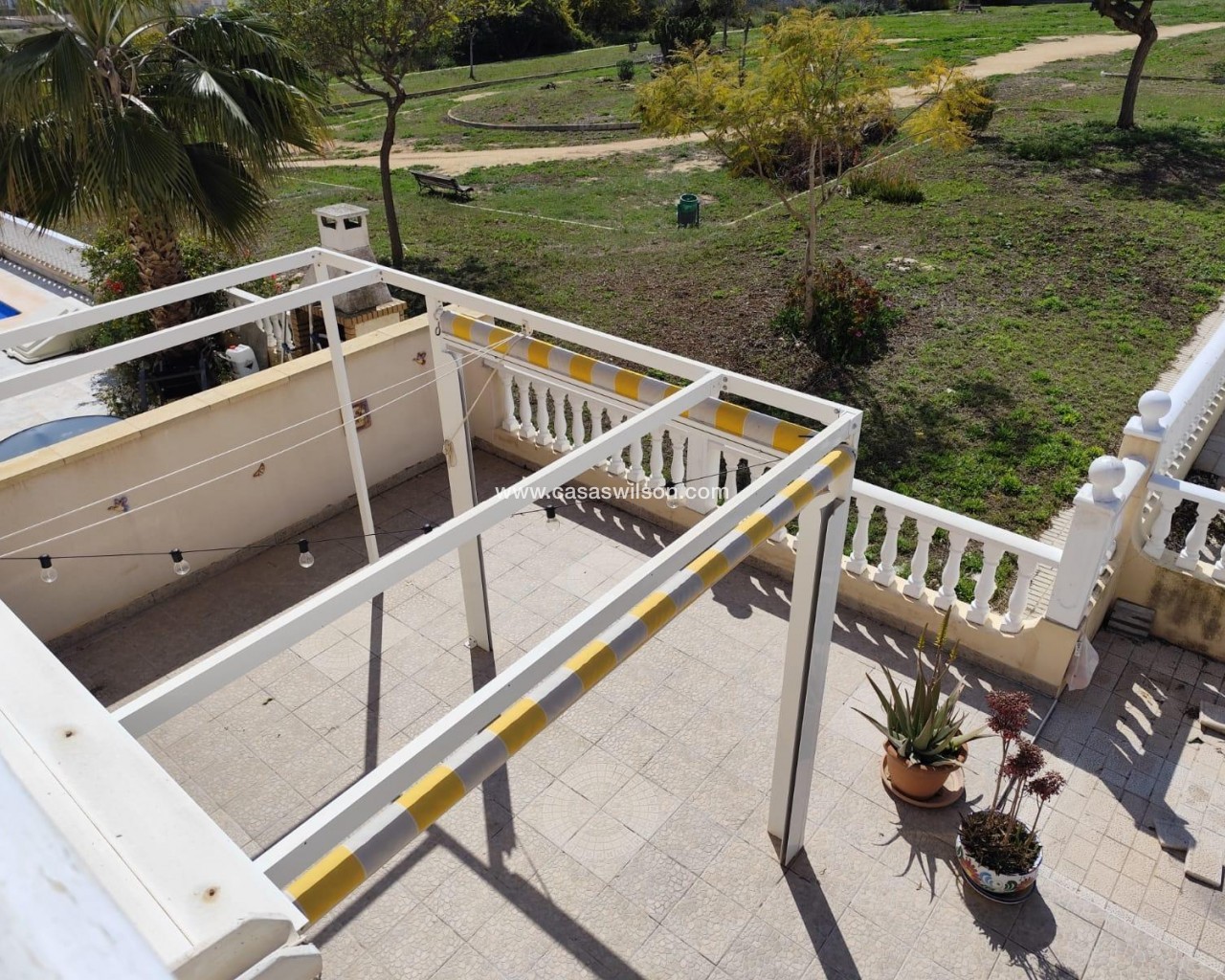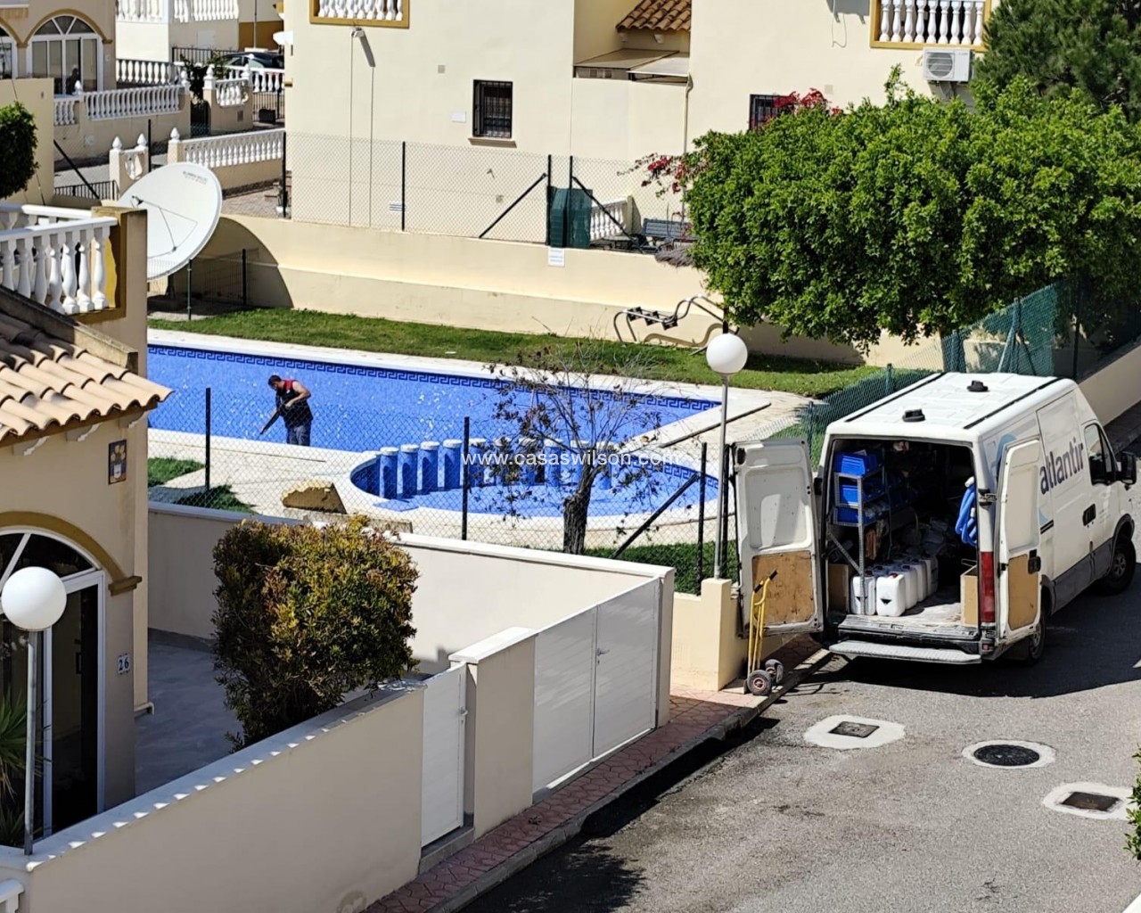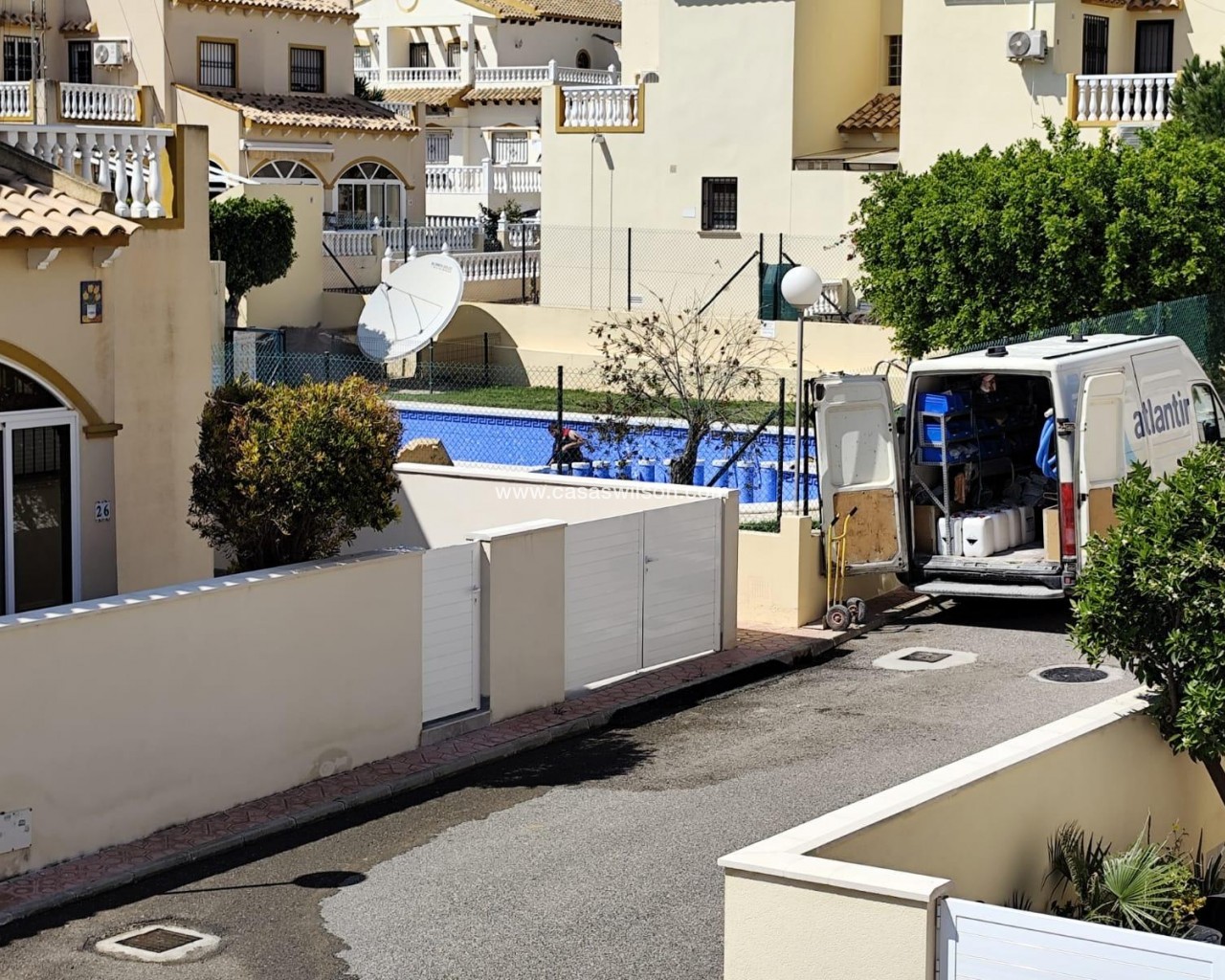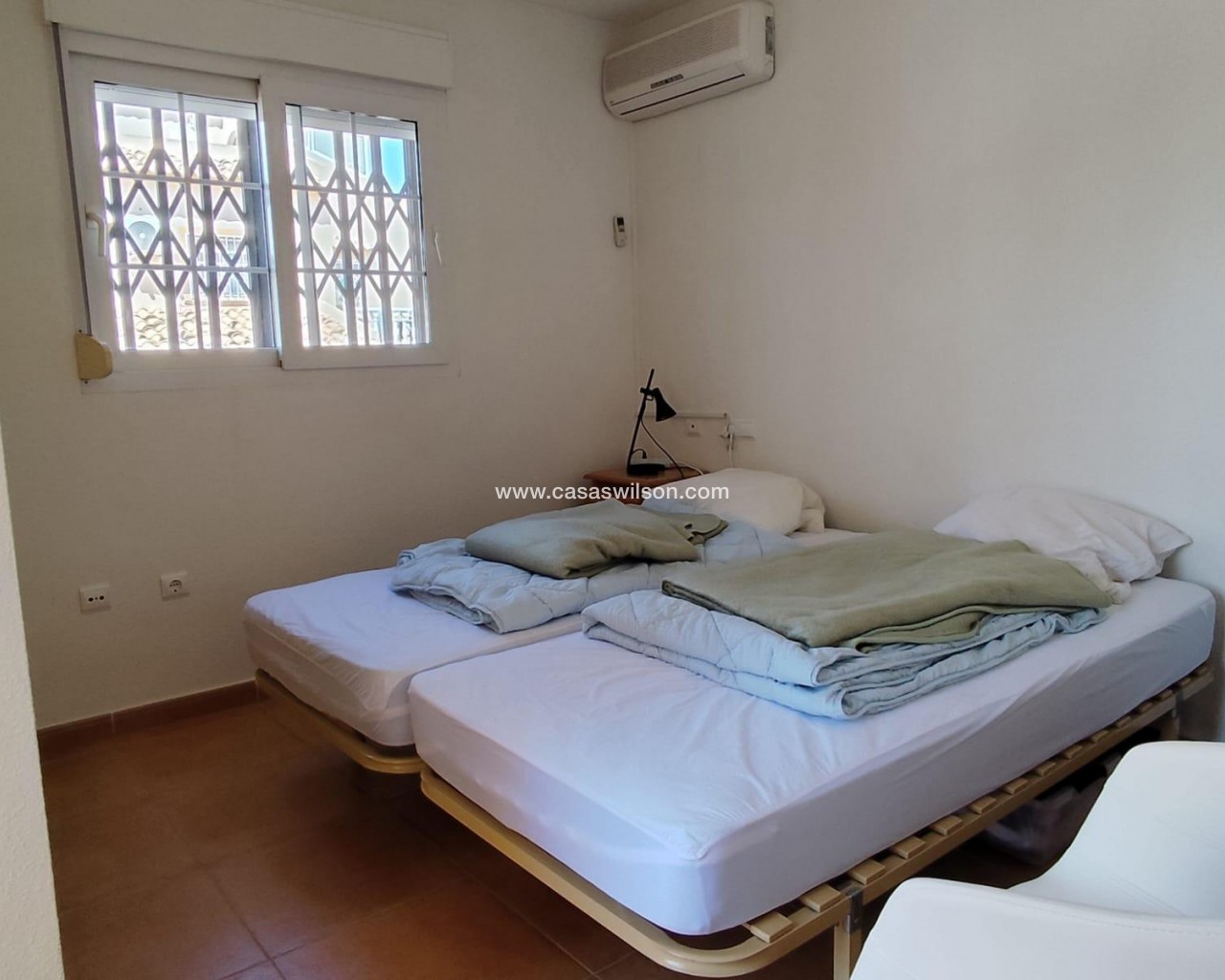 Bungalow with large garden, terrace and solarium in Orihuela Costa (Perla del Mar IV) For sale: bungalow located in the Perla del Mar IV residential complex in Orihuela Costa, in a quiet and well-connected area. Ideal as a permanent home, holiday property, or investment. The property features 2 bedrooms and 2 bathrooms, a spacious living-dining room, fully equipped kitchen, and utility room. It is sold fully furnished and includes air conditioning, ready to move in. It stands out for its generous outdoor space: a private 60 m² garden, large terrace, and solarium, perfect for enjoying the sun all year round. The residential complex offers a communal swimming pool and well-maintained common areas. 2 bedrooms 2 bathrooms Private garden (60 m²) Terrace and solarium Air conditioning Fully furnished Communal swimming pool Year of construction: 2002 Located close to all amenities, beaches, shops, and leisure areas. An excellent opportunity on the Costa Blanca.
